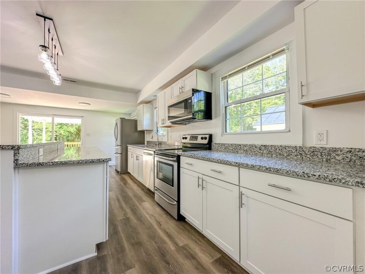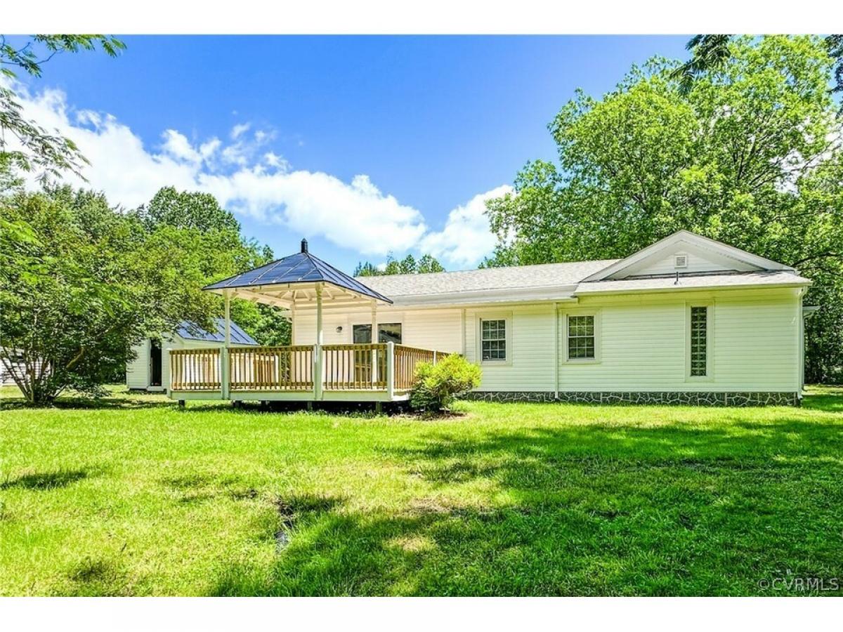 This truly unique property spans a little over 3 acres and is surrounded by mature trees and beautifully landscaped grounds. The current owner has thoughtfully updated this charming ranch-style home with LVP flooring and many modern fixtures throughout. As you enter through the front door, you are welcomed by a bright and airy vestibule. French doors then lead you to a spacious living room with a door connecting it to the primary bedroom in addition to a pocket door for added privacy from the rest of the home. The primary-bedroom features carpet, an en-suite bathroom with double sinks, updated shower, LVP tile flooring and updated fixtures. A walk-in closet with wire shelving completes the suite. Two additional, generously-sized bedrooms each offer carpet, ceiling fans, and closet space; one of them containing a cozy reading nook. Down the hall, you will find an additional room; suitable as a dining or sitting area containing an attached, updated full-bathroom. The kitchen boasts ample space with updated cabinets, granite counters, pendant lighting, & SS appliances that convey. A sliding glass door opens to a spacious, partly-covered back deck, perfect for outdoor entertaining. Adjacent to the kitchen is a laundry/mud room with a back door leading to the driveway. Outside, you will find a total of 4 sheds/storage buildings perfect for housing all of your outdoor equipment and more! An additional dwelling unit containing a full kitchen, w/d hookup, full bath, 1 bedroom, an attached shed for storage and 3 additional rooms totaling 1096 sf can be found behind the home. This space is perfect for an in-law suite, small business, or even a potential rental opportunity! The current owner had HVAC installed in 2020, the roof replaced in 2022, and a new distribution box for the septic in 2023 along with updates to flooring, fixtures, and more along the way. Also, the seller is offering a 1 year home warranty! Don't miss the opportunity to own this must-see property with endless possibilities. Schedule your showing today!