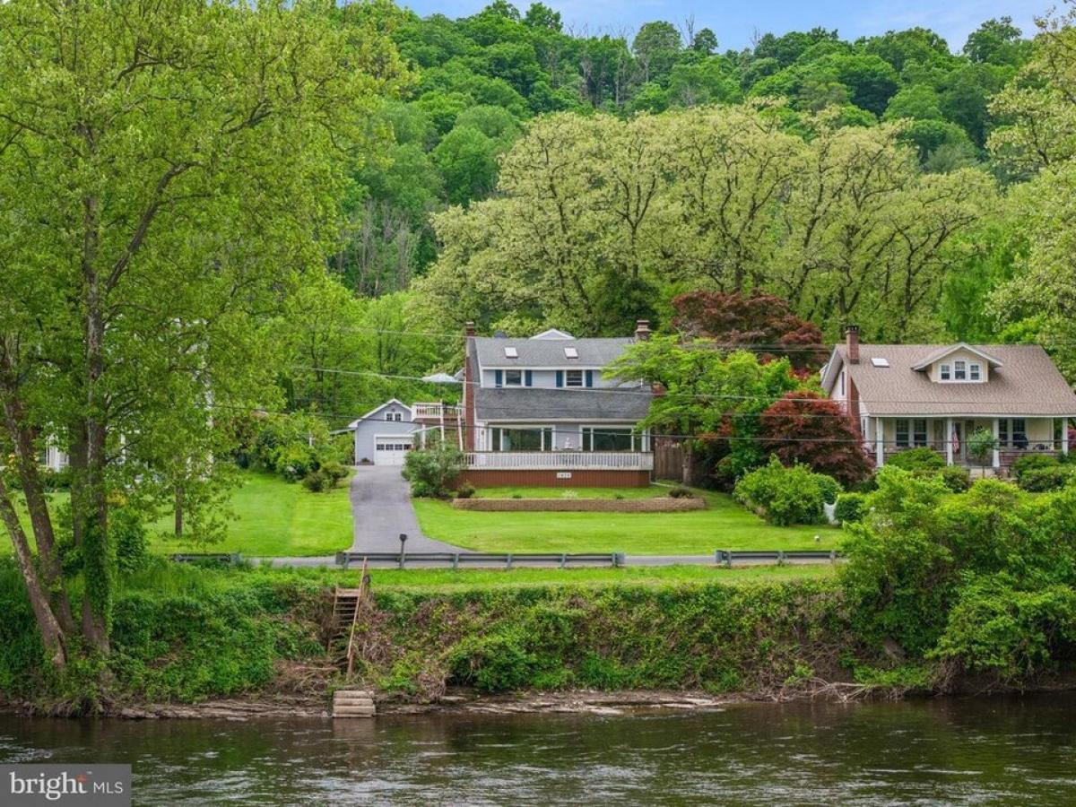 Spectacular views await you at this charming river front home - ideal as a full-time residence or a romantic country retreat! Imagine the tranquility of a home where you can watch the river gently flow by. The wrap-around deck is the perfect vantage point to observe passing fishermen, or witness a pair of nesting eagles and panoramic views through the picture windows in the living room. With one full acre that leads to the canal and towpath in the rear of the property, you will truly enjoy the best of everything related to waterfront and towpath living. Enjoy a bright kitchen with newer appliances and river views. The large great room is complete with walls of glass and a cozy stone fireplace to ward off the chills as the seasons change. With three bedrooms and three full bathrooms, plus 2 additional dens on the first and second floor, there is ample space for family or out-of-town guests. The first floor den can also be used as a first floor bedroom with access to the full bath in the hall. Lots of character throughout this vintage home including built-ins, skylights, and exposed beams. New improvements include bamboo flooring on the second floor, updated baths, and a laundry room conveniently located on the main level. The home features 2-tier decks that are spacious enough for barbecuing, al fresco dining, and chaise lounges. Cool off in the saltwater swimming pool or take a break from the sun under the covered patio. The detached garage and carport keep vehicles and property protected. This beautiful acre extends to the historic Canal, where you can hike or bike along the towpath. This location is perfect for those who appreciate nature and the beauty of the river. The Frenchtown bridge and Tinicum Park are only minutes away, with easy access to NJ/NY/Philadelphia. Nearby farmers markets, parks, and polo in the summer, with plenty of recreational opportunities. Close to shopping, health facilities, and exceptional cultural venues and entertainment. Make this bucolic retreat your own! While the owners have never experienced flooding, they do have flood insurance due to newer flood mapping since hurricane Ida a few years ago. Come and visit and fall in love with this home that makes you feel like you are on vacation every day!