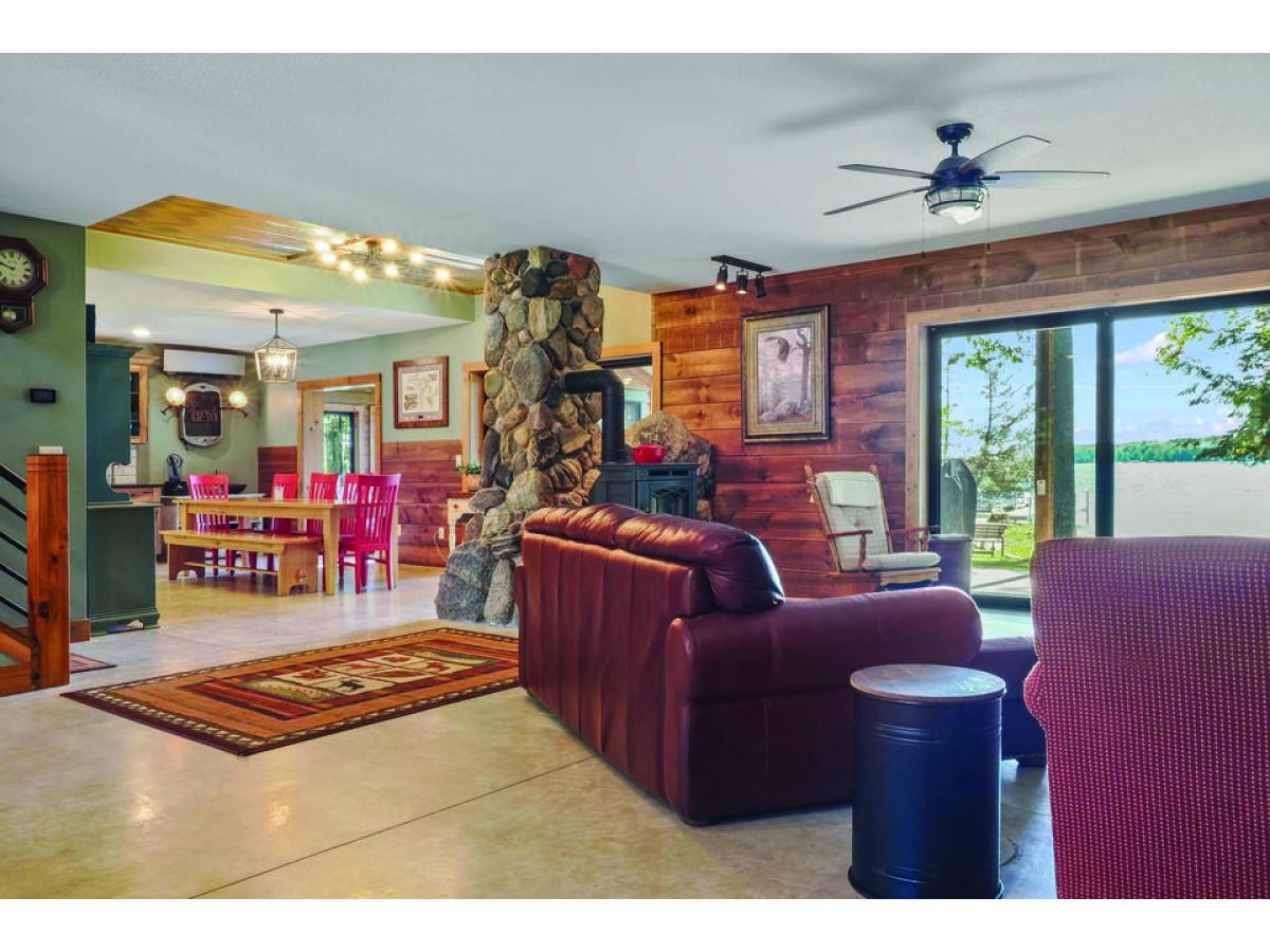 centrally located on the famous Lower Chain of Lakes. Featuring a modern farmhouse feel, the kitchen offers leathered granite counters, patina hickory cabinets, farmhouse sink and polished cement floors. Relax in the hot tub on the lakeside deck. Many updates including windows, doors, roof, whole house generator, heated/insulated garage with bonus space above garage.