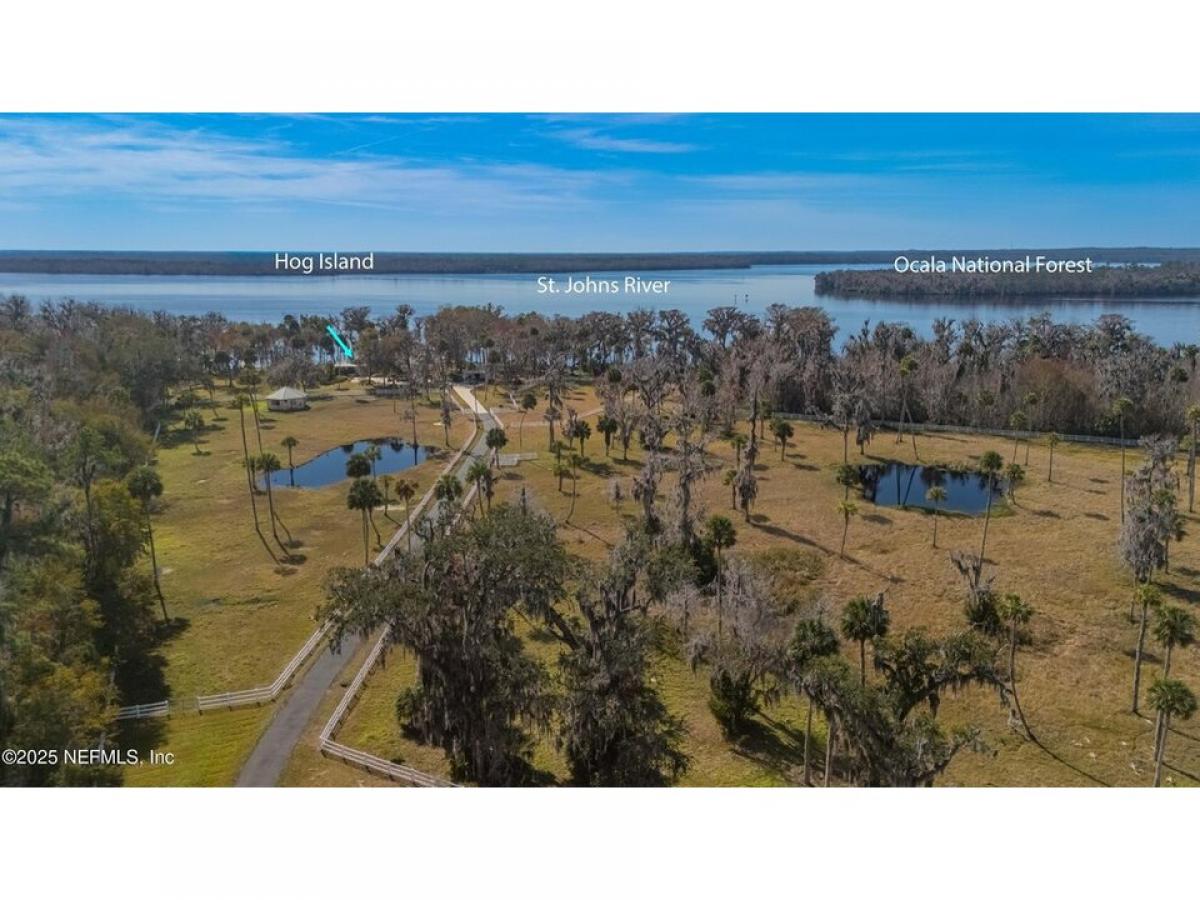 GORGEOUS RIVERFRONT CUSTOM HOME ON 22 ACRES WITH 1,729 FEET ON THE ST JOHNS RIVER! Gated entry with long winding driveway where you will pass 2 barns (a 2 stall amp; a 3 stall), 3 gated fully fenced pastures leading to a spectacular 3BR/2BA, 3092 SF home on the river with a boat dock that includes a boat lift amp; 2 jet ski lifts to store your Hurricane boat amp; your 2 Honda jet skis that convey! This home is being offered fully furnished, turnkey condition that includes all furnishings. Not only do you get a boat amp; 2 jet skis, you#039;ll also get an electric golf cart, Kubota Tractor riding mower, shed full of tools, a chicken coop amp; much more. Circle driveway leads to over 1300 SF of wrap around porch with teak wood deck amp; a summer kitchen. Enter into the Great Room, you#039;ll say WOW when you see the high wood ceilings with wood beams, clerestory windows, magnificent stone fireplace amp; 4 sets of French Doors leading to the wraparound porches. Owners built this home to see the river from every room Rich wood parquet flooring throughout. Spacious kitchen with lots of cabinets amp; counters, breakfast bar, gas stove amp; views of the river. 2 hallways with wood molding. 1 hallway leads to pantry amp; huge 12x12 laundry rm with lots of cabinets amp; counters, large sink amp; door to the front wraparound porch. Other hallway leads to double French doors to owner suite with many windows for tranquil river views, huge bathroom with river view amp; walk in closet with 2 gun safes, plus a private sun porch filled with more tranquil river views. The 2 stall horsebarn is in a gated fenced pasture with a pond amp; a chicken coop. The 3 stall horsebarn also has a carport for your own Hurricane boat. Views are breathtaking!! Across the river you will see Ocala National Forest, Hog Island and Drayton Island. This is truly PARADISE!