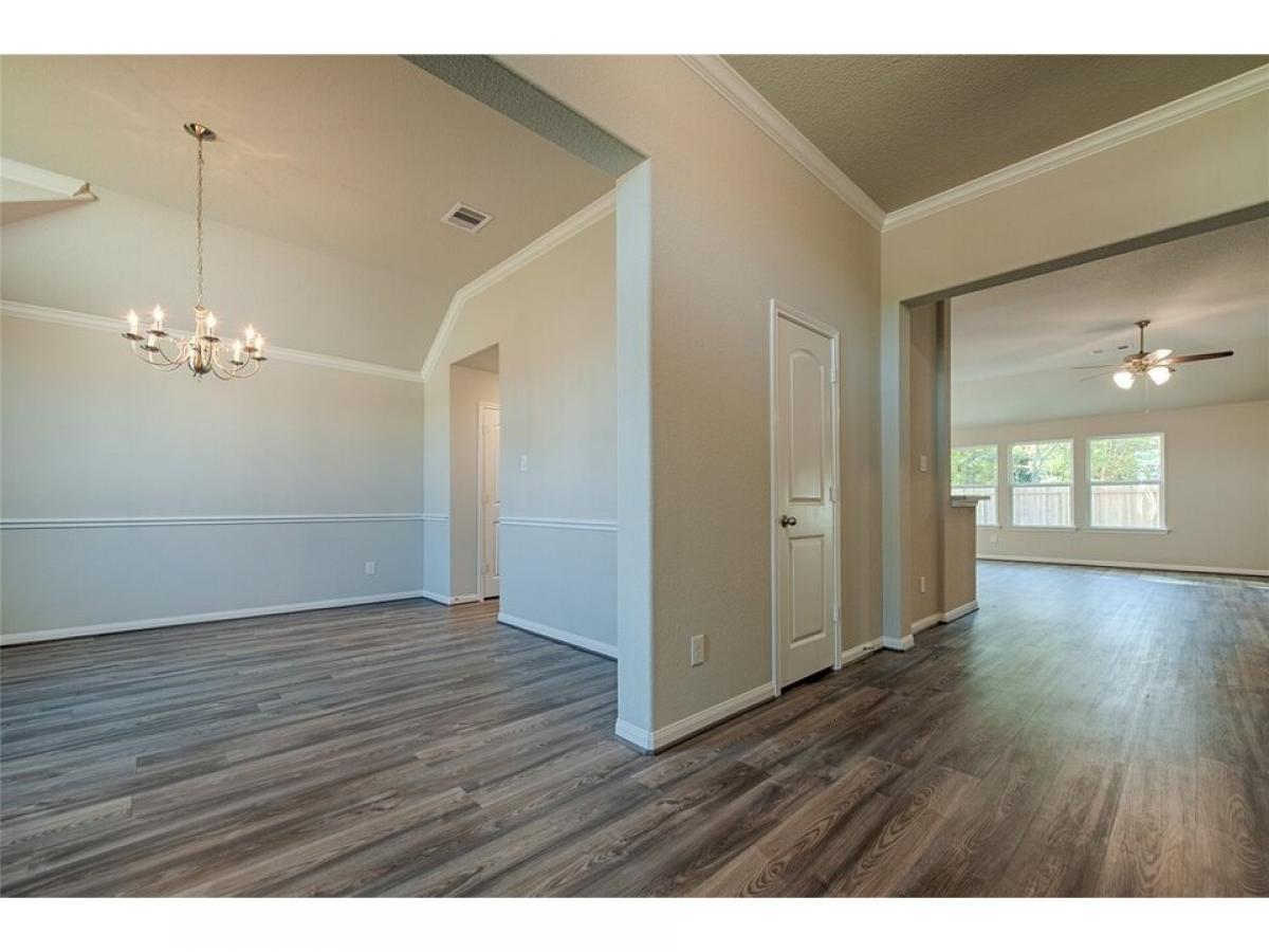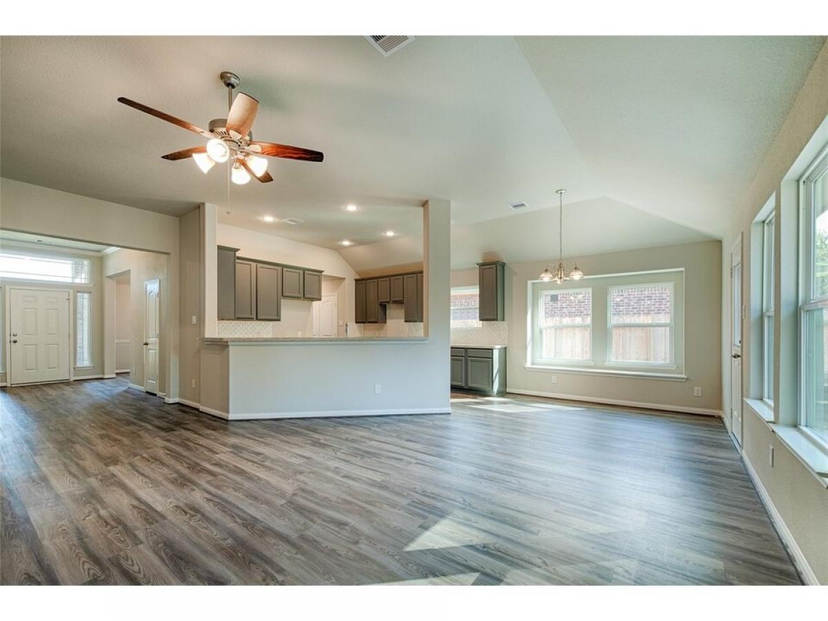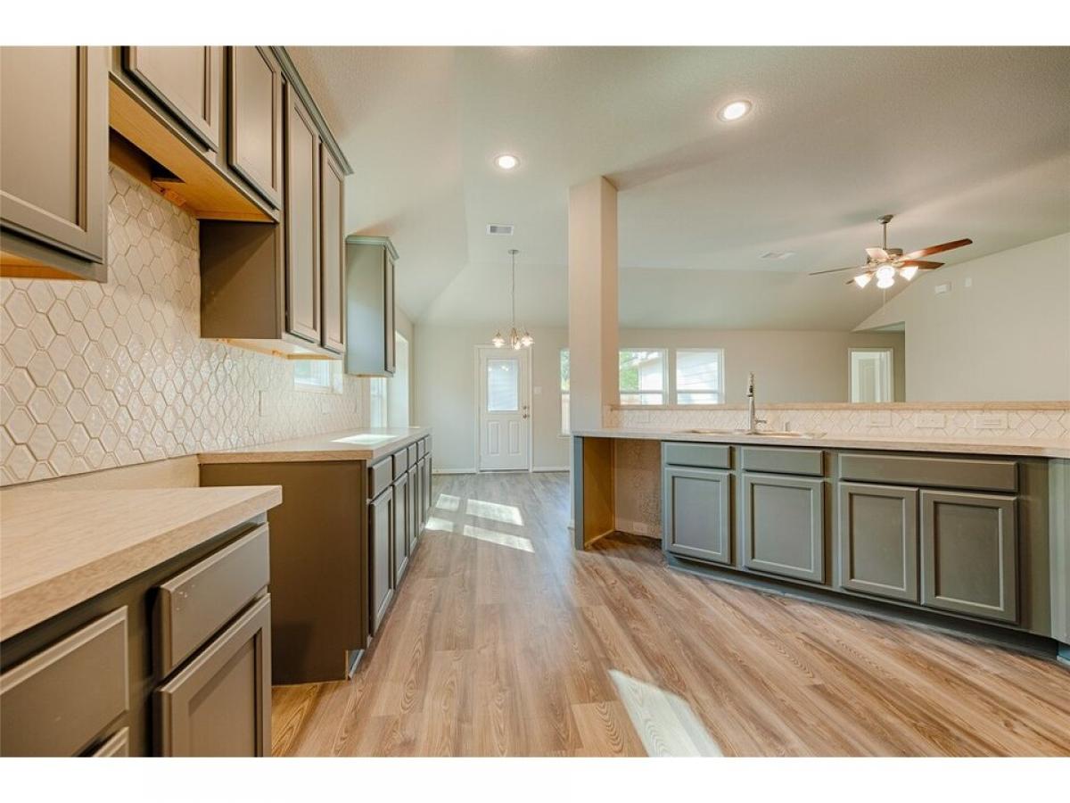 Stunning one-story home featuring 3 beds, 2 baths, and a 2-car garage in 829 sq. ft. on just under 3/4 acre lot! A charming front porch leads to an inviting entry, crown-molded dining room, and laminate wood flooring throughout, with carpet in bedrooms only.The open kitchen boasts 42quot; cabinets, granite counters, designer backsplash, stainless steel gas appliances, and a large pantry. Open to the living room with a shiplap fireplace! The private primary suite offers a soaking tub, oversized shower, and double vanity. Spacious secondary bedrooms and ample storage complete the layout. This home includes structured wiring panel, garage door opener, USB and media outlets, front gutters, propane, sprinklers, and more! Enjoy a low tax rate in this beautiful community. Hurry, call today!