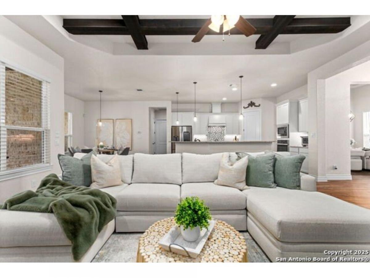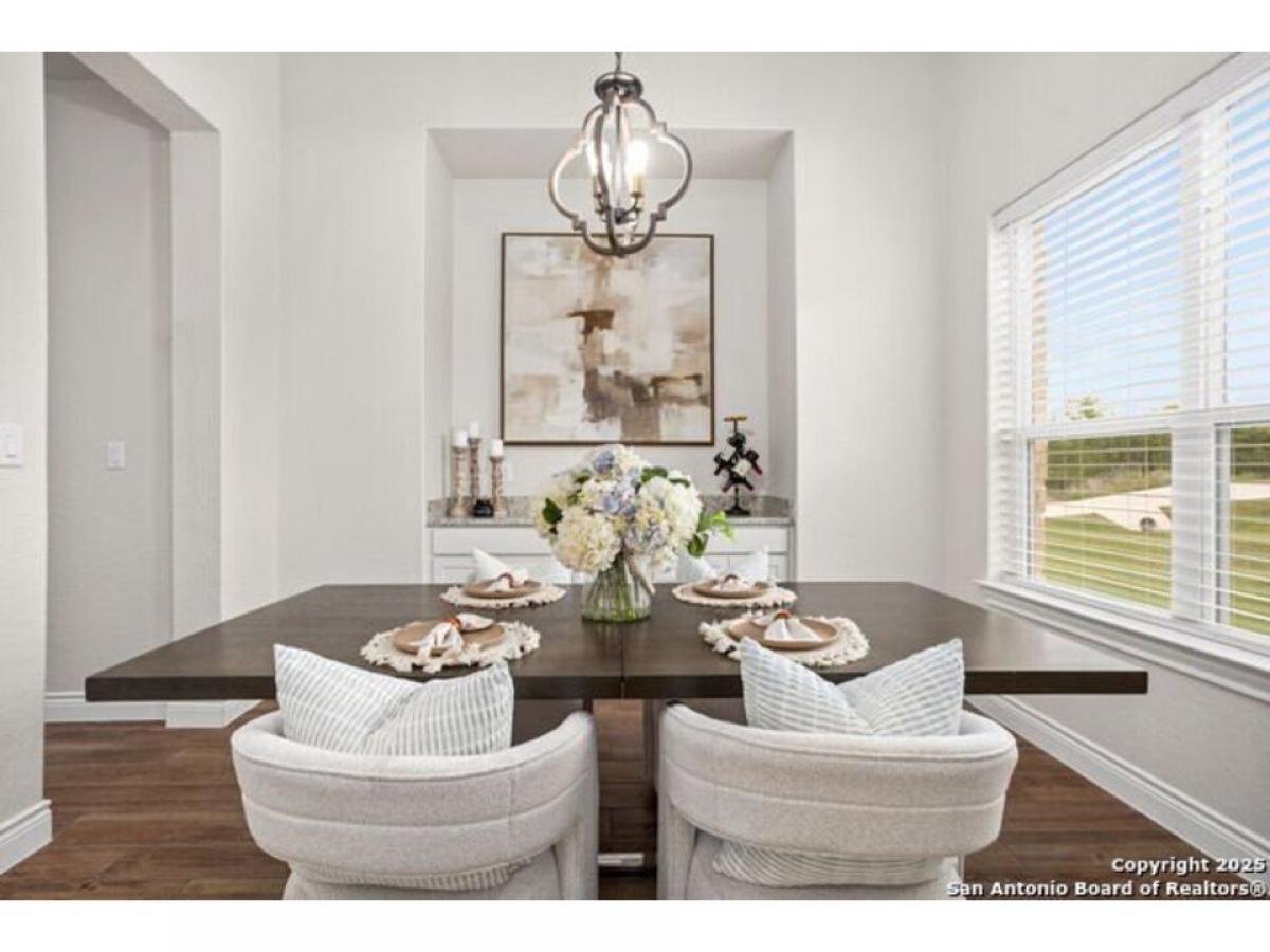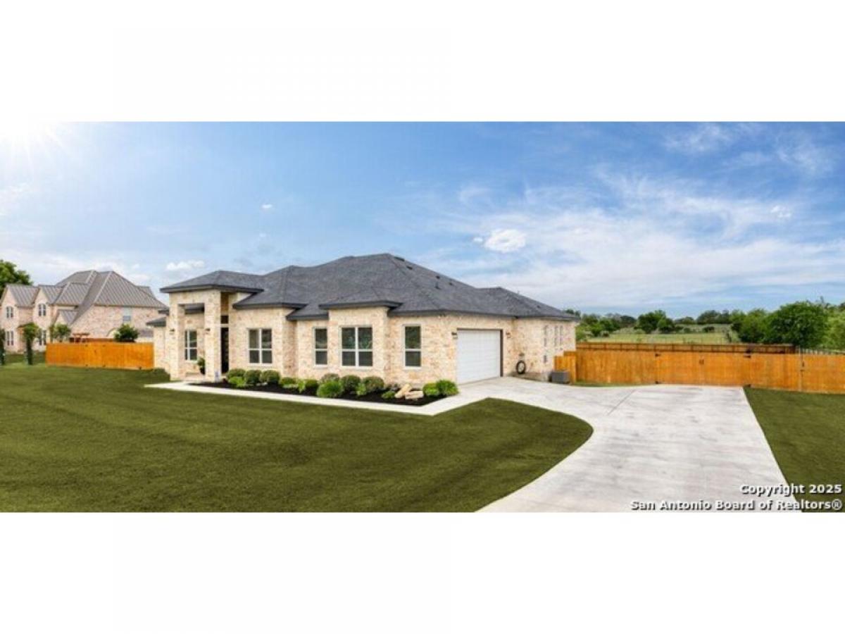 Discover Hill Country Elegance at The Crossing at Spring Creek - Your Dream Home Awaits! Welcome to a luxurious escape where grace meets comfort in the heart of the Hill Country. Nestled within the serene enclave of The Crossing at Spring Creek, this magnificent 4-bedroom, 2.5-bath residence offers an unparalleled living experience on a sprawling 1.12-acre lot. Here, your backyard seamlessly extends into a 131-acre ranch, creating a private sanctuary with breathtaking views and abundant wildlife. Step inside through the exquisite Cantera Style front door and be greeted by an expansive open floorplan illuminated by natural light streaming through numerous windows. High ceilings, soaring to 10 feet, accentuated by rich dark wood beams, evoke a sense of elegance and warmth synonymous with Hill Country charm. The heart of the home is a chef#039;s paradise - a gourmet kitchen equipped with top-of-the-line stainless steel built-in appliances, granite countertops, and soft-close cabinetry. An island with a vegetable sink and undermount cabinet lighting enhances both style and functionality, while an inviting coffee bar area invites moments of relaxation. Adjoining the kitchen, the dining room boasts lofty ceilings and a built-in buffet, perfect for hosting unforgettable dinners. Retreat to the primary suite, where luxury blends seamlessly with tranquility. Whether you unwind in the spacious bedroom or enjoy the cozy ambiance provided by an outdoor stone fireplace, this space offers a haven of relaxation year-round. The secondary bedrooms are equally impressive, connected by a Jack and Jill bathroom, each equipped with individual sinks for added convenience. Completely fenced with a convenient boat/RV gate, this all-masonry home is designed for both practicality and privacy. Located in a quiet cul-de-sac, it offers an idyllic setting with captivating views of nature from every angle. The neighborhood enhances your lifestyle with exclusive river access at its park and pavilion, fostering community spirit and offering recreational opportunities. This isn#039;t just a home; it#039;s an invitation to experience the pinnacle of Hill Country living - where every detail has been thoughtfully crafted to create a space that exudes elegance and comfort. Don#039;t miss your chance to make this extraordinary property your own. Book your showing today!