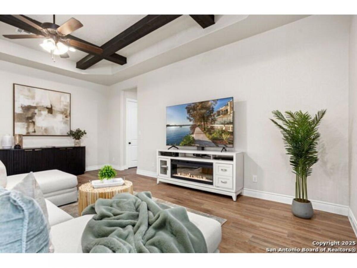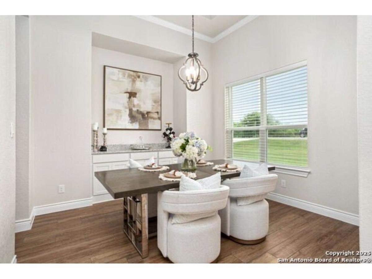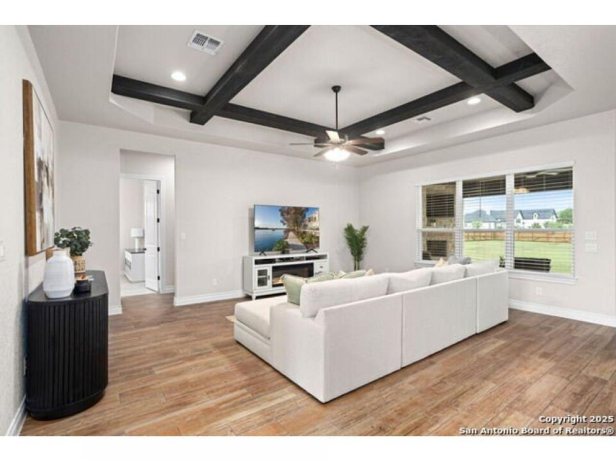 Discover Hill Country Elegance at The Crossing at Spring Creek - Your Dream Home Awaits! Welcome to a luxurious escape where grace meets comfort in the heart of the Hill Country. Nestled within the serene enclave of The Crossing at Spring Creek, this magnificent 4-bedroom, 2.5-bath residence offers an unparalleled living experience on a sprawling 1.12-acre lot. Here, your backyard seamlessly extends into a 131-acre ranch, creating a private sanctuary with breathtaking views and abundant wildlife. Step inside through the exquisite Cantera Style front door and be greeted by an expansive open floorplan illuminated by natural light streaming through numerous windows. High ceilings, soaring to 10 feet, accentuated by rich dark wood beams, evoke a sense of elegance and warmth synonymous with Hill Country charm. The heart of the home is a chef#039;s paradise - a gourmet kitchen equipped with top-of-the-line stainless steel built-in appliances, granite countertops, and soft-close cabinetry. An island with a vegetable sink and undermount cabinet lighting enhances both style and functionality, while an inviting coffee bar area invites moments of relaxation. Adjoining the kitchen, the dining room boasts lofty ceilings and a built-in buffet, perfect for hosting unforgettable dinners. Retreat to the primary suite, where luxury blends seamlessly with tranquility. Whether you unwind in the spacious bedroom or enjoy the cozy ambiance provided by an outdoor stone fireplace, this space offers a haven of relaxation year-round. The secondary bedrooms are equally impressive, connected by a Jack and Jill bathroom, each equipped with individual sinks for added convenience. Completely fenced with a convenient boat/RV gate, this all-masonry home is designed for both practicality and privacy. Located in a quiet cul-de-sac, it offers an idyllic setting with captivating views of nature from every angle. The neighborhood enhances your lifestyle with exclusive river access at its park and pavilion, fostering community spirit and offering recreational opportunities. This isn#039;t just a home; it#039;s an invitation to experience the pinnacle of Hill Country living - where every detail has been thoughtfully crafted to create a space that exudes elegance and comfort. Don#039;t miss your chance to make this extraordinary property your own. Book your showing today!