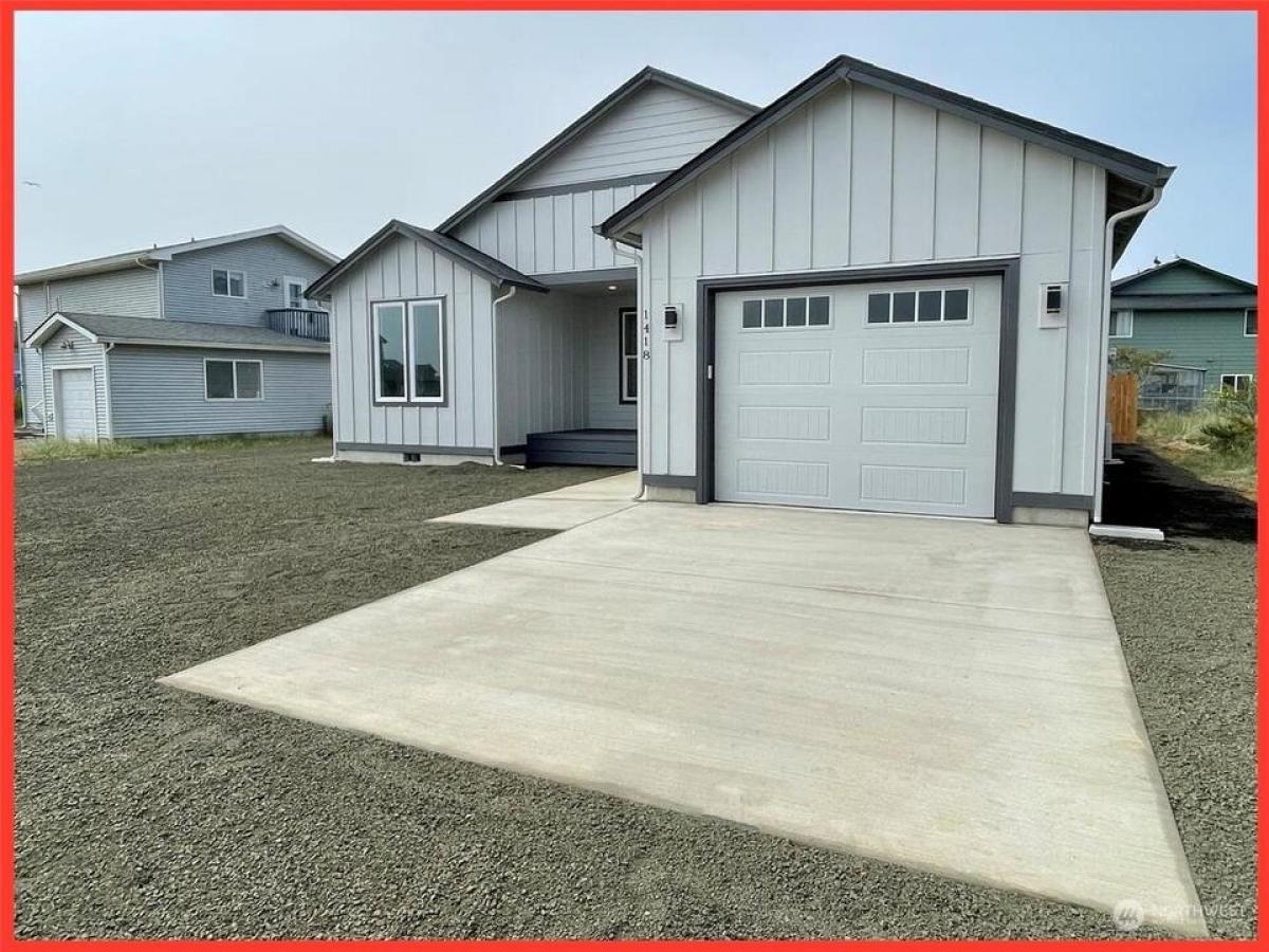 New Luxurious Residence located 2 blocks from the N jetty at Ocean Shores, WA! This open concept 1,496 sf plan features 3 bedrooms, 1.75 bathrooms and 1-car garage. The sun-filled great room includes vaulted ceilings and a statement fireplace wall surrounded by built-in cabinets w/floating shelves. Spacious kitchen w/plenty of cabinets and large island. Quartz countertops. 9' ceilings throughout. Gorgeous lighting. Luxury vinyl flooring. Primary ensuite complete with door to deck, walk-in closet, dual sink vanity and shower. 2 more bedrooms and full bathroom off hallway. Covered Trex decks. Fenced back yard. 7,966 sf lot.