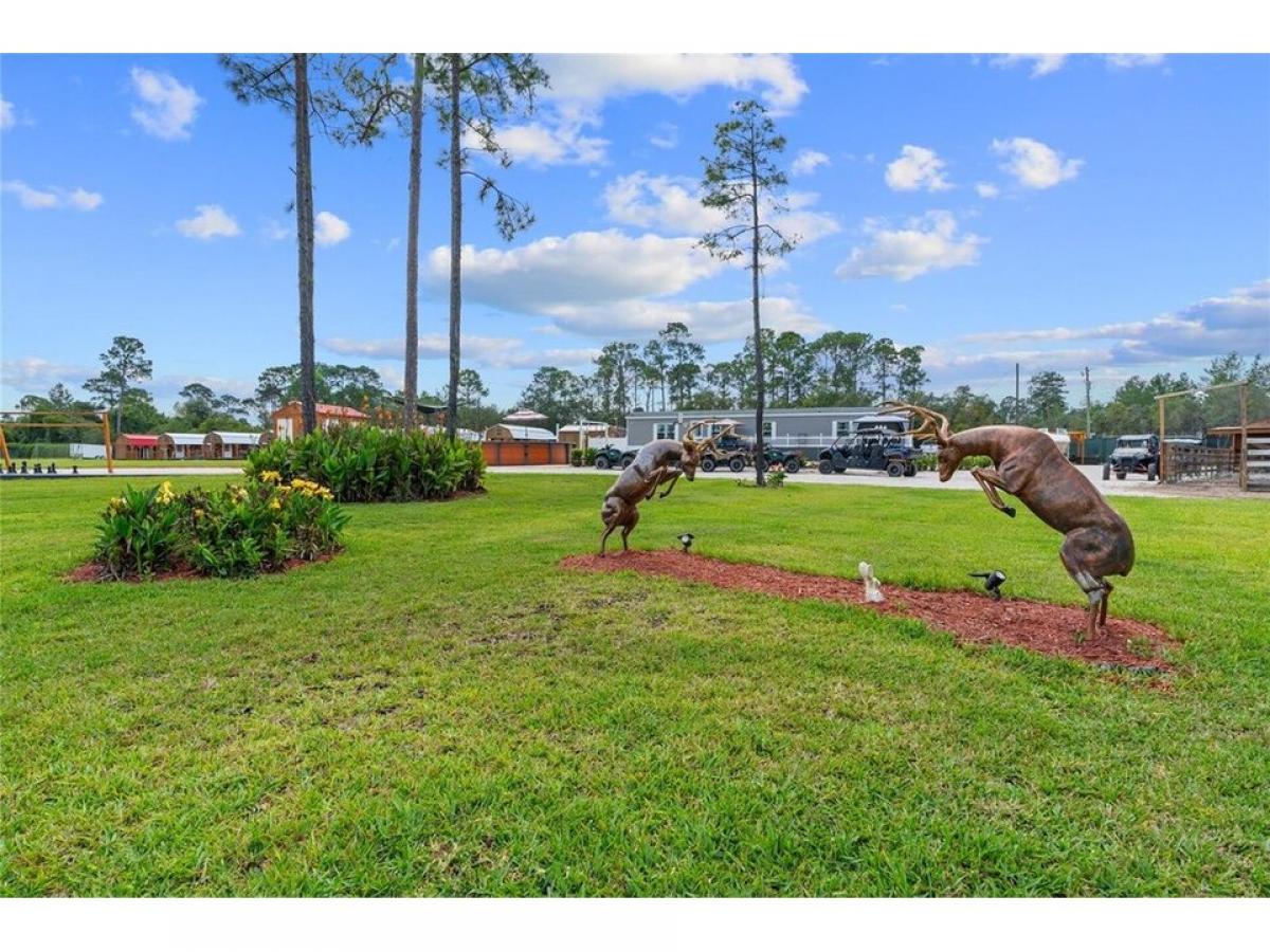 This unique, secluded 17.33 acre turnkey property nestled in the Ocala National Forest is nothing short of magnificent! As you enter the property you will be greeted with a lovely, gated entrance. property contains multiple structures surrounded by enchanting wildlife; featuring 5 acres of spectacular gardens, pond, and fruit trees. This paradise creates the ultimate dream, with everything from deep relaxation to amazing adventures such as your own private paint ball range, ATV, and horseback riding trails. A cozy 2019 doublewide mobile home has 2 bedrooms, office, 2 full baths, living room, dining room and laundry room. There are 7 charming boutique style cabins, fully furnished, including kitchenette, a/c, full bath, smart tv, full size beds, separately located laundry area, and plenty of storage space throughout the property. The deck off the main house boasts a view of a refreshing swimming pool, waterfall, 8-stable barn, corral, and a petting zoo with horses, goats and rabbits waiting to meet their new owners. The sports bar is built with custom stone decor, has a pool table and a stereo system that can be heard throughout the property. The food truck conveniently conveys to serve all who stay and can play the life size chess game and so much more. Turn this ranch into your private getaway or into an income producing venue for campers, family reunions, corporate retreats, team building and much more .Plenty of RV hookups and tent space. No HOA fees and no limitations to wherever your imagination leads you. To appreciate everything this property has to endure, schedule your tour today! If you love the outdoors, this is your wooded wonderland!