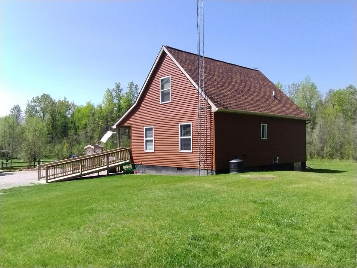 Fantastic peaceful and private setting where a pond side deck and pergola greet you. This 2 to 3 bedroom, one and a half bath home features beautiful hickory kitchen cabinets with granite counters, tile backsplash, and newer stainless appliances. has been updated and refurbished inside and out. with new air conditioner, new roof, 2023, New furnace, updated siding and new seamless gutters. With calm, winding walkway, and beautiful perennials, roses, bleeding hearts, and lovely orange lillies. Property features two new pole barns in addition to the 10 by 30 garage/workshop. 40 beautiful acres, with two blinds for you to clear out some of the abundant wildlife lured in by the many fruit trees. This property is a must see for the buyer looking for peace, quiet, comfort, and utility.