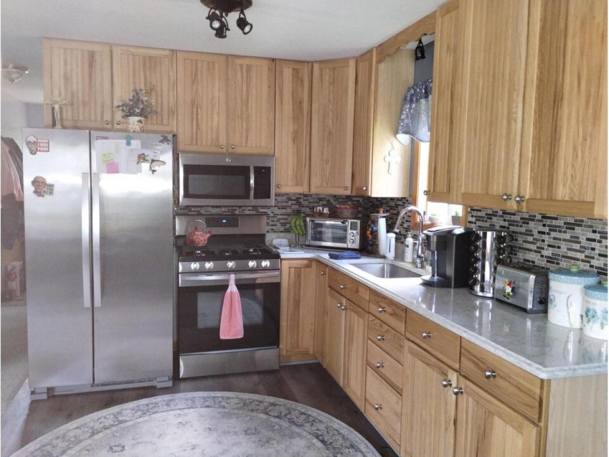 Fantastic peaceful and private setting where a pond side deck and pergola greet you. This 2 to 3 bedroom, one and a half bath home features beautiful hickory kitchen cabinets with granite counters, tile backsplash, and newer stainless appliances. has been updated and refurbished inside and out. with new air conditioner, new roof, 2023, New furnace, updated siding and new seamless gutters. With calm, winding walkway, and beautiful perennials, roses, bleeding hearts, and lovely orange lillies. Property features two new pole barns in addition to the 10 by 30 garage/workshop. 40 beautiful acres, with two blinds for you to clear out some of the abundant wildlife lured in by the many fruit trees. This property is a must see for the buyer looking for peace, quiet, comfort, and utility.