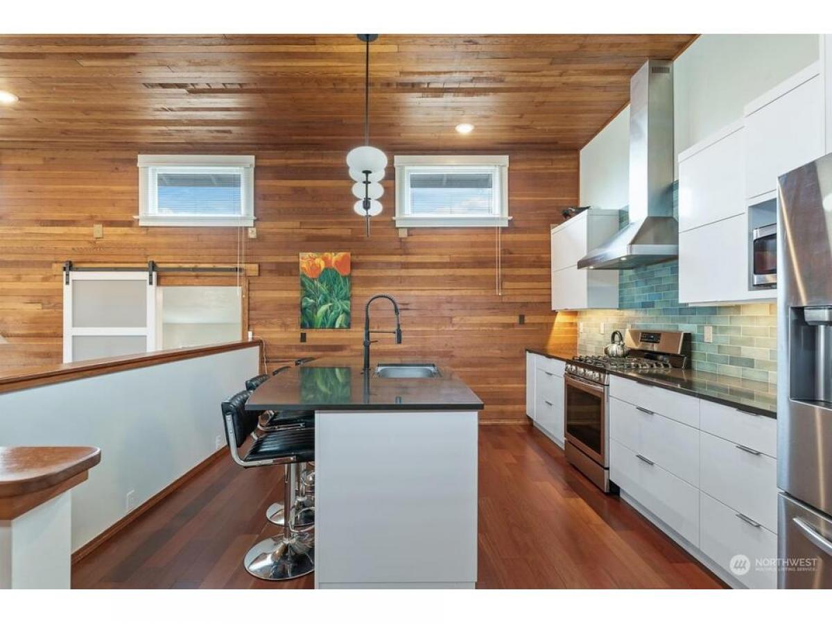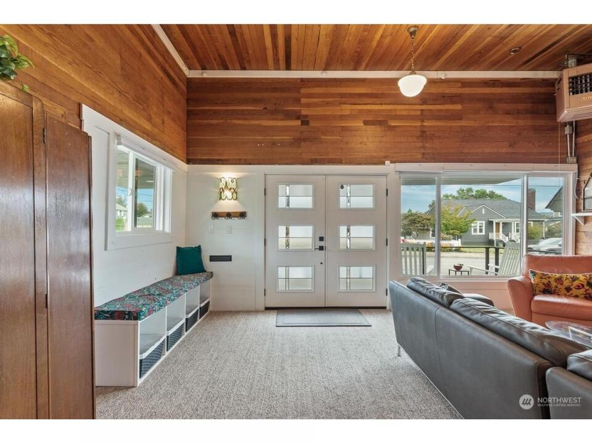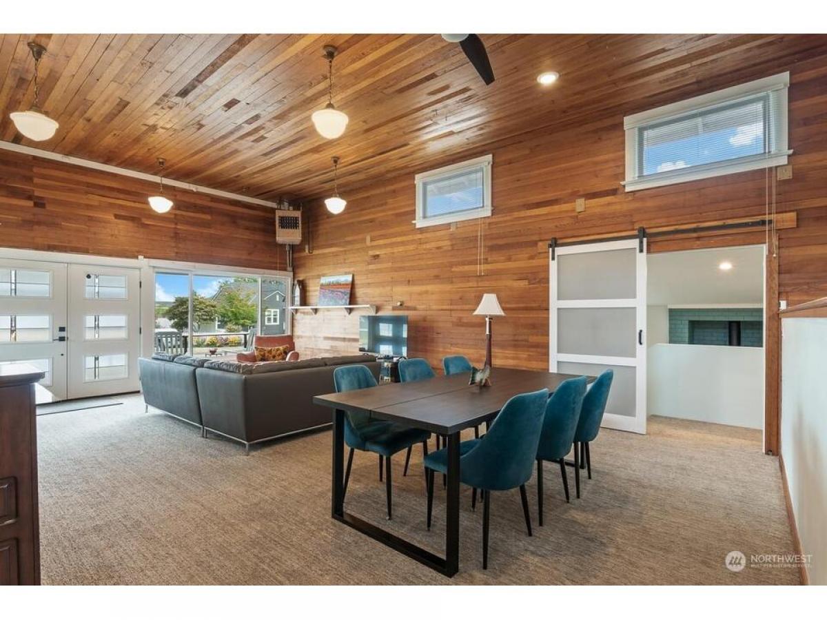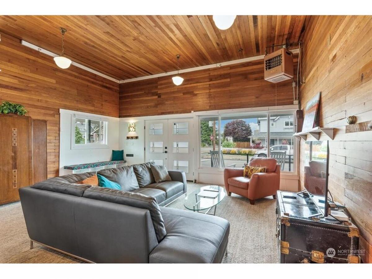Once a neighborhood grocery store now a remodeled historic home. Located in Old Town within blocks from restaurants, shops marinas. Classic front patio french doors welcome inside to immediately be surrounded with the warmth of cedar walls, tall ceilings lots of light. Main open living room with dining up to elevated kitchen offers time to relax or entertain seamlessly. The home has been tastefully updated with touches of a modern look - featuring 2 bedrooms, full bathroom, 3/4 bathroom, laundry/mud room 2 dens each with cozy gas fireplaces. Lovely fenced side yard with back patio leading to 2car garage off the alley with large bonus area in attic for storage or ADU possibility. Incredible chance to own a piece of Anacortes history.