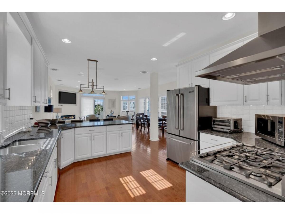 This magnificent 3-story, 6BR/3BA home offers unobstructed water views and dazzling sunsets from multiple decks and balconies. Spanning over 4,000 sq. ft., every inch is meticulously designed for comfort, style, and functionality. The ground floor features a porcelain tile entry, three spacious bedrooms (one with a private deck), a spa bathroom, a laundry room with a full-size Maytag washer and dryer, and ample storage. The second floor boasts an open layout with 9#039; ceilings, hardwood floors, and a gourmet kitchen equipped with granite countertops, solid wood cabinets, a 6-burner Bertazzoni stove, Bosch dishwasher, stainless double sink with garbage disposal, and a butler#039;s pantrymdash;perfect for a mixologist or coffee station. The airy living room, with oversized windows overlooking Barnegat Bay, features a gas fireplace with a built-in flatscreen and surround sound entertainment system. Two sets of sliding doors open to a luxurious wrap-around porch, offering the best of indoor-outdoor living. The elegant primary suite includes two walk-in closets, a French balcony, and an en suite bathroom with a seamless glass shower, soaking tub, and separate water closet. The third floor includes two more spacious bedrooms with walk-in closets, French balconies with 180-degree views, and a beautifully appointed bathroom. This pristine coastal contemporary home is as sophisticated as it is functional. Architectural highlights include cedar-impression siding, an asphalt shingle roof, oversized windows flooding the interior with natural light, and a conversion-ready 3-story elevator shaftway. The exterior features professional landscaping, a paver driveway, white all-weather fencing, and a 3-zone sprinkler system. High-end amenities include a spacious 2-car garage with remote openers, Hunter Douglas solar shades for privacy and energy efficiency, a 2-zone HVAC system with remote control, a tankless Rinnai hot water heater, and a remote-controlled Honeywell alarm system. With unparalleled features and a prime water view location in coveted Seaside Park, and just minutes to the treasure that is Island Beach State Park, this home is a sanctuary of modern living. Whether hosting an elegant gathering, enjoying a cozy night by the fireplace, or watching breathtaking sunsets, this extraordinary residence offers the perfect setting for every occasion. The combination of high-end finishes, thoughtful design, and breathtaking views makes this property a rare find. Schedule your private tour today. https://homes.motioncitymedia.com/1429thave/?mls