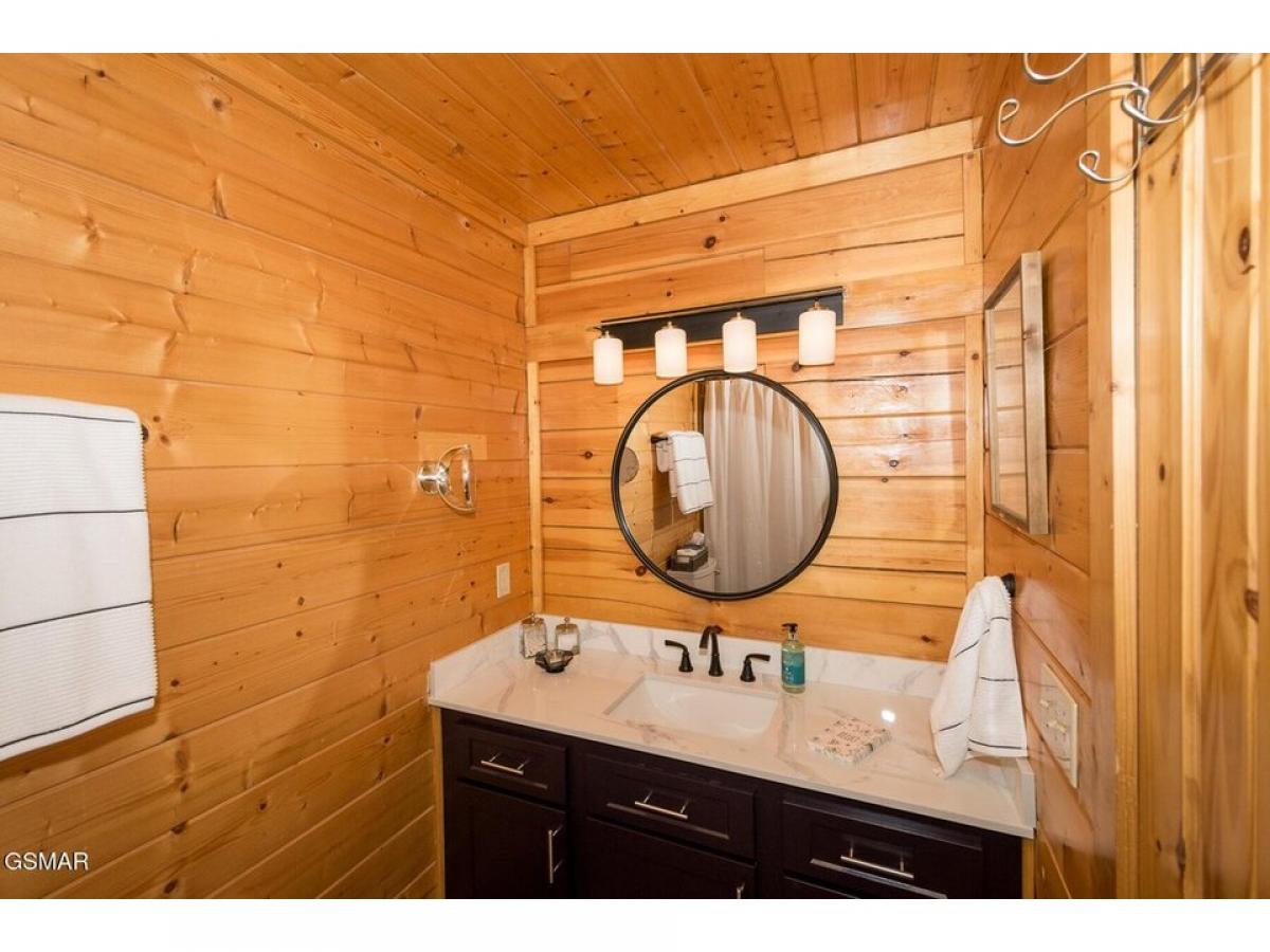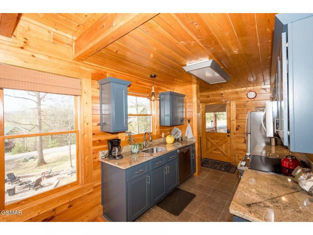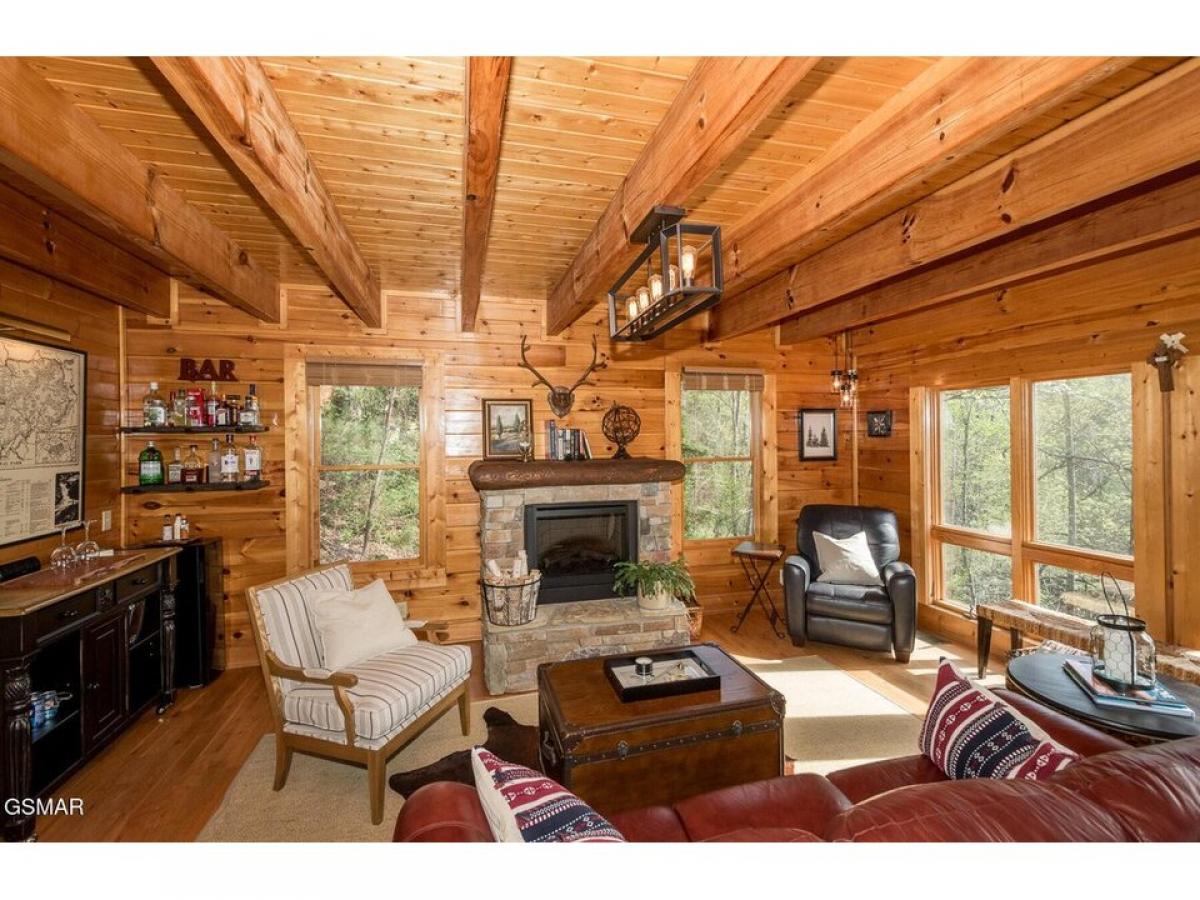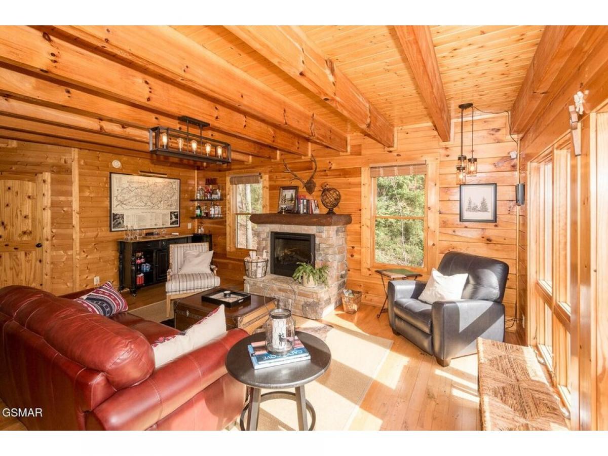 Pristine Condition- Every surface has been refinished and upgraded. A total make over! Set perfectly in the trees, this is a woodland paradise, with National Park Mountain Views. Close in and convenient, located at the top and back of small desirable resort, Cedar Creek Crossing on .71 of an acre which is just minutes from downtown Pigeon Forge. Master is conveniently located on the main level, another up with its own bath as well and the third bedroom is an open loft high in the rafters. The quality of the log timbers, open beams, walls of glass on every side is spectacular- you will never want to leave. None of the new construction can compete with this high end true log construction! You will love the open floor plan, the large recreation room with second gathering area. The new refreshed mountain modern decor shows off the timeless features of at the open stairwell, the gleaming hardwoods and hemlock. Light pours in through the windows all day to make this an airy treehouse! Beautiful resurfaced circular driveway is surrounded by rock outcropping dry bed natural landscaping. A fire pit, outdoor grilling and large front covered porch make this a cabin that allows you to enjoy the natural Smoky Mountain setting. Comes totally outfitted and ready to enjoy, fully stocked kitchen, hot tub, game table, TV#039;s and beautiful high end bed coverings! In perfect condition, you will not be disappointed! Cabin has not been rented in the last years and since the remodel.