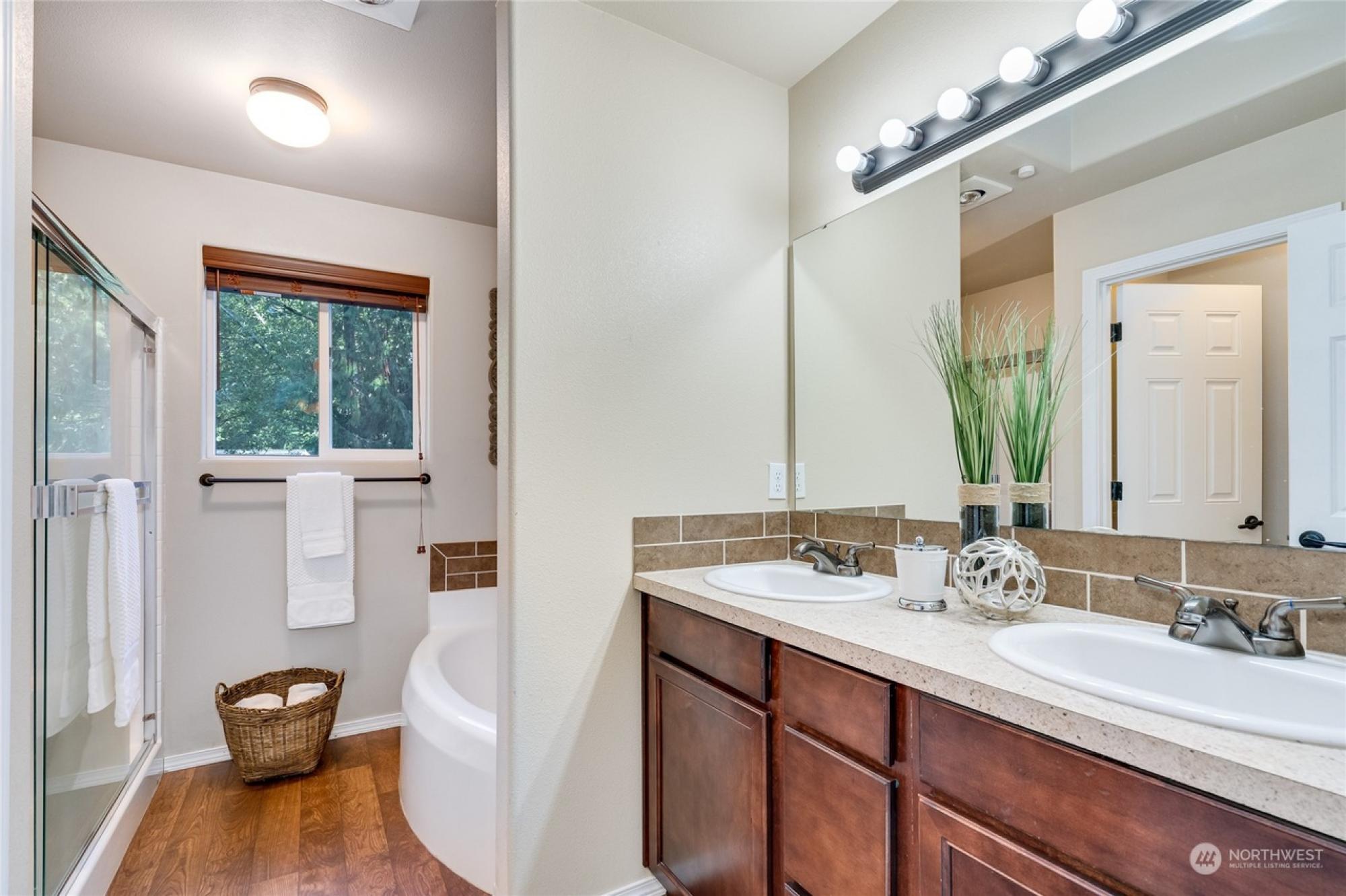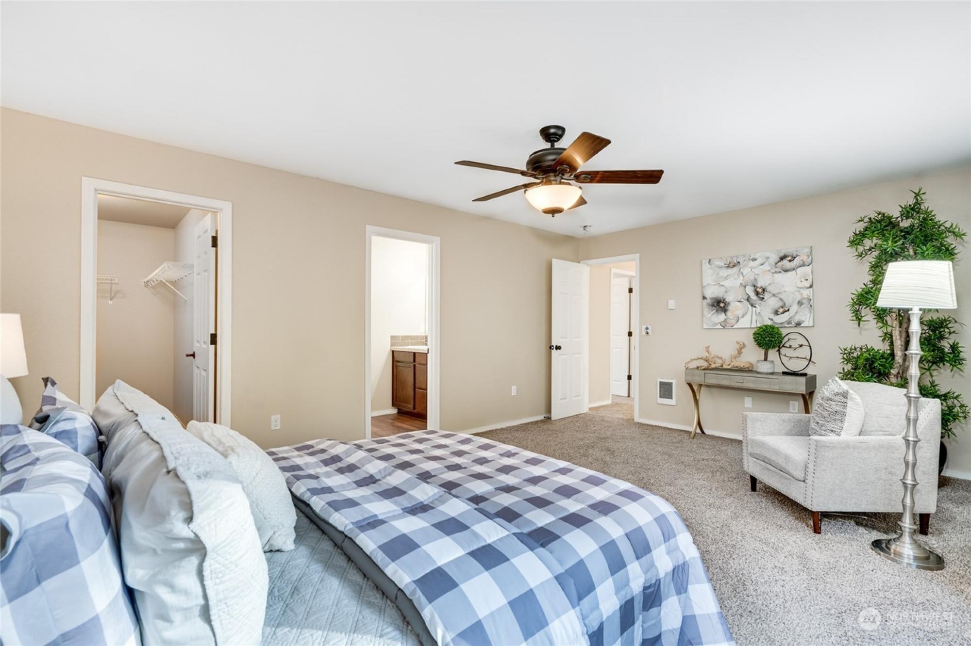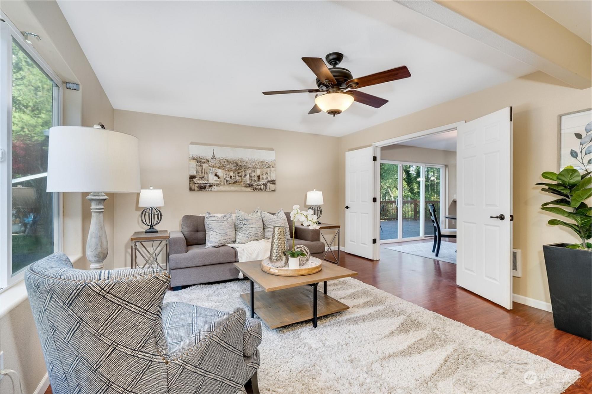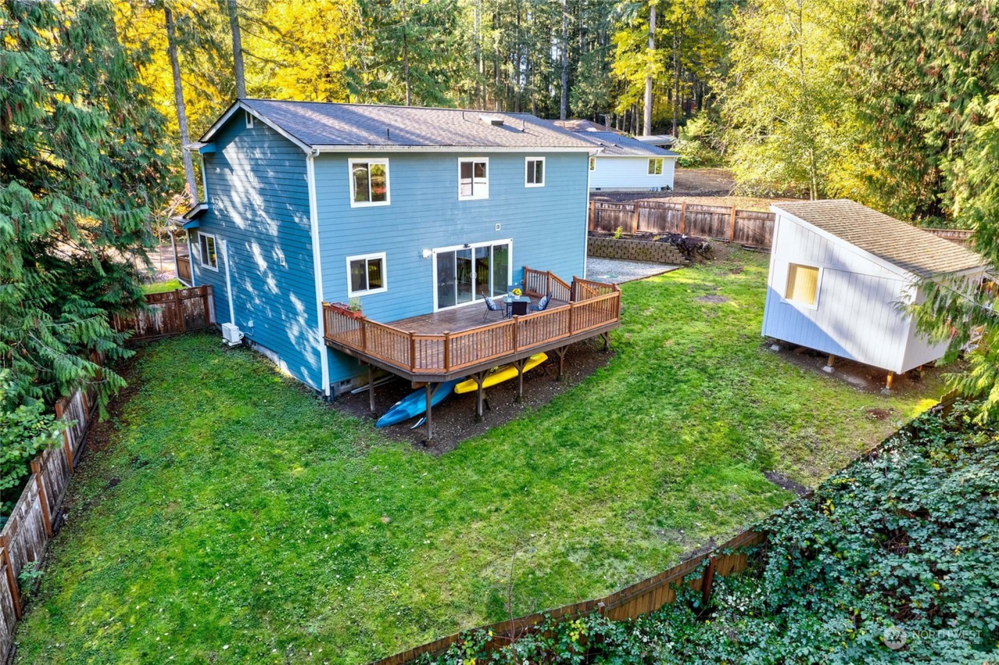 Nestled in a peaceful cul-de-sac, this 3-bed, 3-bath haven in Gig Harbor, Washington, offers an idyllic lifestyle just steps from the water. Durable laminate flooring graces the main level, comprising a family room, dining area, kitchen, and a versatile den/office. The expansive back deck presents views on Stansberry Lake, an ideal spot for both relaxation and entertaining. The upstairs retreat boasts an extra-large primary bedroom with a 5-piece ensuite and walk-in closet, plus two additional bedrooms, a full bath, and a bonus room. The fully fenced backyard with a shed, a 26-foot garage with storage, and large parking perfect for an RV are just a few features that enhance both comfort and practicality.