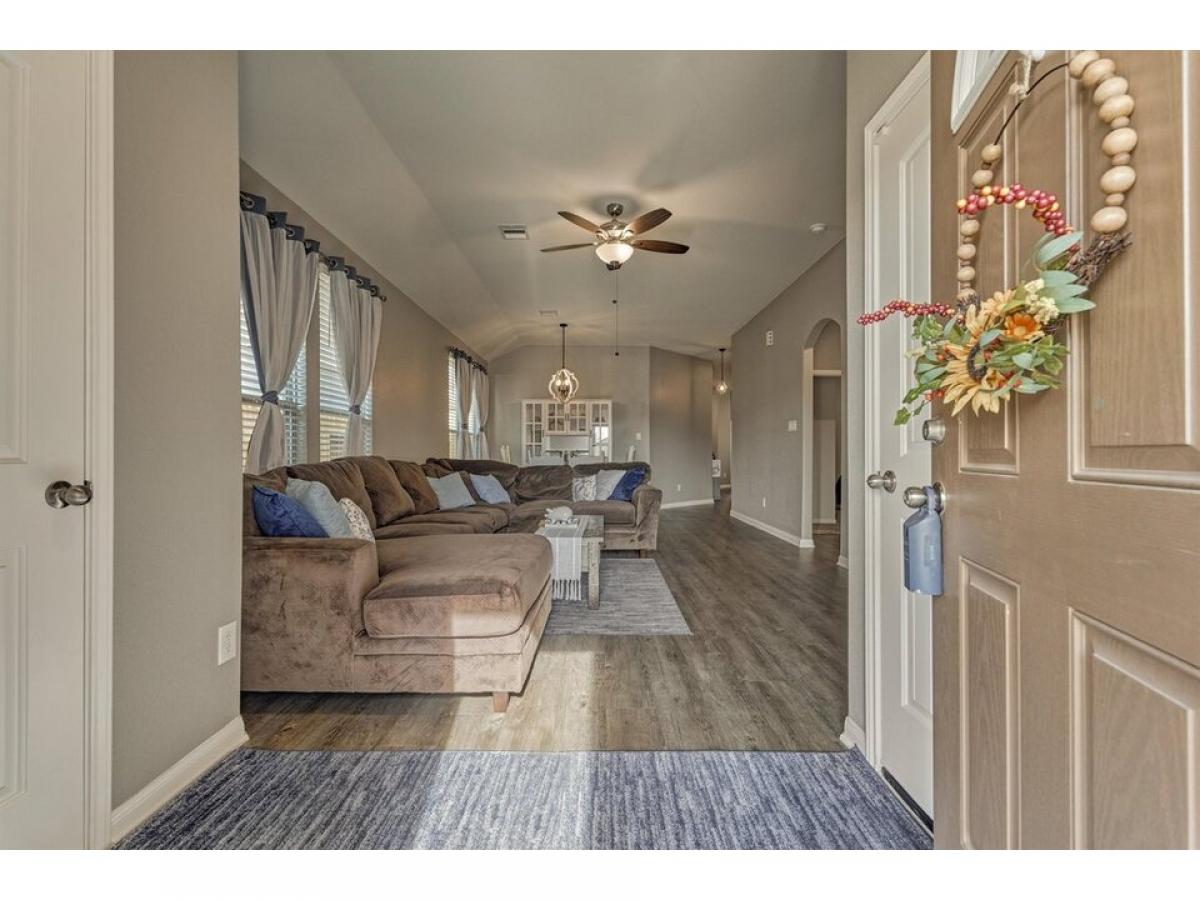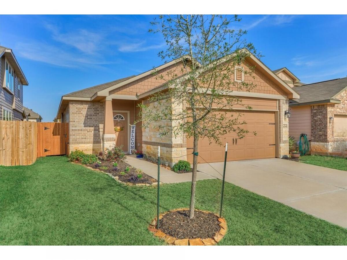 Welcome to this wonderful 3 bedroom, 2 bath home in the new Caney Mills community in Conroe! This impressive home has been immaculately cared for amp; upgraded with lots of added extras! Whole home water filtration system, Modern hardwood look flooring, neutral paint amp; high vaulted ceilings. The open concept living area offers a wall of windows allowing lots of natural light into the home, all with blinds and drapes.The split floor plan offers a primary suite located to the rear of the home, away form the additional 2 bedrooms.The large primary en-suite has a large en suite bathroom with dual vanity areas, soaker tub and glass shower. Enjoy the views to the backyard.Large closets amp; spacious laundry room!The gorgeous modern kitchen with granite counters is spacious amp; has a large breakfast bar amp; walk in pantry! Fridge Stays!Large backyard has an extended patio, perfect for entertaining! A generous 2 car garage offers overhead storage racks! Quick access to I-45, Great for commuters!