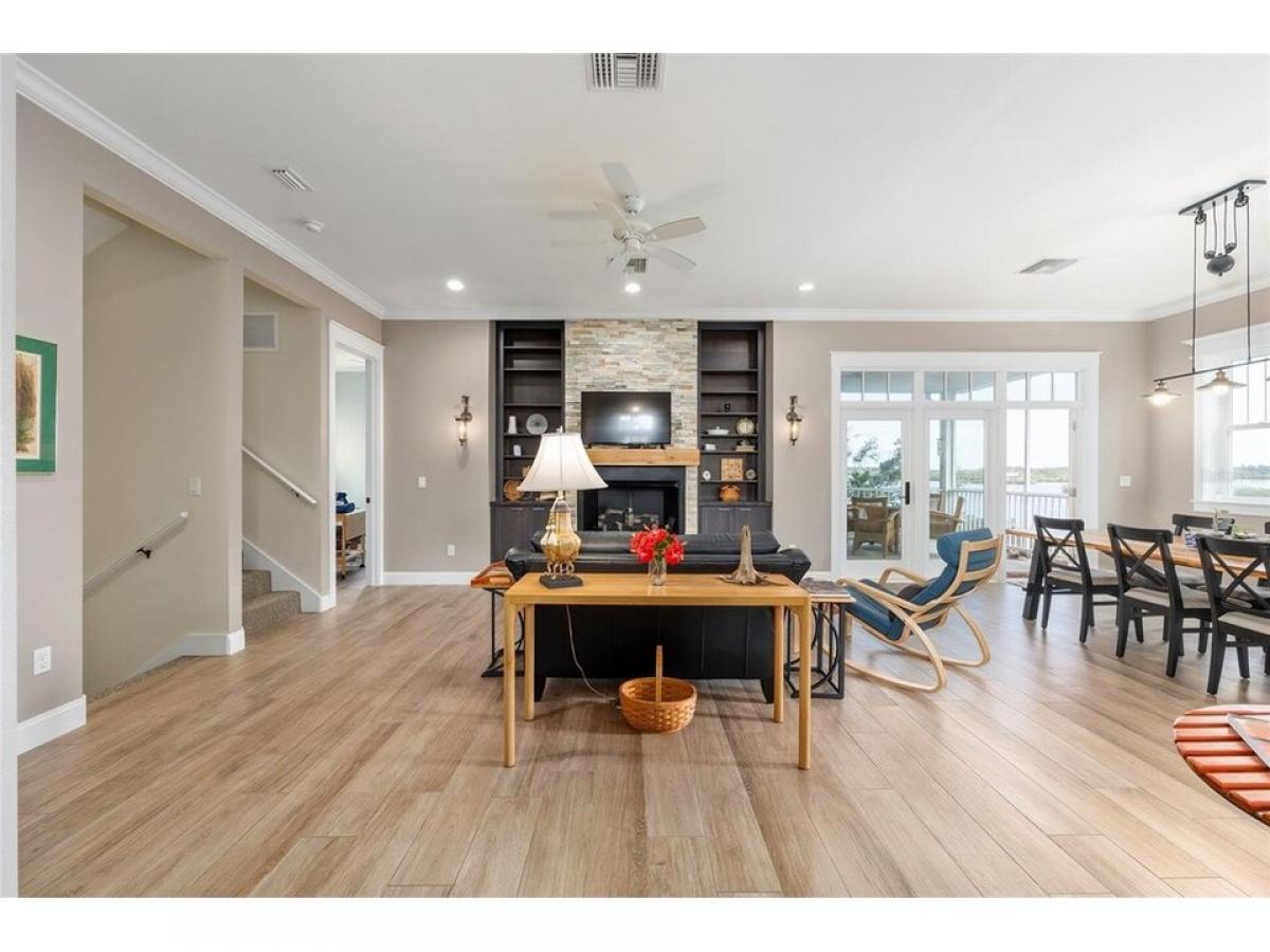 Craving luxury with breathtaking waterfront views? This stunning three-story waterfront home with 3 bedrooms and 2 baths in Ozello Keys has it all! This contemporary residence offers sweeping water vistas from multiple levels and the convenience of a brand-new boat dock, perfect for boating and fishing enthusiasts. Built in 2018, this home is packed with thoughtful amenities, including a brand-new elevator for convenience, an irrigation system, a spacious three-car-plus garage with boat storage, and two expansive porches on the second and third levelsmdash;ideal for entertaining or simply unwinding in the tranquil surroundings. Enjoy peace of mind with a large propane tank for cooking and heating, a whole-home generator, security system with interior and exterior cameras, and fully owned solar panels that nearly eliminate electricity costs. The elegant gathering room features soaring ceilings, intricate crown molding, LED downlighting, sleek porcelain plank flooring, and a stacked stone-accented gas fireplace offset by massive glass inset doors showcasing dramatic water views. The kitchen is a chefrsquo;s dream, boasting a top-tier stainless-steel appliance package, including a gas range with a vented hood, custom cabinetry, gleaming granite countertops, and a stylish subway tile backsplash with a detailed glass tile inlay. The mid-level of the home also features a casual dining room, two good-sized guest quarters, and a full-sized bath. The upper level houses a conveniently located laundry room and a luxurious owner#039;s suite complete with a spa-like en suite with porcelain brick flooring. a tile-lined walk-in shower and an elegant hip bath for soaking. Make your move today and claim this stunning waterfront retreatmdash;perfect for its next owner to embrace the laid-back lifestyle with unparalleled comfort and style.