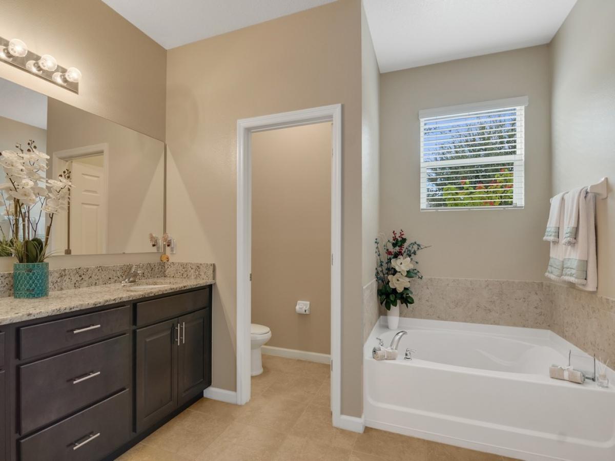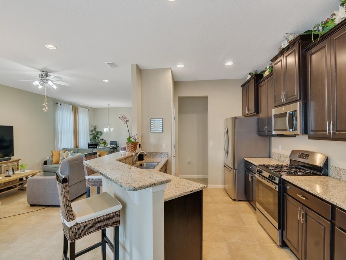 A gardener's dream! The landscaping is abundant and varied. Natural gas cooking, dryer and water heater. Popular Amalfi floor plan with 4 bedrooms, abundant storage and an oversized garage. All tile flooring with granite and stainless appliances in the open kitchen. Traditional neighborhood design community with county water, sewer and natural gas. Front porch living to wave to your neighbors and dog walkers stolling by. Social and golf memberships available. Low HOA fees include lawn maintenance and heated community pools. 5 minutes to shopping and restaurants and 15-20 minutes to the beach.