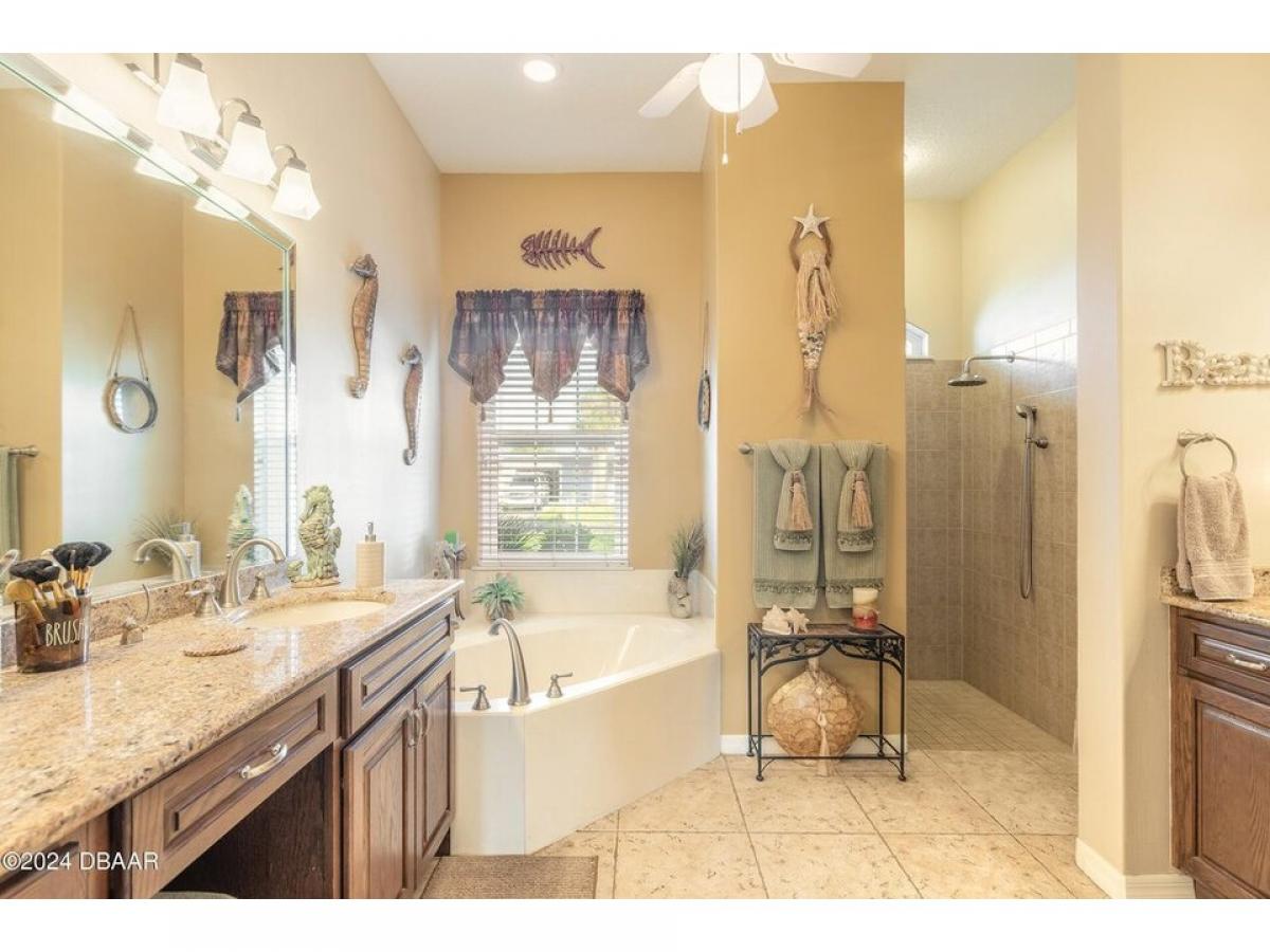 Welcome to your ultimate coastal dream home, a stunning beachside retreat perfectly positioned on the scenic canal of the Matanzas River. This magnificent 3-bedroom, 2-bathroom home with an extended 2-car garage and oversized boat dock is the epitome of luxurious waterfront living, offering every amenity and detail you could desire. From the moment you arrive, the exceptional curb appeal sets the stage for what lies beyond. The home welcomes you with a meticulously paved driveway and a beautifully tiled entrance that instantly captivates. As you step inside, you#039;ll be greeted by expansive 10-foot ceilings that lend an air of grandeur to every room. The porcelain tile flooring flows seamlessly throughout the entire home, adding an elegant touch while ensuring durability and easy maintenance. The heart of this home is its chef-inspired kitchen, with pull-outs located in the wood cabinets. Outfitted with high-end stainless steel appliances, sleek Corian countertops, and a stunning granite island, this kitchen is perfect for preparing gourmet meals or hosting casual get-togethers. An oversized pantry provides ample storage space, making it as functional as it is beautiful. Adjacent to the kitchen, the open-concept living and dining areas create an inviting space where natural light pours in, accentuated by views of the shimmering pool and tranquil canal beyond. The oversized master suite is a private sanctuary, offering a blend of comfort and sophistication. Designed with tray ceilings and elegant French doors that open directly onto the pool deck, this room is your personal retreat. The en-suite master bathroom is nothing short of a spa-like experience, featuring a double vanity with granite countertops, a luxurious soaking tub, a spacious walk-in shower, and dual his-and-her walk-in closets that have abundant storage. The guest quarters are equally impressive, with generously sized bedrooms that include oversized closets for plenty of storage. The guest bathroom is thoughtfully designed with a large shower, granite-topped vanity, and direct access to the pool deck, ensuring your visitors have every comfort at their fingertips. Entertainment is a breeze in the expansive living room, complete with a cozy electric fireplace that adds warmth and ambiance. This space is perfect for both quiet family evenings and lively gatherings with friends. For added convenience, the home features a spacious laundry room, complete with a large sink, ample counter space, and a window that brings in plenty of natural light. Step outside to your private outdoor oasis where resort-style living awaits. The expansive saltwater pool is perfect for refreshing swims on warm days or hosting unforgettable poolside parties. Even better, the pool has been resurfaced recently with new waterline tile added! The freshly painted pool deck offers ample space for lounging, dining, and soaking up the Florida sun. For added convenience, there#039;s even a mini kitchen on the pool deck, ideal for outdoor entertaining. Water enthusiasts will be delighted by the oversized boat dock, crafted with durable composite decking and designed to accommodate a 29 to 30-foot boat. Whether you#039;re an avid boater or simply enjoy kayaking, this dock is fully equipped with a kayak ramp and a 30-amp service. The new cradle on the lift ensures your boat is safely stored, ready for your next adventure on the water. The property is also fully enclosed with vinyl fencing, providing both privacy and peace of mind. Surrounded by lush, tropical landscaping, this home is truly a showstopper. Every detail has been thoughtfully curated to provide the best in coastal living, from the paver walkways to the vibrant gardens that create a tranquil, tropical ambiance. Located just minutes from local restaurants, shopping, and entertainment, you#039;ll enjoy the perfect balance of a peaceful waterfront lifestyle with the convenience of nearby amenities. This beachside beauty is a rare find, offering the best of Florida living in an unbeatable location. Don#039;t miss your chance to own this exceptional property. Schedule your private tour today and experience the unparalleled elegance and charm of this canal-front masterpiece! All information deemed accurate but can not be guaranteed.