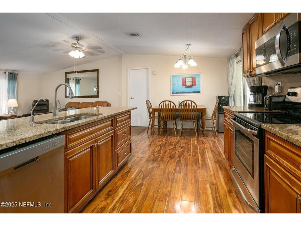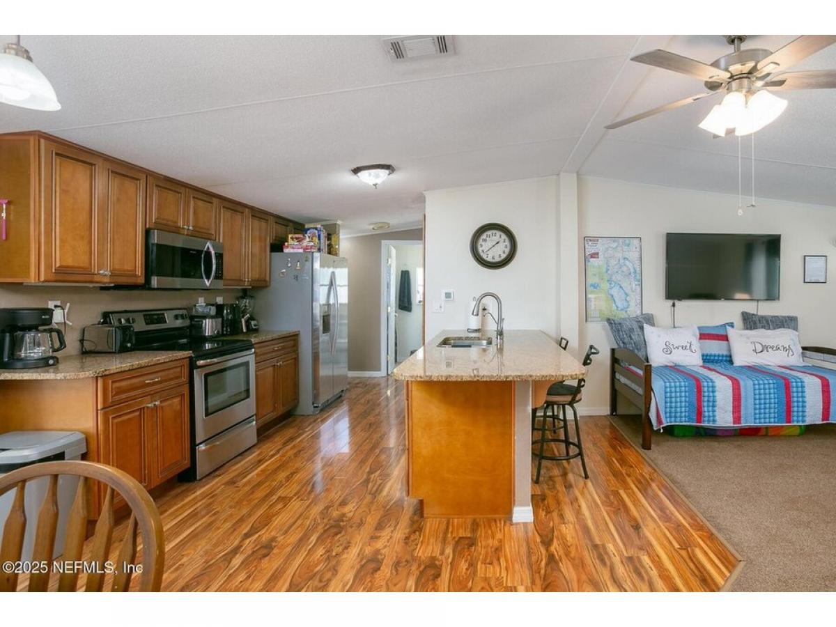 Canalfront 2BR/2BA doublewide mobile home being sold furnished. Features include vinyl plank flooring, stainless appliances, solid surface countertops in kitchen, screened porch for relaxing, and two storage sheds. There is also a community boat launch.