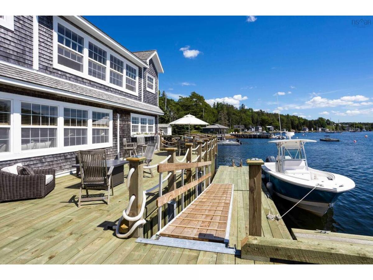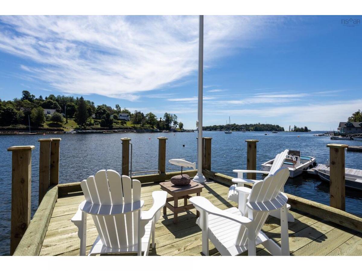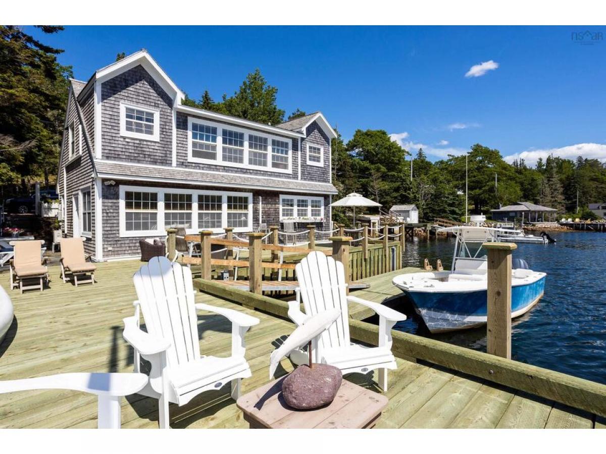 A shimmering Cape Cod on Chesterâs exclusive back harbour. There are only fifteen residents on the east side of Walker Road making this a very exclusive offering. Your first delight will be the immediate ocean view gratification as you enter the front door. The 1,749 square foot layout opens into a living, dining, kitchen waterside experience. Cascading water reflections dance through the windows with the sound of waves stirring on the shoreline, and the sweet smell of salty air. A new efficiency fireplace insert is centrally located for those cozy evenings. This is coastal living at its finest. Two bedrooms and a three-piece bathroom complete the main floor, (so upstairs living is optional!) There are five bedrooms in total, including a peek a boo queen sized with an entrance halfway up the stairs and a kids bunkie hatch in the rafters. The second level features end to end elevated water views from a grand bedroom living area. A luxurious four-piece ensuite and den/office make this floor the ultimate conditions for a relaxed lifestyle. You wonât have to walk down the front lawn to your boat, just walk out of your living room. A brand-new wharf and surround deck with all the ramps and floats make this a boaters paradise. It stretches the full 50 feet of the propertyâs ocean frontage. Additional features include a new flagpole, two heat pumps ensuring a comfortable climate, and wide plank pine flooring throughout. This home has a proven track record of long-term rentals if income generation is part of your financing equation. The seller is amiable with the continuation of the marketing and assumption of the 2024 rental bookings. Come celebrate life in Chester where everything is possible; fine art at Going Coastal, theatre at the Playhouse, sailing at the Yacht Club, and sports at the Tennis & Golf Clubs. For all the foodies go dockside for seafood chowder at the Rope Loft, latteâs at the Kiwi Caf, fine dining at the Sunroom, and tall tales at the Focsle Tavern.