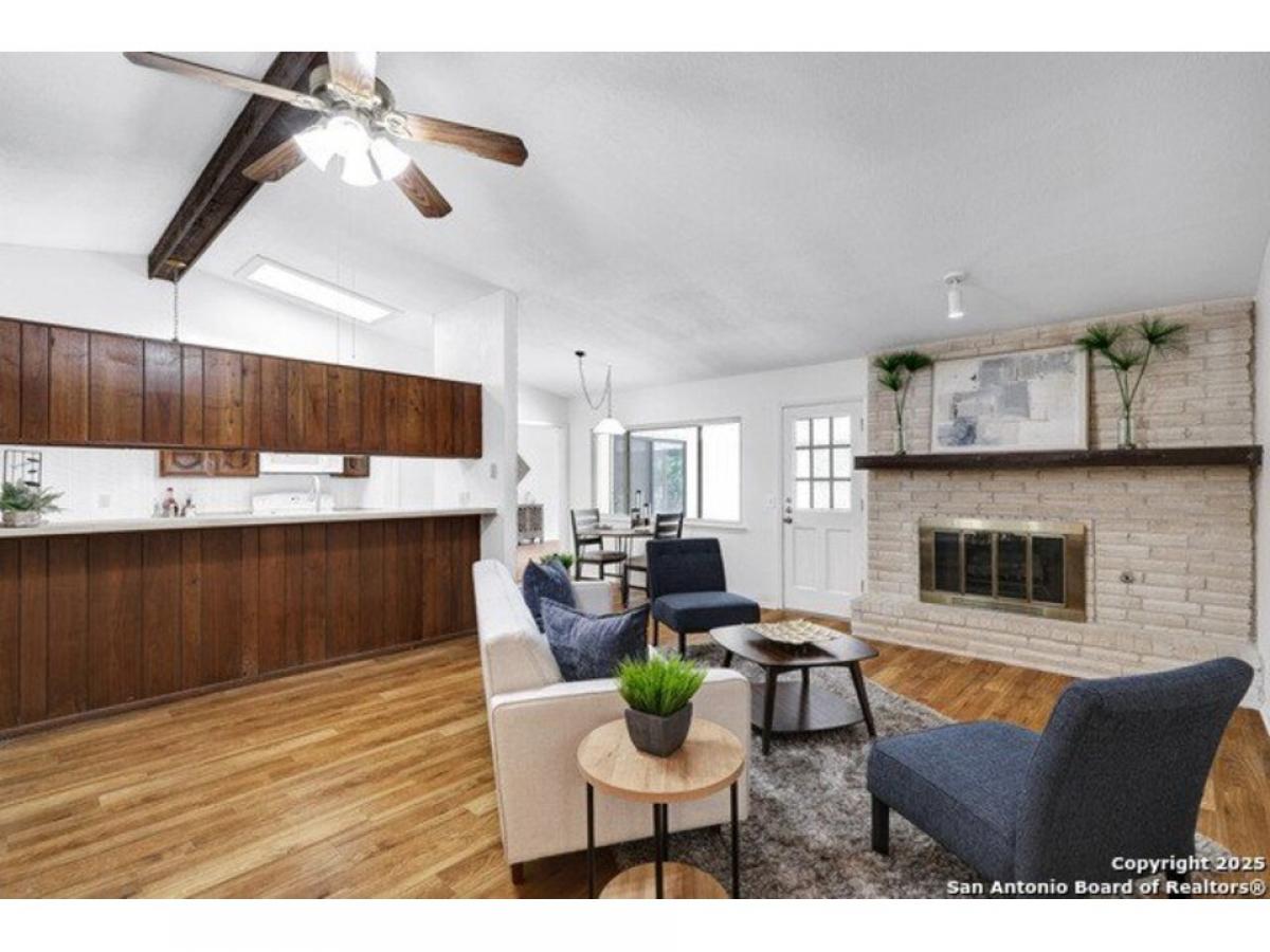 CHARM TO SPARE! Welcome to the cutest house on the block! The wide-open floor plan simply lives well! The spacious living room has a dramatic masonry fireplace and opens to the massive 27#039; x 12#039; covered patio - ideal for outdoor entertaining and relaxing by the sparkling in-ground SWIMMING POOL! The formal dining room provides plenty of space for hosting guests, while the kitchen is both functional and built for convenience with plenty of cabinet space, a range, a built-in dishwasher and pantry! No carpet throughout means easy maintenance! The generous primary suite includes a private bath with an oversized walk-in shower and a walk-in closet! A cozy game room with its own rock fireplace offers additional living space and direct access to the backyard! You won#039;t have to worry about roof issues because the roof was replaced in 2024! Great location in Olympia - near shopping, schools, I-35, Loop 1604, military bases and so much more! Recently painted interior! Absolutely a MUST SEE!