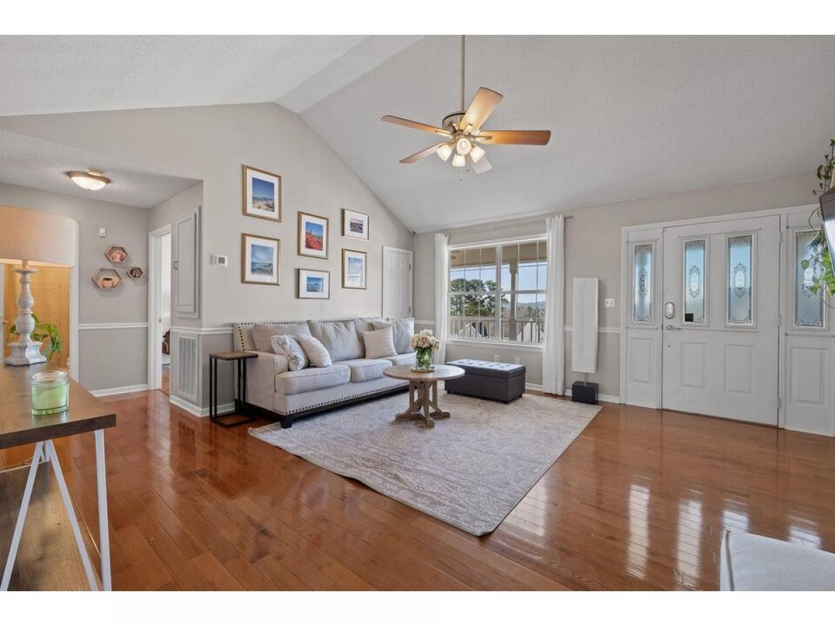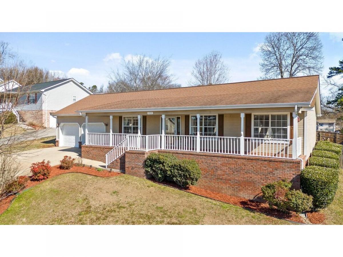 Welcome to 1433 Oldaker View Lane. Experience single-level living with breathtaking mountain views from the inviting wide front porch! Nestled on a quiet cul-de-sac, this beautifully maintained home boasts numerous updates including fresh paint and updated light fixtures. Gleaming hardwood floors extend through the entire home, with newly added flooring in the bedrooms. Natural light floods the spacious living room, where soaring cathedral ceilings enhance the open feel and frame the picturesque views. The newly updated kitchen features a stylish tiled backsplash, refreshed cabinetry, updated fixtures, and stainless steel appliances. The open-concept kitchen and dining area include a convenient pass-through window into the bright and cheery sunroommdash;an ideal spot to enjoy your morning coffee or unwind with a book. The spacious laundry room is located between the kitchen and garage. The primary suite offers a spacious retreat with a walk-in closet and an en-suite bath complete with double sink vanity and an oversized shower. A short hallway leads to two additional well-sized bedrooms that share a hall bath. Throughout the home you will find extensive storage. The oversized garage provides ample space for storage or a workshop, with custom-built shelving. Step outside to a backyard oasis, perfect for entertaining. Enjoy evenings around the fire pit, or cool off in the above-ground pool, added in 2021 and well maintained. The fully fenced yard offers privacy, while an encapsulated basement provides additional functionality. This home offers a spectacular vantage point for July 4th fireworks and is conveniently located near Chester Frost Park, Chickamauga Lake, and the shopping and dining options of Soddy Daisy and Middle Valley. Enjoy the serenity of a peaceful retreat while being just minutes from everything you need!