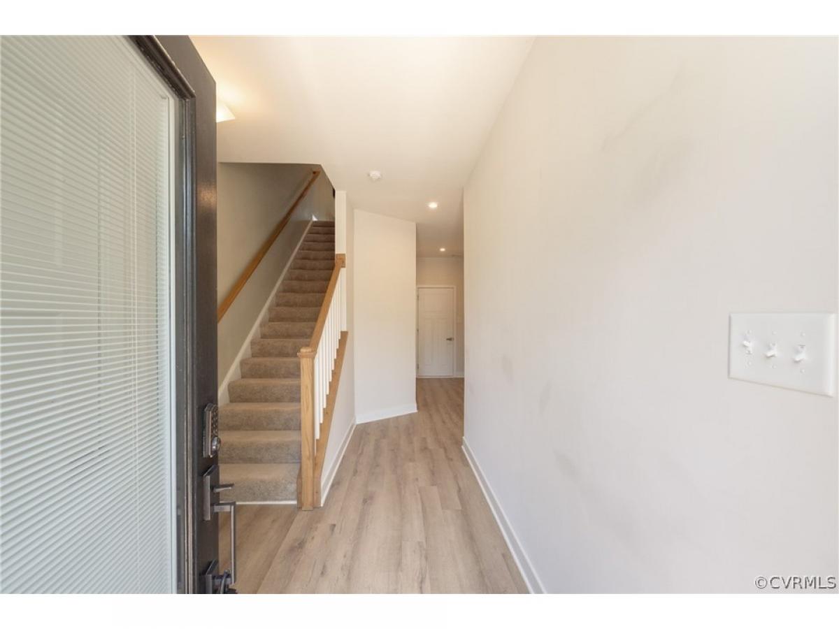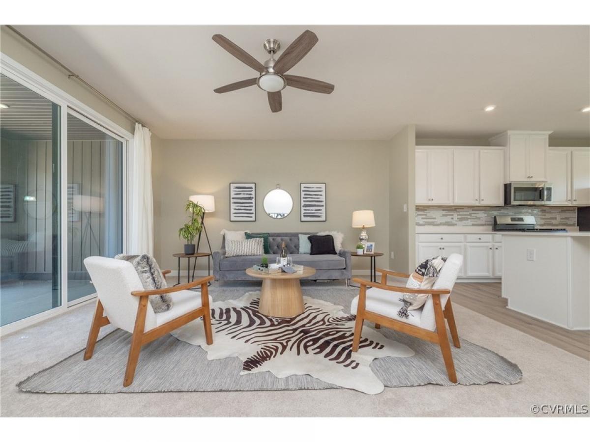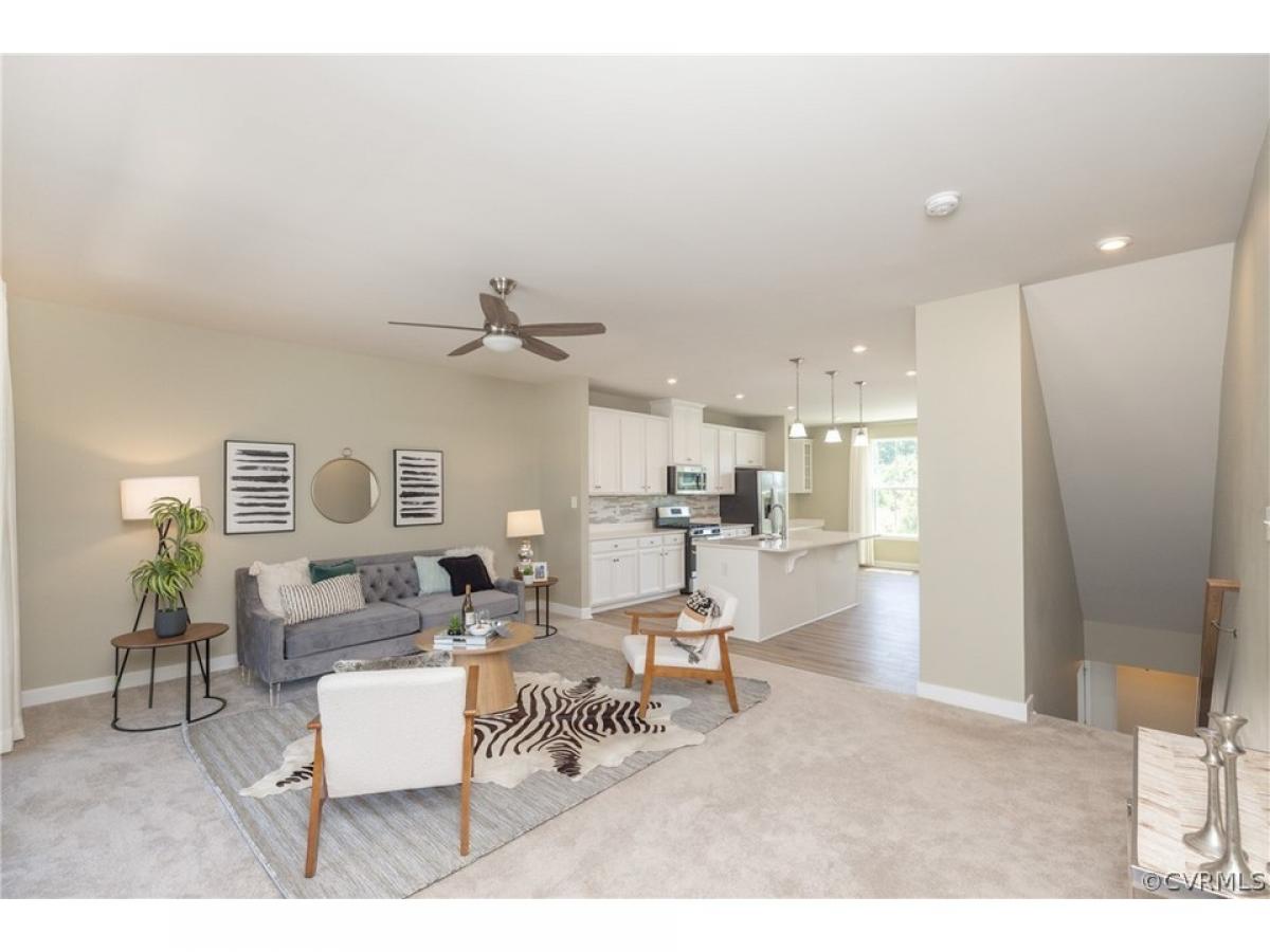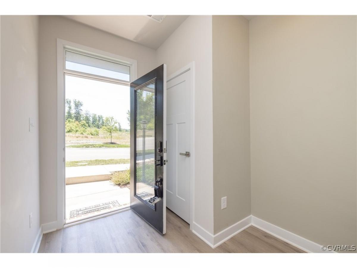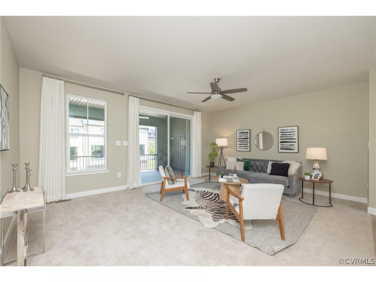 Welcome to 14336 Altavista! This exquisite, like-new 3-story townhome, built in 2022, is nestled in the sought-after CenterPointe Townes community in the heart of Midlothian, VA. With easy access to I-288 and Powhite Parkway, and close to shopping and dining, this home offers the perfect blend of convenience and luxury. The charming brick front immediately catches the eye. Enter the ground level to find a versatile bedroom with an ensuite full bath, ideal for guests or a home office, seamlessly connected to an attached 2-car garage. Ascend to the main floor where an airy open-concept layout beckons. The family room, equipped with a ceiling fan, opens to a chef-inspired kitchen and dining area. The kitchen is a culinary enthusiast's dream, featuring an oversized island, quartz countertops, a glass backsplash, white cabinetry with pullout drawers, energy-saving stainless steel appliances, a practical gas range, and pendant lighting. Adjacent to the kitchen, the dining area provides easy access to a well-placed powder room and a built-in desk with glass cabinets. Enjoy the outdoors on the cozy, covered SkyLanai terrace, perfect for relaxation. On the third floor, the master suite awaits, offering tranquility with its vast walk-in closet and an ensuite bathroom. The bathroom features a dual vanity with quartz countertops, ample cabinet storage, a glass door dual-head Roman Shower room with a built-in bench, and a water closet. Two additional bedrooms, a hall full bathroom, and a conveniently situated laundry room with soundproof insulation walls complete this level. Additional features include 9' high ceilings on each floor, and great views from the dining area and bedrooms. Smart home design elements include remotely controllable entry door lock, Ring doorbell, garage door opener, Nest thermostat, and two ceiling fans. Plenty of off-street parking spots are available. This home is a testament to modern living, bursting with natural light and thoughtfully curated details for sophisticated, comfortable living.