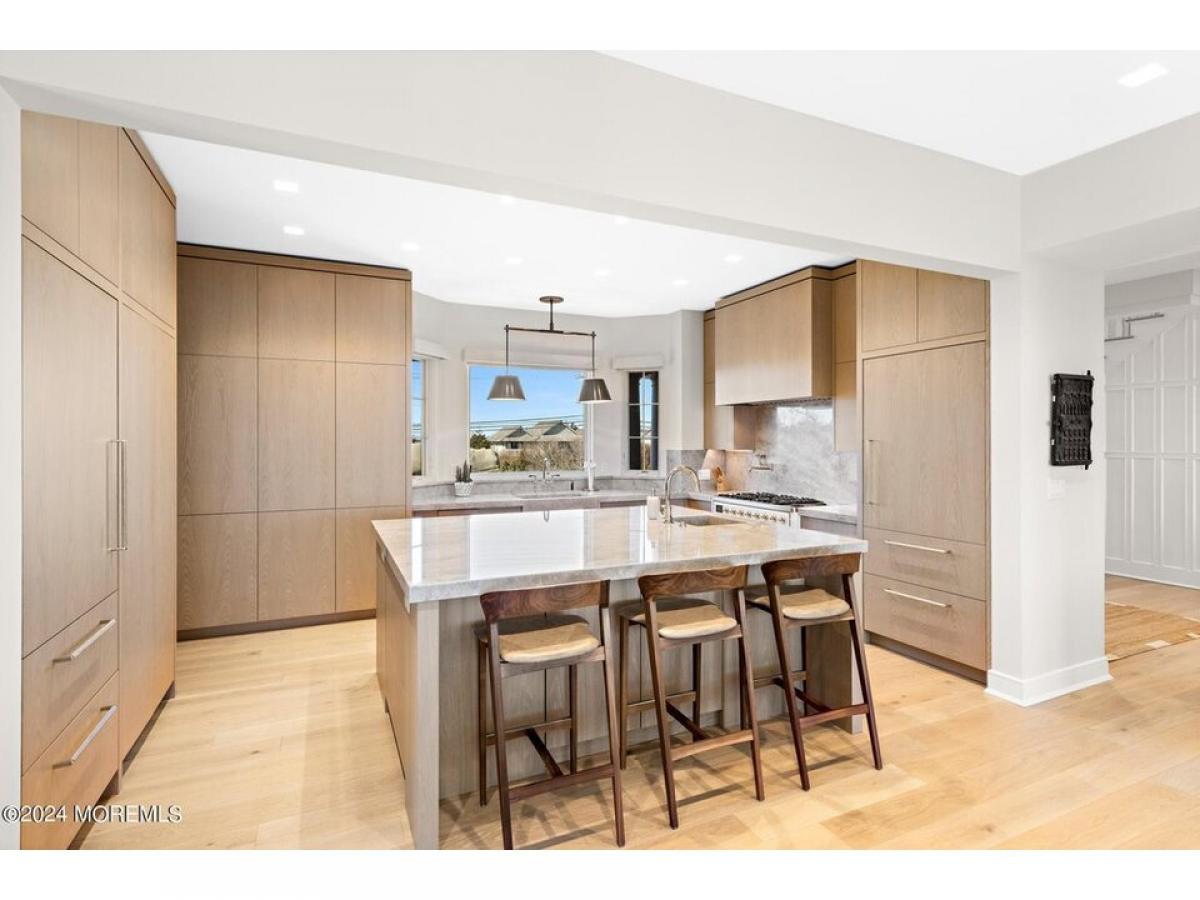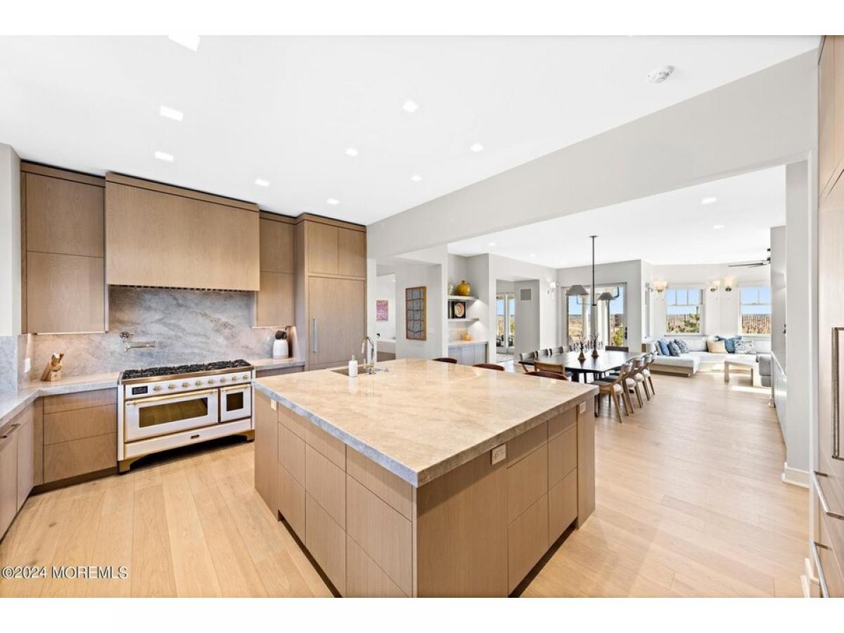 A renovated and expanded oceanfront residence in Mantoloking, completed in 2023, stands as the epitome of timeless design and meticulous construction. With expansive porches on three levels to invite the ocean breeze, this home highlights an unparalleled attention to detail in its custom millwork and cabinetry. The architectural elegance is further defined by bespoke fabricated stone sinks and countertops. Offering seven bedrooms and 7.5 baths, it combines warmth with modern design in a spacious open floor plan ideal for entertaining and coastal living. Occupying an oversized parcel of 100#039; x 420#039;, the property promises unparalleled privacy. Its proximity to the Mantoloking Yacht Club and town center positions it as a prime spot for those seeking the essence of coastal living.