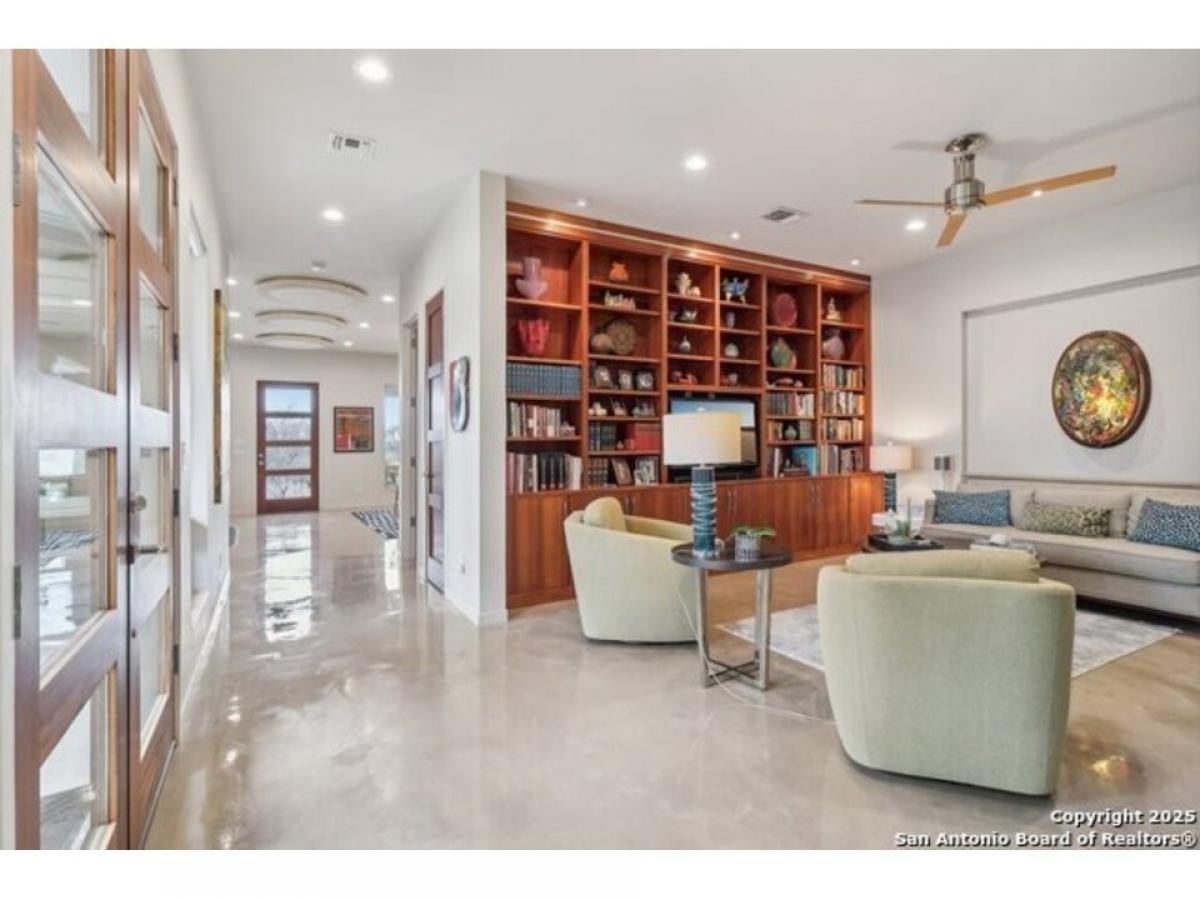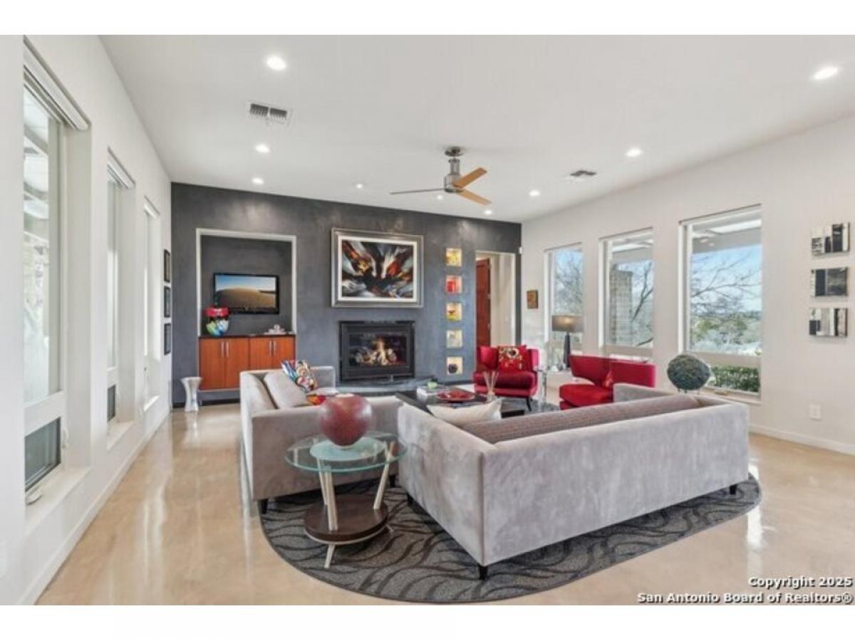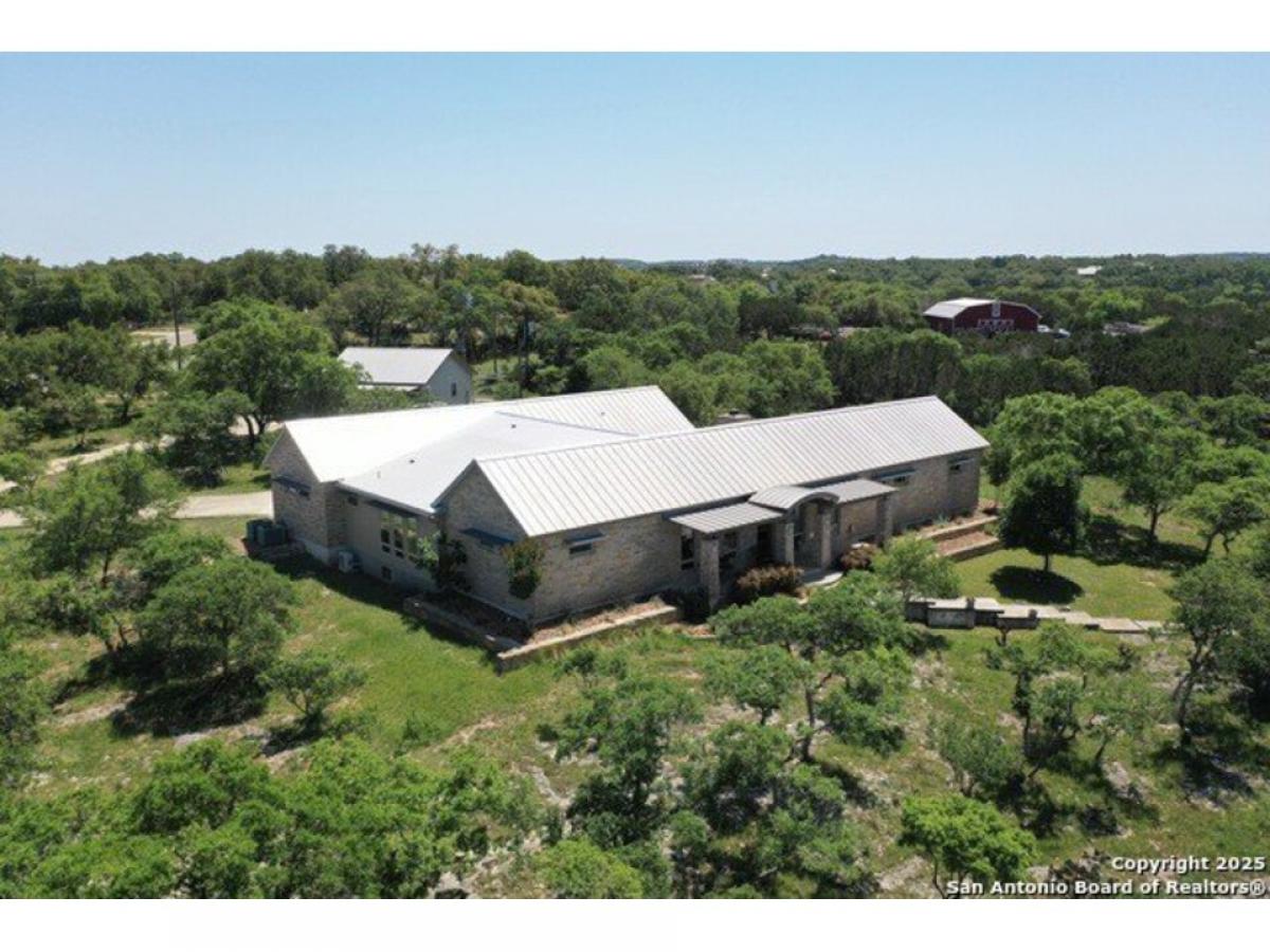 Welcome to the Bob Cat Ranch an exceptional Hill Country contemporary home, where modern luxury meets thoughtful design. This stunning 4,000-square-foot residence, accompanied by a beautifully appointed 920 sf 1 Bedroom luxury guest house, -great for Short Term Rentals, offers four bedrooms and three-and-a-half baths in the heart of the Hill Country in Boerne, Texas. The main house showcases polished concrete floors throughout, creating a seamless blend of sophistication and durability. The gourmet kitchen is a chef#039;s paradise, featuring absolute black granite countertops, a striking Verde Bamboo granite island, and top-tier appliances including a 5-burner gas cooktop, double ovens, and a built-in wine refrigerator. The primary bedroom suite epitomizes luxury with its designer accent wall, reading lights, and spacious walk-in closet complete with custom organization systems. The spa-like primary bathroom boasts a deep soaking tub, oversized walk-in shower, and dual granite vanities with vessel sinks. The 4th bedroom could serve as a second Primary Bedroom, Media room or Living room offering flexibility for multi-generational living or guest accommodations. A dedicated office space features a wall of built-in cabinets and bookcases, while the family room offers extensive built-in storage and designer accents. The thoughtfully designed living areas include art niches with specialized lighting and an inviting gas fireplace. The property#039;s outdoor space spans five pristine acres, offering tranquil Hill Country views and access to the Guadalupe River through homeowner#039;s parks. The oversized three-car garage features epoxy flooring and custom storage solutions, complemented by a two-car carport and attached shed. The separate guest house, affectionately named quot;Little Bobcat,quot; provides additional living space with its own kitchen, full bath, and high-end finishes. Located near Spring Creek Park and the famous Cave Without a Name, this property offers the perfect blend of privacy and convenience to Boerne#039;s charming downtown amenities, Medical Faculties and Award Winning Boerne ISD.