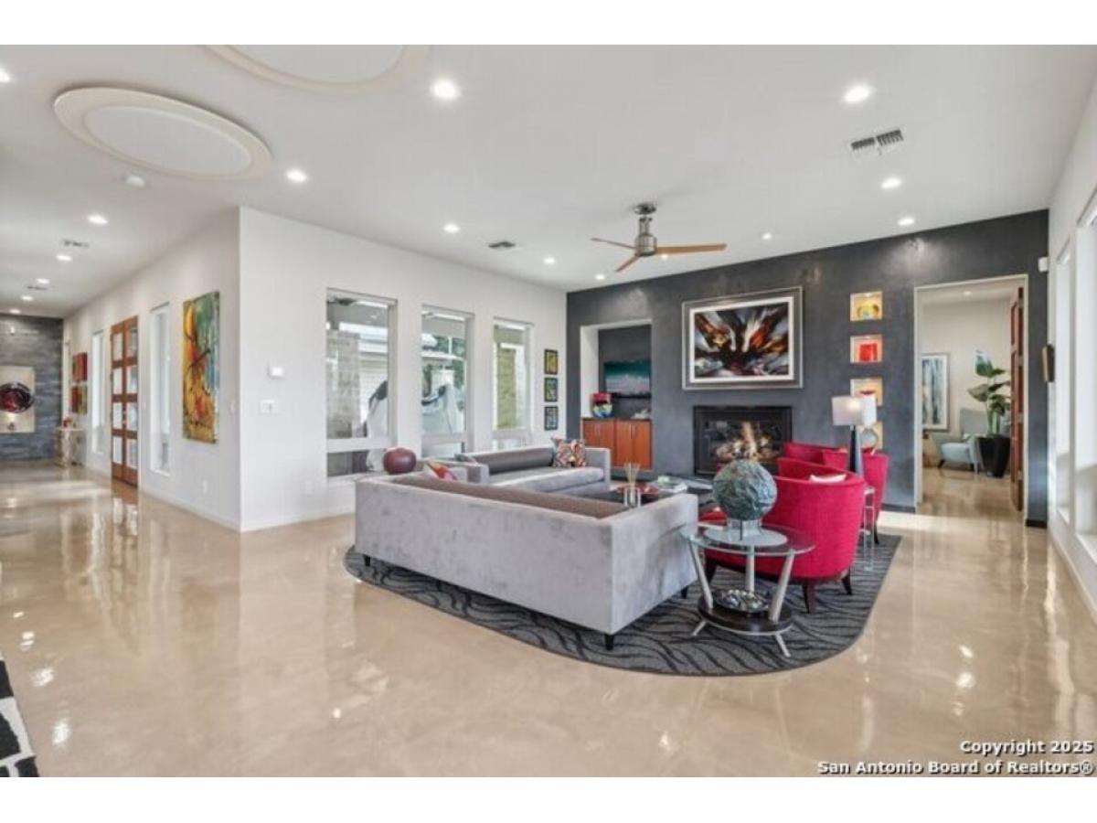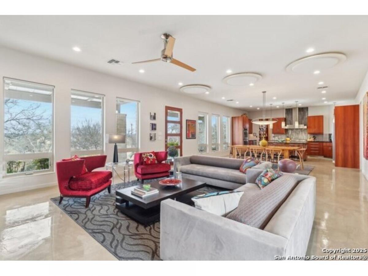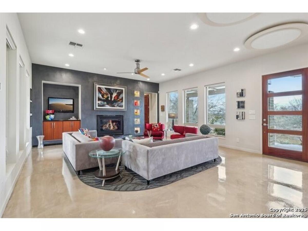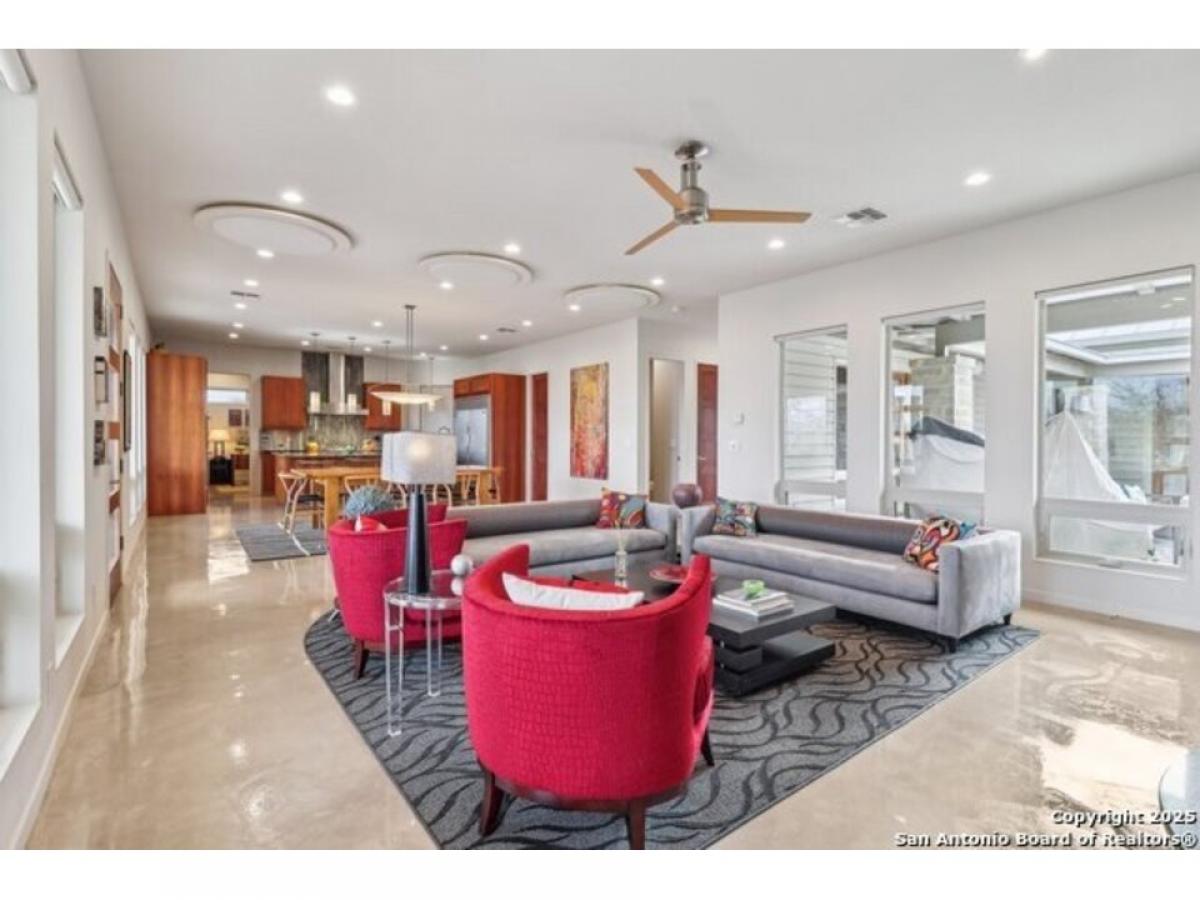 Welcome to the Bob Cat Ranch an exceptional Hill Country contemporary home, where modern luxury meets thoughtful design. This stunning 4,000-square-foot residence, accompanied by a beautifully appointed 920 sf 1 Bedroom luxury guest house, -great for Short Term Rentals, offers four bedrooms and three-and-a-half baths in the heart of the Hill Country in Boerne, Texas. The main house showcases polished concrete floors throughout, creating a seamless blend of sophistication and durability. The gourmet kitchen is a chef#039;s paradise, featuring absolute black granite countertops, a striking Verde Bamboo granite island, and top-tier appliances including a 5-burner gas cooktop, double ovens, and a built-in wine refrigerator. The primary bedroom suite epitomizes luxury with its designer accent wall, reading lights, and spacious walk-in closet complete with custom organization systems. The spa-like primary bathroom boasts a deep soaking tub, oversized walk-in shower, and dual granite vanities with vessel sinks. The 4th bedroom could serve as a second Primary Bedroom, Media room or Living room offering flexibility for multi-generational living or guest accommodations. A dedicated office space features a wall of built-in cabinets and bookcases, while the family room offers extensive built-in storage and designer accents. The thoughtfully designed living areas include art niches with specialized lighting and an inviting gas fireplace. The property#039;s outdoor space spans five pristine acres, offering tranquil Hill Country views and access to the Guadalupe River through homeowner#039;s parks. The oversized three-car garage features epoxy flooring and custom storage solutions, complemented by a two-car carport and attached shed. The separate guest house, affectionately named quot;Little Bobcat,quot; provides additional living space with its own kitchen, full bath, and high-end finishes. Located near Spring Creek Park and the famous Cave Without a Name, this property offers the perfect blend of privacy and convenience to Boerne#039;s charming downtown amenities, Medical Faculties and Award Winning Boerne ISD.