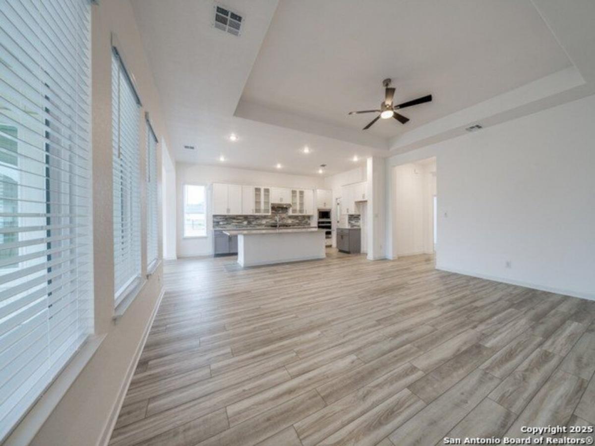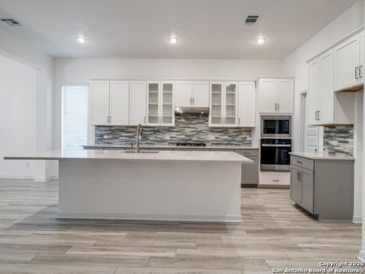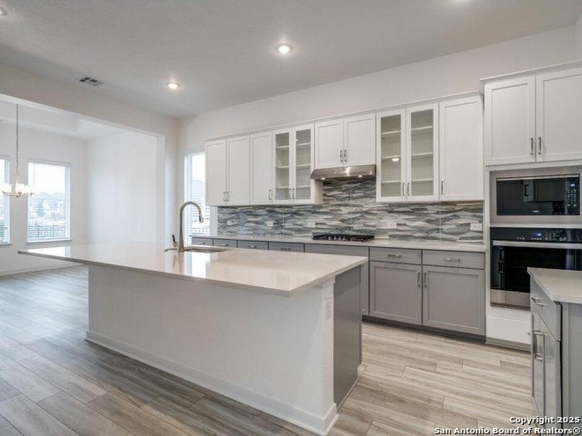 Beautiful curb appeal describes this absolutely stunning home featuring quality finishes amp; numerous upgrades throughout. The study w/glass French doors amp; a private guest bedroom suite flow off the 32-foot dramatic entry with dual-coffered ceilings.The chef#039;s kitchen has upgraded cabinetry, gas cooking, oversized island, quartz countertops, fabulous pantry, and contemporary design backsplash. Luxury vinyl flooring is throughout the main living areas.The primary bedroom is attached to a spa-like bath with an oversized designer shower w/2 showering areas. Oversized corner lot w/ wrought iron fencing amp; nice landscaping. The covered patio is perfect for family gatherings.