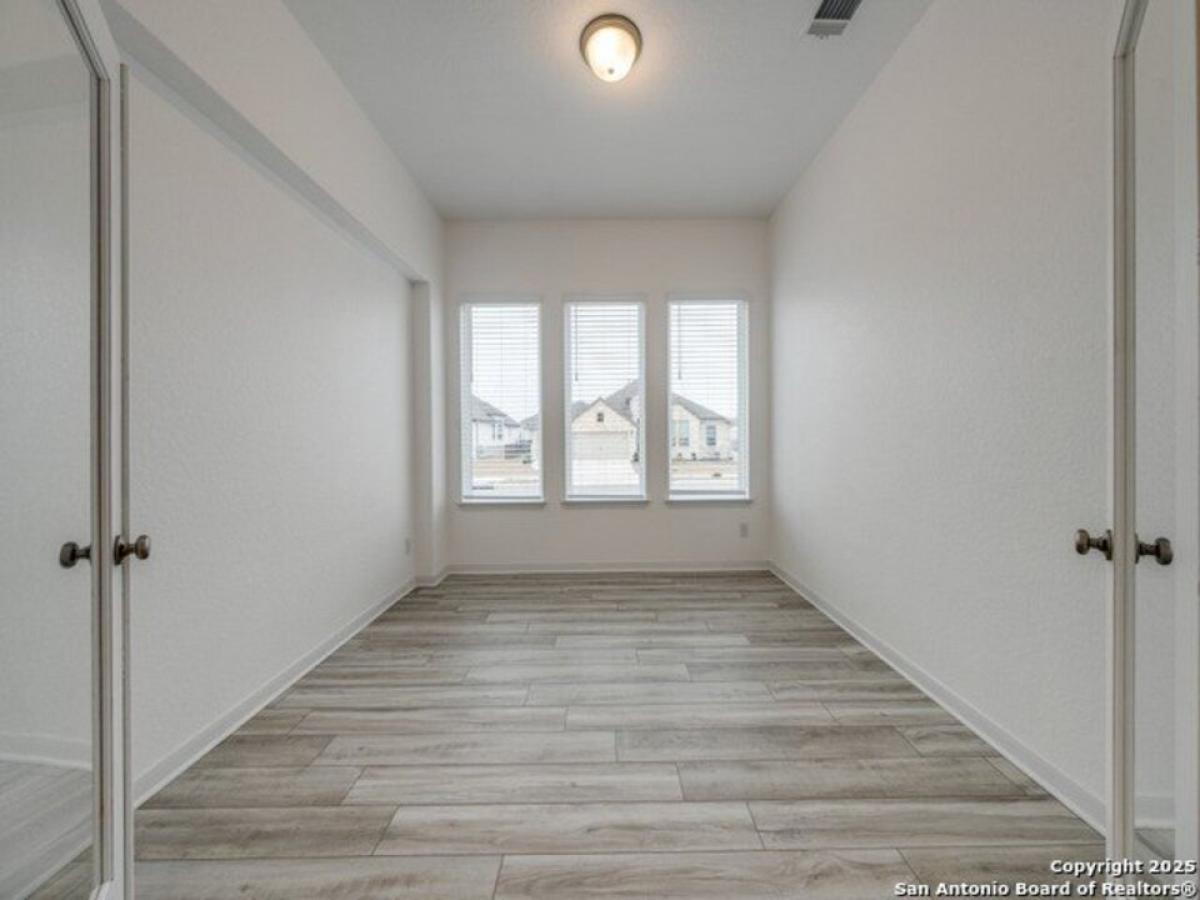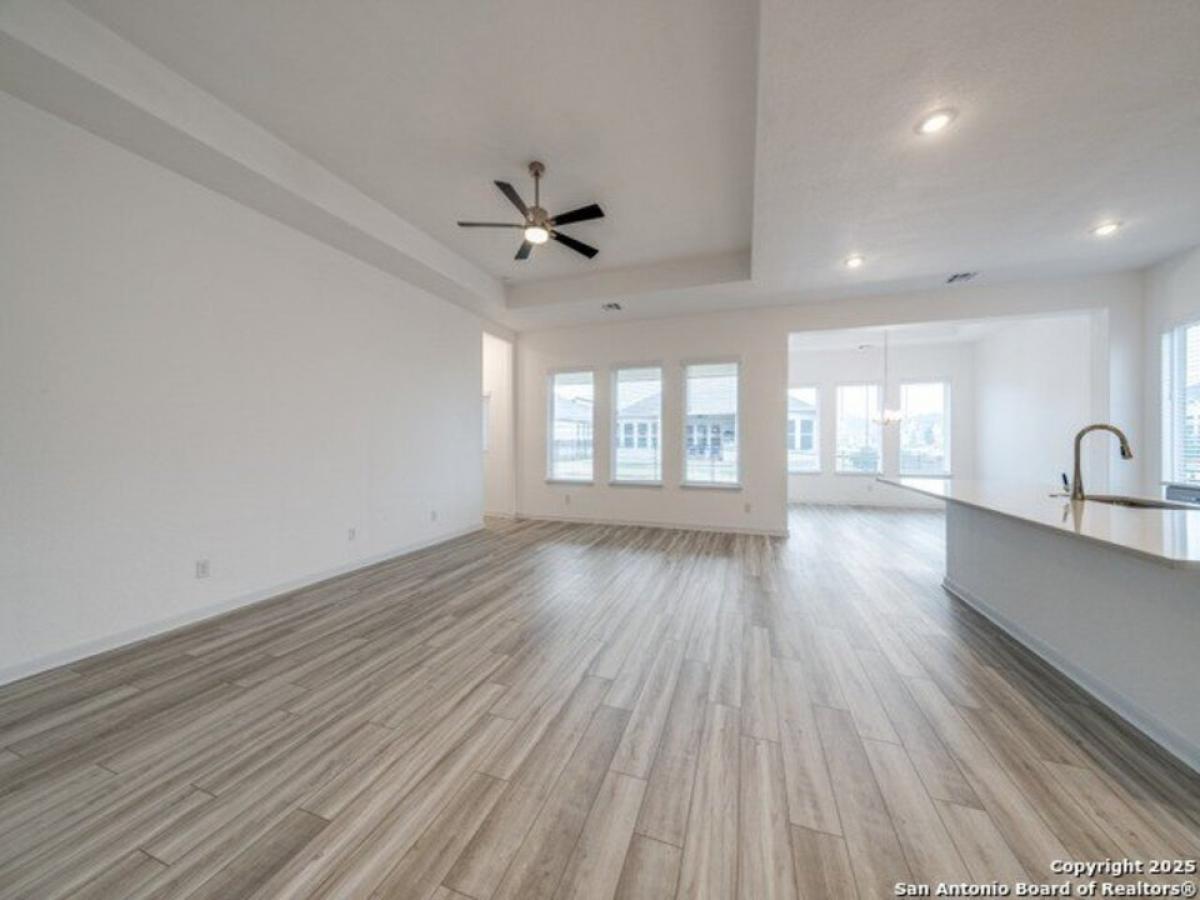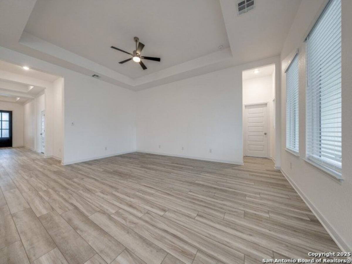 Beautiful curb appeal describes this absolutely stunning home featuring quality finishes amp; numerous upgrades throughout. The study w/glass French doors amp; a private guest bedroom suite flow off the 32-foot dramatic entry with dual-coffered ceilings.The chef#039;s kitchen has upgraded cabinetry, gas cooking, oversized island, quartz countertops, fabulous pantry, and contemporary design backsplash. Luxury vinyl flooring is throughout the main living areas.The primary bedroom is attached to a spa-like bath with an oversized designer shower w/2 showering areas. Oversized corner lot w/ wrought iron fencing amp; nice landscaping. The covered patio is perfect for family gatherings.