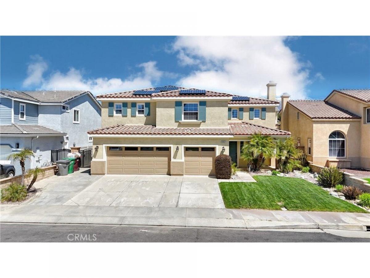 Welcome home to Midnight Sun Drive, located in the Sundance community of Beaumont! This absolutely stunning pool home features: Almost 3,300 sf. of living space; 5 bedrooms (1 downstairs, currently used as an office and has built-in desk/shelving) and 3 full bathrooms (1 downstairs); Formal living room with tall ceilings, custom fireplace with accent stone, hardwood flooring, custom window treatments, and an abundance of natural light; Down the hallway is the formal dining room, kitchen with breakfast nook, and main living room; The kitchen has stained wood cabinetry, quartz counter tops, designer tile backsplash, hardwood flooring, stainless steel appliances/sink, pantry, center island, French doors leading out to the patio, and is open to the main living room; The main living room has beautiful white built-in entertainment center and prewired surround sound in the ceiling; Head upstairs to find the bonus/game room, 3 more guest bedrooms, full guest bathroom, laundry room, and primary suite; Primary suite is spacious with window shutters, dual closets, dual sinks, bathtub, and shower. Interior bonus features include: Custom large plank hardwood floors, upgraded carpeting, recessed lighting, designer light fixtures, custom wall accents, and more. Outside features: Custom in-ground swimming pool/spa, artificial turf, alumiwood patio cover, stamped concrete, wrought iron gates/dog run, block retaining walls, vinyl fencing, and more! 3-car finished garage has storage shelving, epoxy flooring, additional lighting, and automatic garage door. Bonus...SunRun solar system helps keep electric costs low! Come and see this show stopper today, you won#039;t be disappointed!