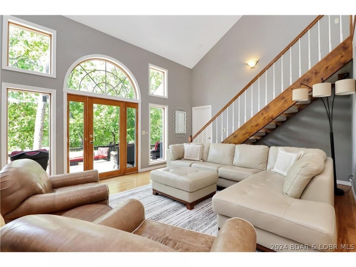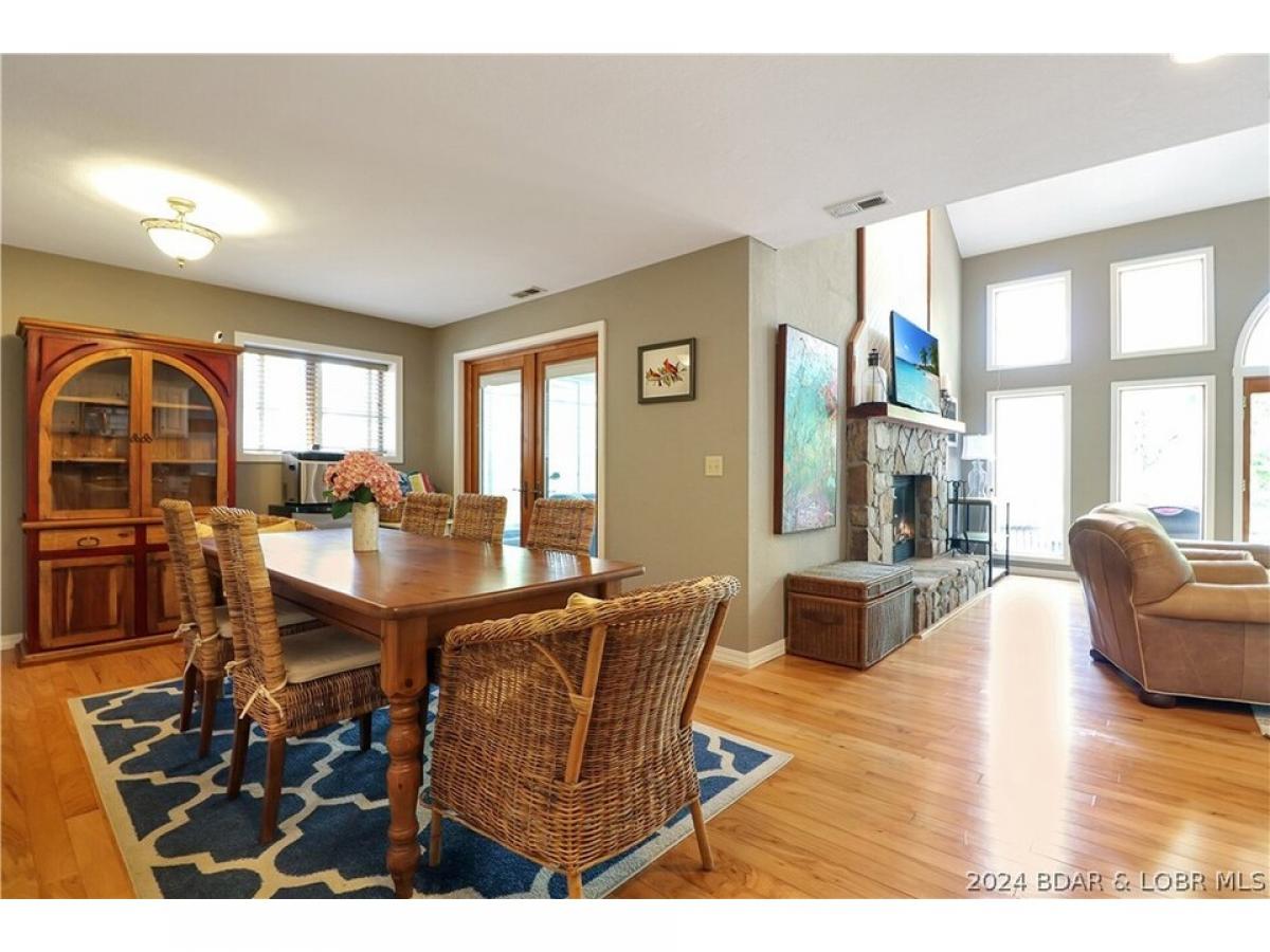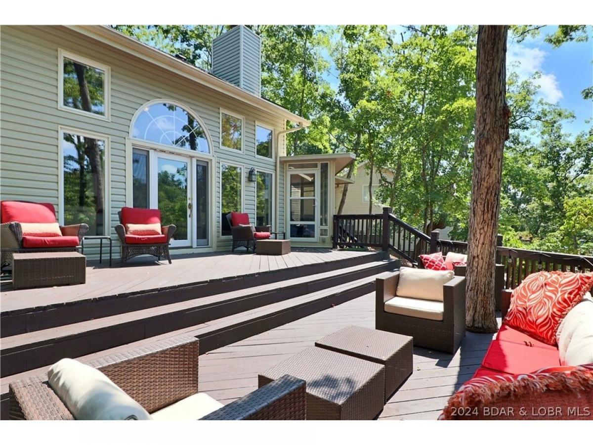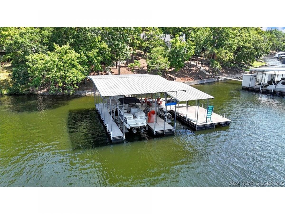 Amazing vacation or full time home that has a gorgeous 110' of cove protected, exceptionally deep water for the best in relaxation and dock activities with the kiddos. All the dock toys are included - kayaks, water board, etc - and even has a fresh water shower to rinse off after a lazy float or swimming activity. The 16x42 boat slip has been filled in to accomodate a smaller boat and hoist. The home is ideal for lake living with a reverse floorplan which encourages the best lakeside activity. Additional features - real hardwood floors, vaulted ceilings, updated kitchen and wet bar, beverage and wine fridge plus portable ice maker, wood burning fireplace and a lovely furniture package. What you is what you get - check out the inventory. Bring your toothbrush and start enjoying this sparkling clean home today. The best amenity package at the Lake with launch ramps, tennis and pickleball, indoor and outdoor pools, playgrounds and fishing lakes. New roof, new water heater. Don't let the driveway alarm you - it is much easier to back into the garage and pull out but I have done it both ways with no problems.
