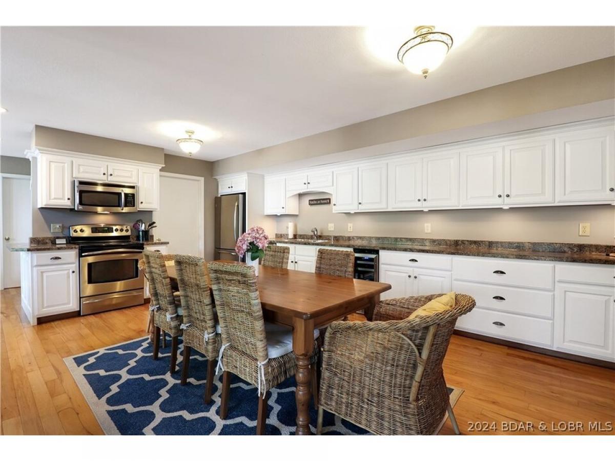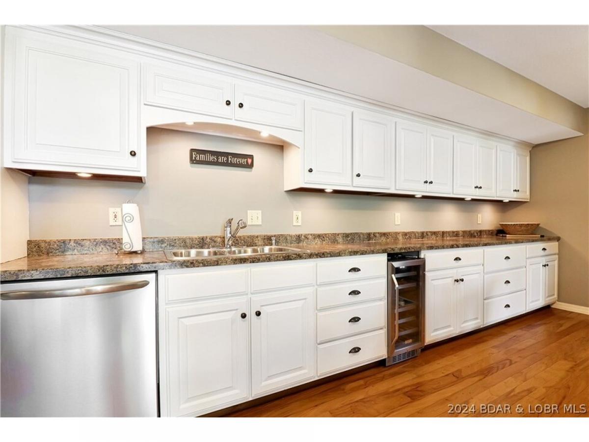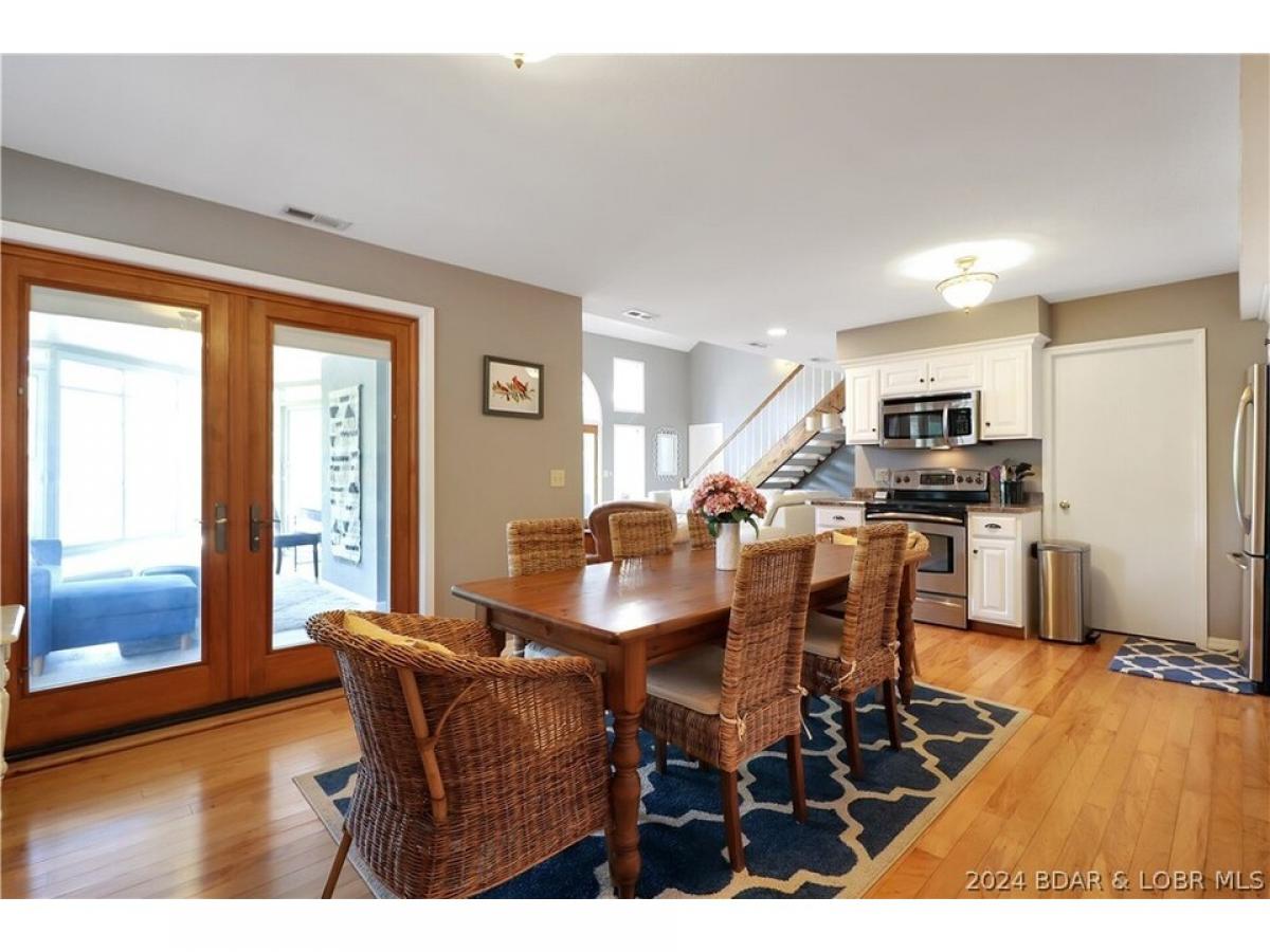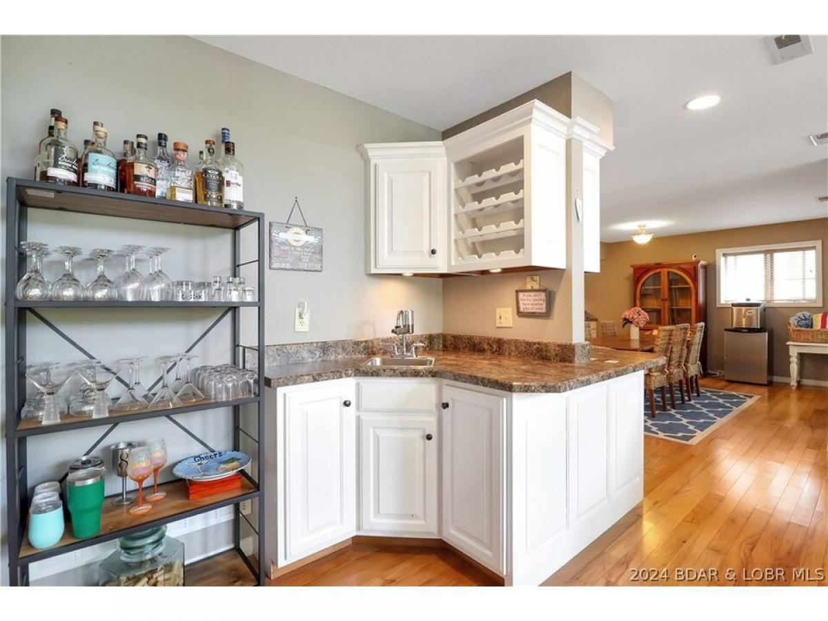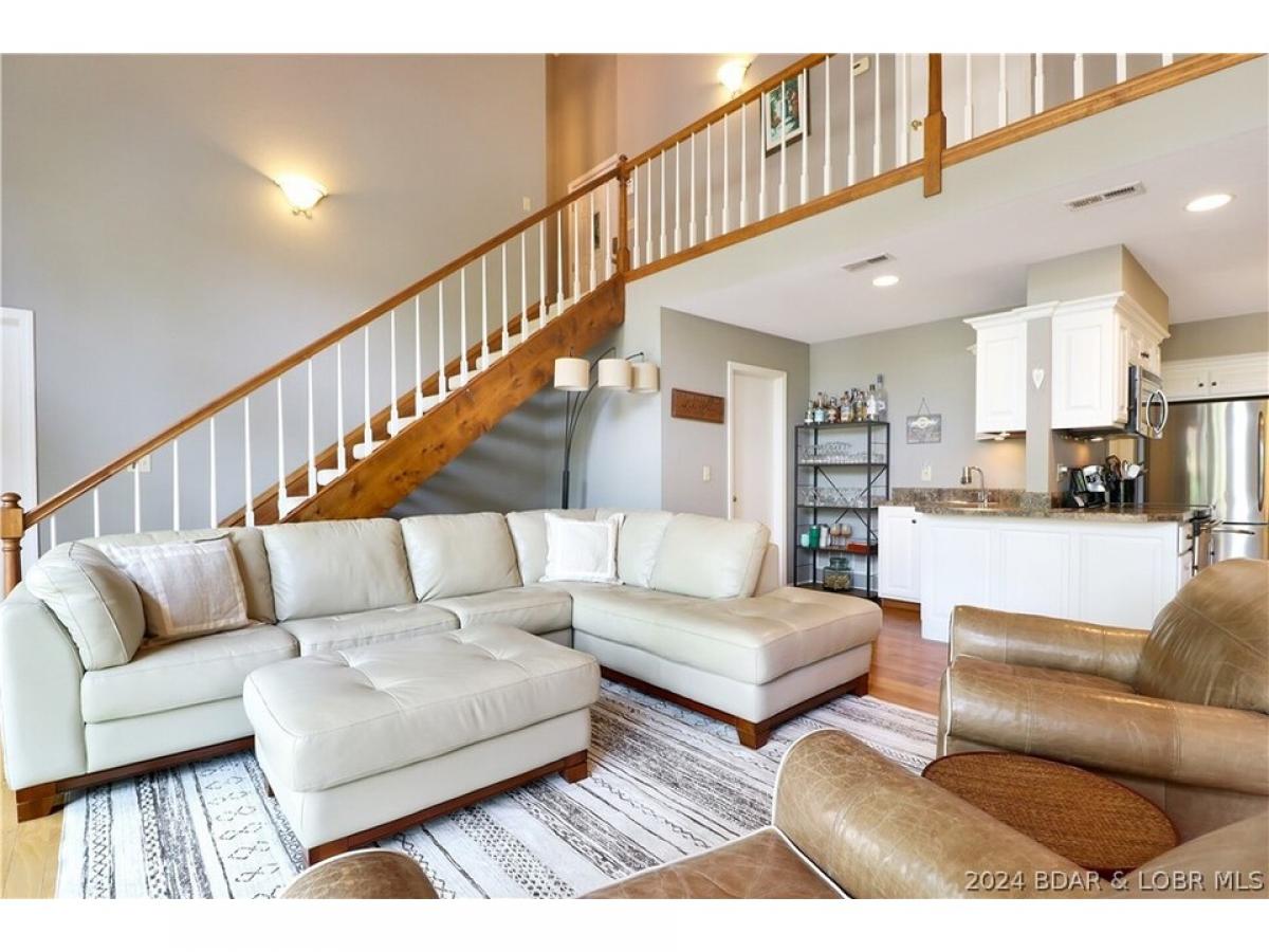 Amazing vacation or full time home that has a gorgeous 110' of cove protected, exceptionally deep water for the best in relaxation and dock activities with the kiddos. All the dock toys are included - kayaks, water board, etc - and even has a fresh water shower to rinse off after a lazy float or swimming activity. The 16x42 boat slip has been filled in to accomodate a smaller boat and hoist. The home is ideal for lake living with a reverse floorplan which encourages the best lakeside activity. Additional features - real hardwood floors, vaulted ceilings, updated kitchen and wet bar, beverage and wine fridge plus portable ice maker, wood burning fireplace and a lovely furniture package. What you is what you get - check out the inventory. Bring your toothbrush and start enjoying this sparkling clean home today. The best amenity package at the Lake with launch ramps, tennis and pickleball, indoor and outdoor pools, playgrounds and fishing lakes. New roof, new water heater. Don't let the driveway alarm you - it is much easier to back into the garage and pull out but I have done it both ways with no problems.