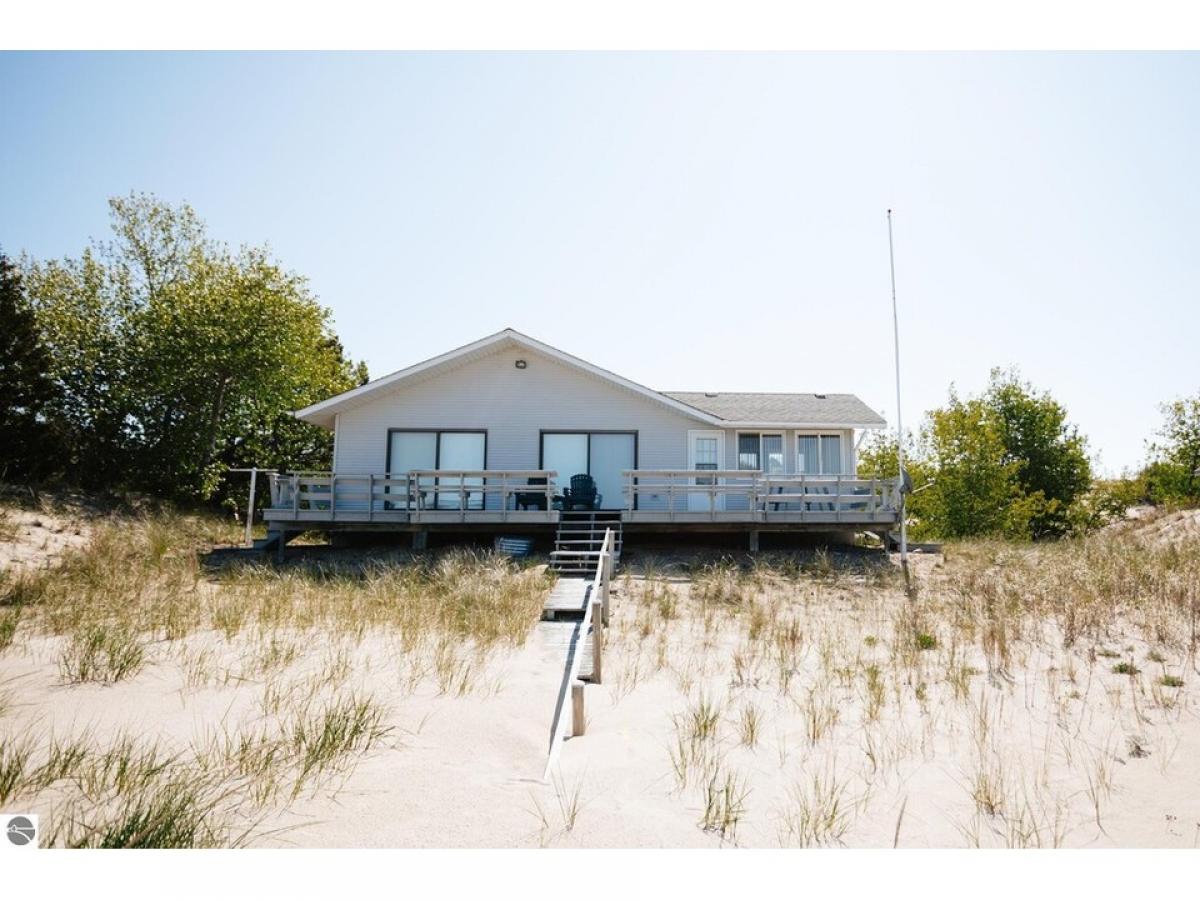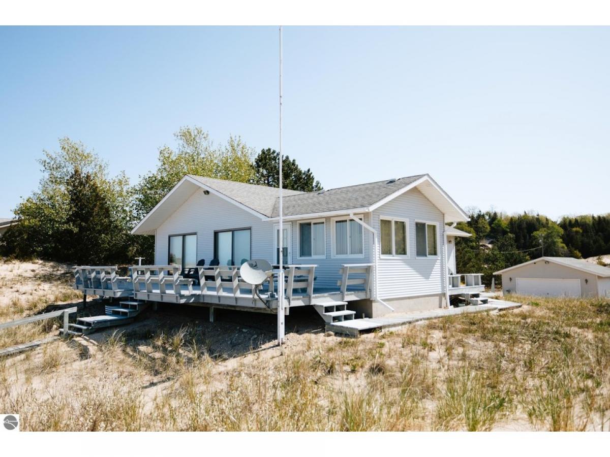 SPECTACULAR VIEWS will be yours to enjoy with your morning coffee from this newly listed home on the sugar sand shores of Lake Michigan. Rarely do cottages become available on Cathead Bay. This is truly an “Up North Cottage” The secluded “Clipper Cove” jewel will welcome you and your family to premier lakefront living. A cozy cottage with a heated sun room and great room (fully furnished) surrounded by expansive windows for stunning views. Fully furnished with 3 bedrooms, 2 baths and laundry nook. A charming kitchen with island is fully furnished. An added bonus of a full basement and work bench area and large storage area of which may be converted to an additional play area for the kids or grandkids. The basement door allows for easy access to the driveway. The oversized, detached 2-car garage provides plenty of storage for kayaks and your water toys. An outside deck off the great room to enjoy the beautiful water views, perfect for hosting your next barbecue with family and friends. This is the place you will create new family traditions and memories from your piece of “up north” paradise.