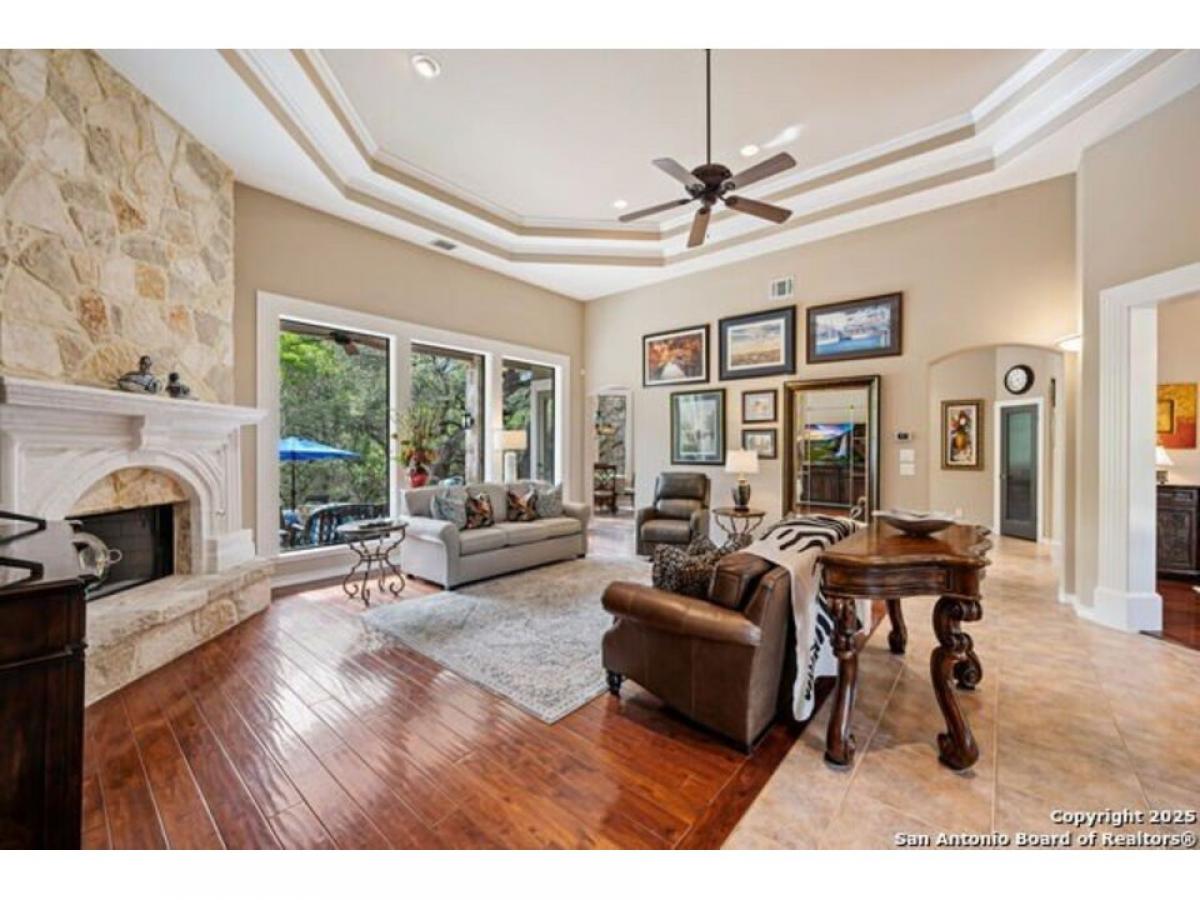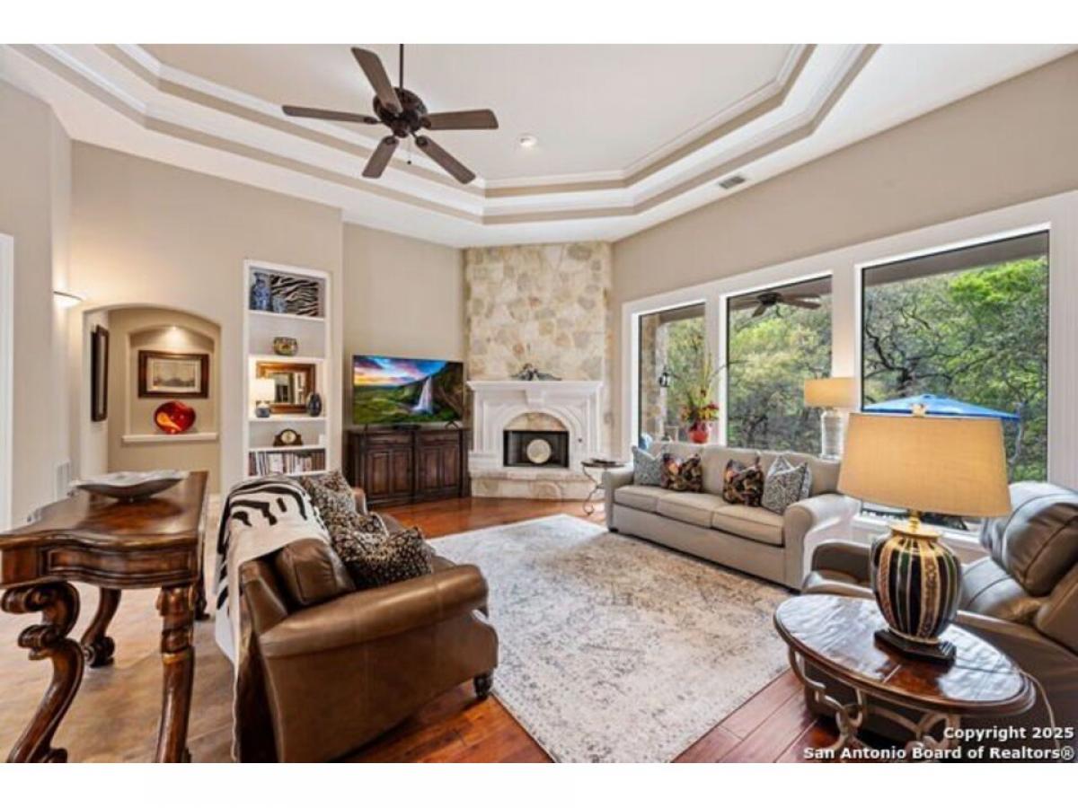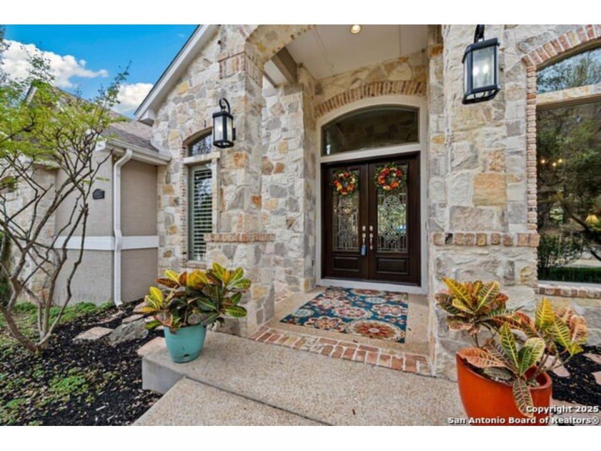 Nestled in the serene, prestigious gated subdivision of Los Reyes Canyons, this stunning retreat backs up to the expansive Government Canyon, offering breathtaking views and ultimate privacy. This beautifully designed home features soaring high ceilings, abundant natural light, and an open-concept layout that exudes elegance. The gourmet kitchen is a chef#039;s dream, boasting two spacious islands, top-of-the-line appliances, custom cabinetry, and an exquisite butler entertaining area. A dedicated beverage center adds both convenience and sophistication, making it perfect for entertaining. Enjoy breakfast with a view from the expansive custom seamless windows, perfectly framing the picturesque canyon. A private formal dining room provides the perfect setting for dinners and special occasions. Relax in front of the striking rock fireplace, or step outside to the peaceful patio, where you can savor your morning coffee while embracing the beauty of nature. The luxurious owner#039;s retreat boasts two separate vanities, an oversized walk-in shower, and a soaking tub, creating a true spa-like experience. Generous walk-in closets provide ample storage. The split floor plan includes two spacious ensuite bedrooms, ensuring comfort and privacy. A versatile flex room offers endless possibilities and is ideal for a home office, family room, creative space, or bedroom. Just minutes away from top-rated schools, vibrant shopping, and convenient access to 1604 and IH-10, this home offers both tranquility and connectivity. Experience the perfect blend of comfort and nature in this exceptional home!