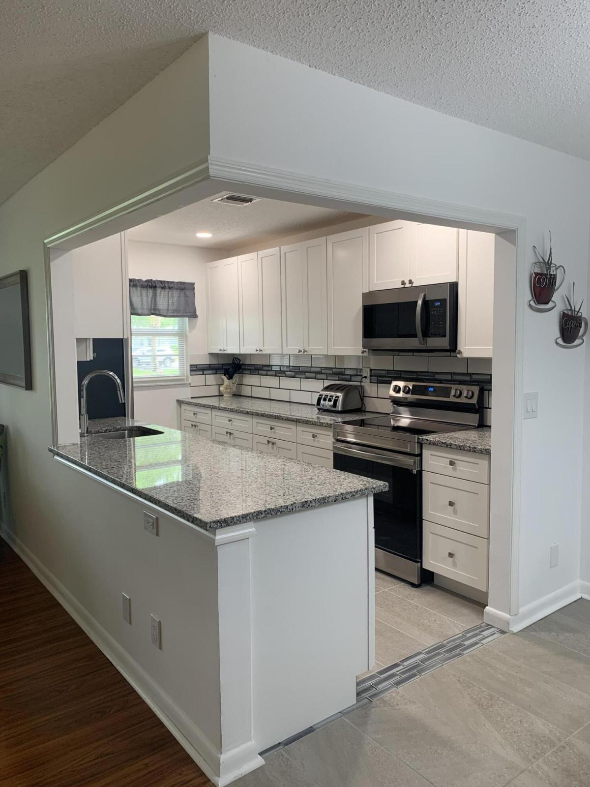Beautifully updated 55+villa, in a quiet area of High Point. Hurricane impact windows are throughout the home. Newly remodeled open kitchen with granite counters, white cabinets, new stainless appliances, plus new outlets and switches throughout the home. Two full baths with new vanities, tile, and glass enclosed showers. All new porcelain and waterproof laminate flooring. Spacious Great room has sliders to a Florida room/den or 2nd bedroom for guests if needed. Also comes furnished, new roofs, and freshly painted inside and out. Close to shopping, beaches, and beautiful downtown Delray. Come enjoy the Florida lifestyle. You won't be disappointed.
