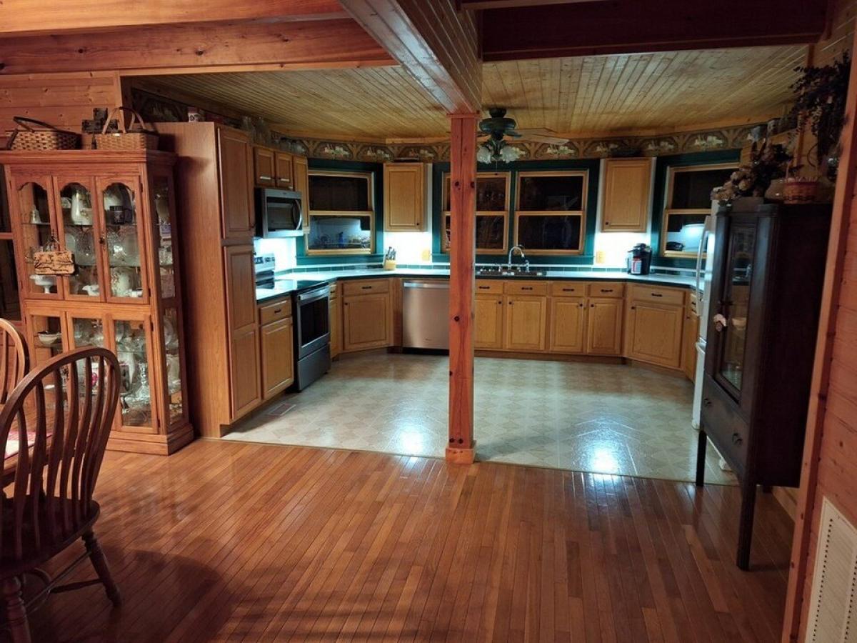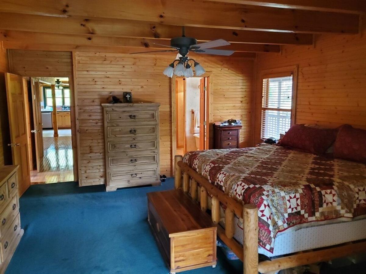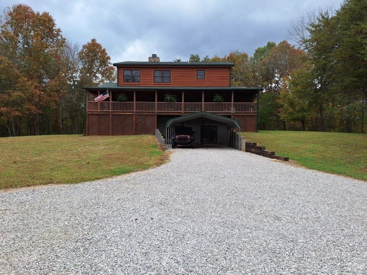 This log cabin on 20+ acres in rural Tennessee is 20 minutes from Sparta, and 1.5 hours from Nashville, Knoxville, and Chattanooga, with Murfreesboro 45 minutes away. It has 3 bedrooms, 2 bathrooms, and 3740 square feet. The sunroom overlooks wild turkeys and deer. Features include a finished basement with a family room, a living room with a wood-burning fireplace, a kitchen with custom cabinetry, and a wrap-around porch with a swing. The main level has the primary bedroom with an en-suite bathroom and large closets. The upper level offers 2 more bedrooms, a full bath, and a loft. A shop with electricity is included to store your equipment. Two boat ramps on the Caney Fork River, Rock Island State Park, and Center Hill Lake are 5 minutes away.