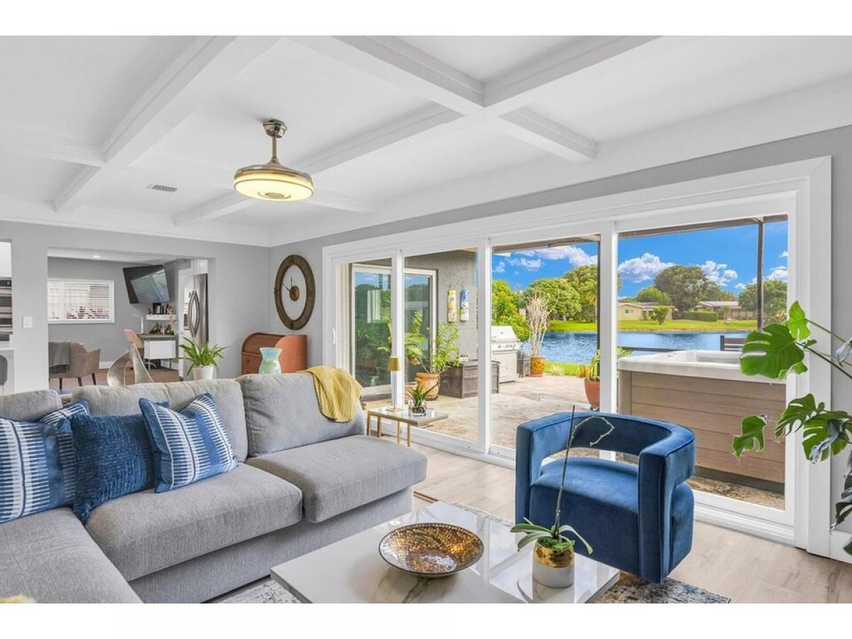 WATERFRONT - Pet Friendly, Fully RENOVATED Home in 2023 with 2 bedrooms, 2 full bathrooms, private back yard with large patio, attached garage and new Impact windows. BRIGHT amp; WHITE kitchen with Stainless Steel Kitchenaid appliances with large countertop with plenty of seating for guests. The large patio with hot tub spa overlooking the large yard and water with plenty of room for the outdoor grille. 2 master bedrooms with walk-in closets and en-suite full bathrooms on opposite sides of the home for privacy.Roof replaced in 2017. Tankless water heater installed in 2023. Coco Wood Lakes is a +55 community with low HOA fee that include a community pool, NEW spa, fitness center, billiard room, theater, pickleball and more! Only 5 miles from the beach amp; restaurants on Atlantic Ave