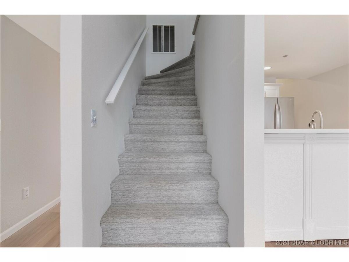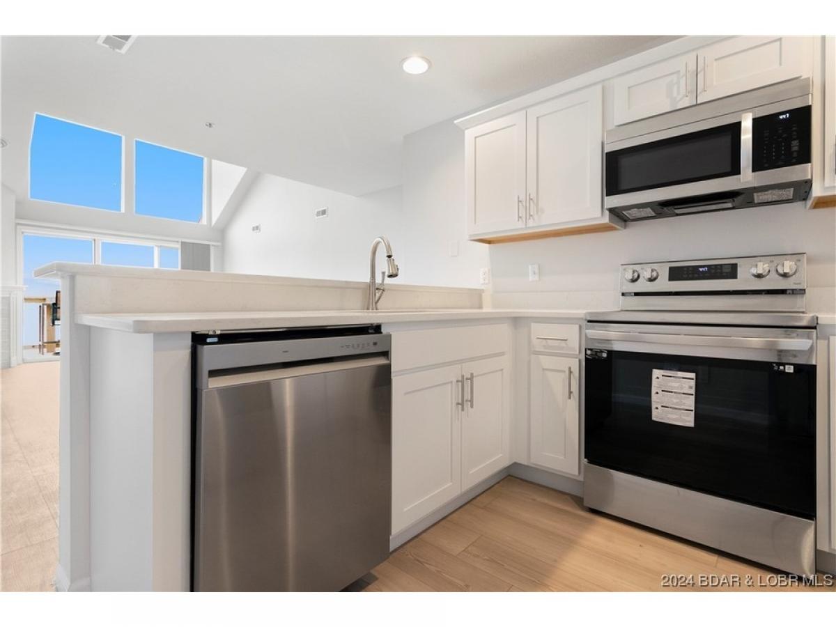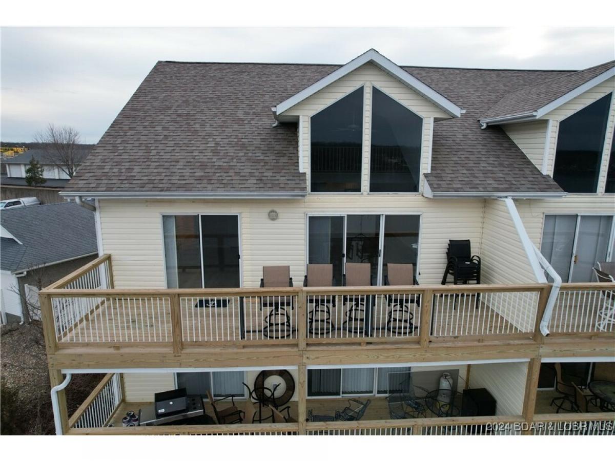 The Ledges is well known for being a complex that has offered great success with rental history in the past. The current owner does not rent this unit but it has potential to be an amazing vacation rental. This is a true 4 br, 3 bath unit with an additional loft serving as a family room. You don't find 4 bedroom condos very often, especially perfectly located at the 20 mm in the middle of Osage Beach. The uniqueness of this unit doesn't stop there. The unit was flooded in the frozen destruction of 2022 and thus has been completely remodeled. Professionally mitigated, cleaned and redone from top to bottom. New flooring, drywall, paint, cabinets, counters, & appliances all new in 2023/24. Updated with wonderful color choices, luxury vinyl flooring, stainless appliances & even quartz counter tops. With soaring vaulted ceilings, 3 bedrooms on the main level and the 4th bedroom upstairs this top floor condo can sleep a ton! I haven't even mentioned the brand new deck where one can sit and enjoy some of the best views at Lake of the Ozarks. Also included is a 12X40 boat slip which can be very hard to come by at The Ledges!