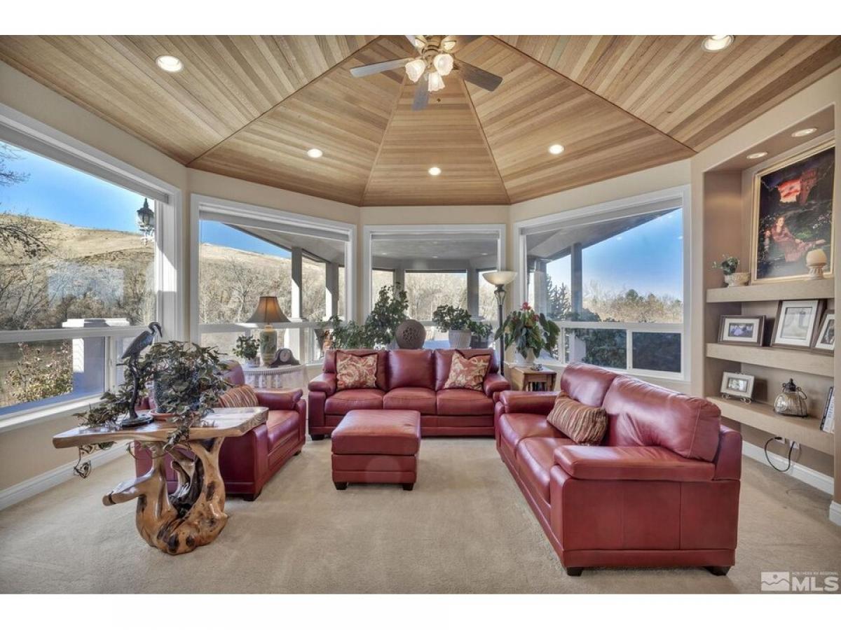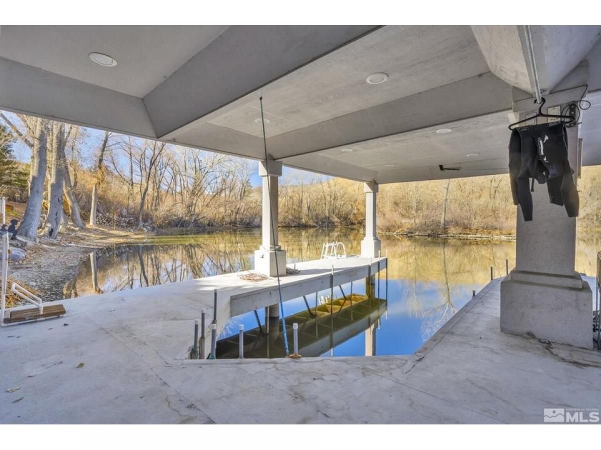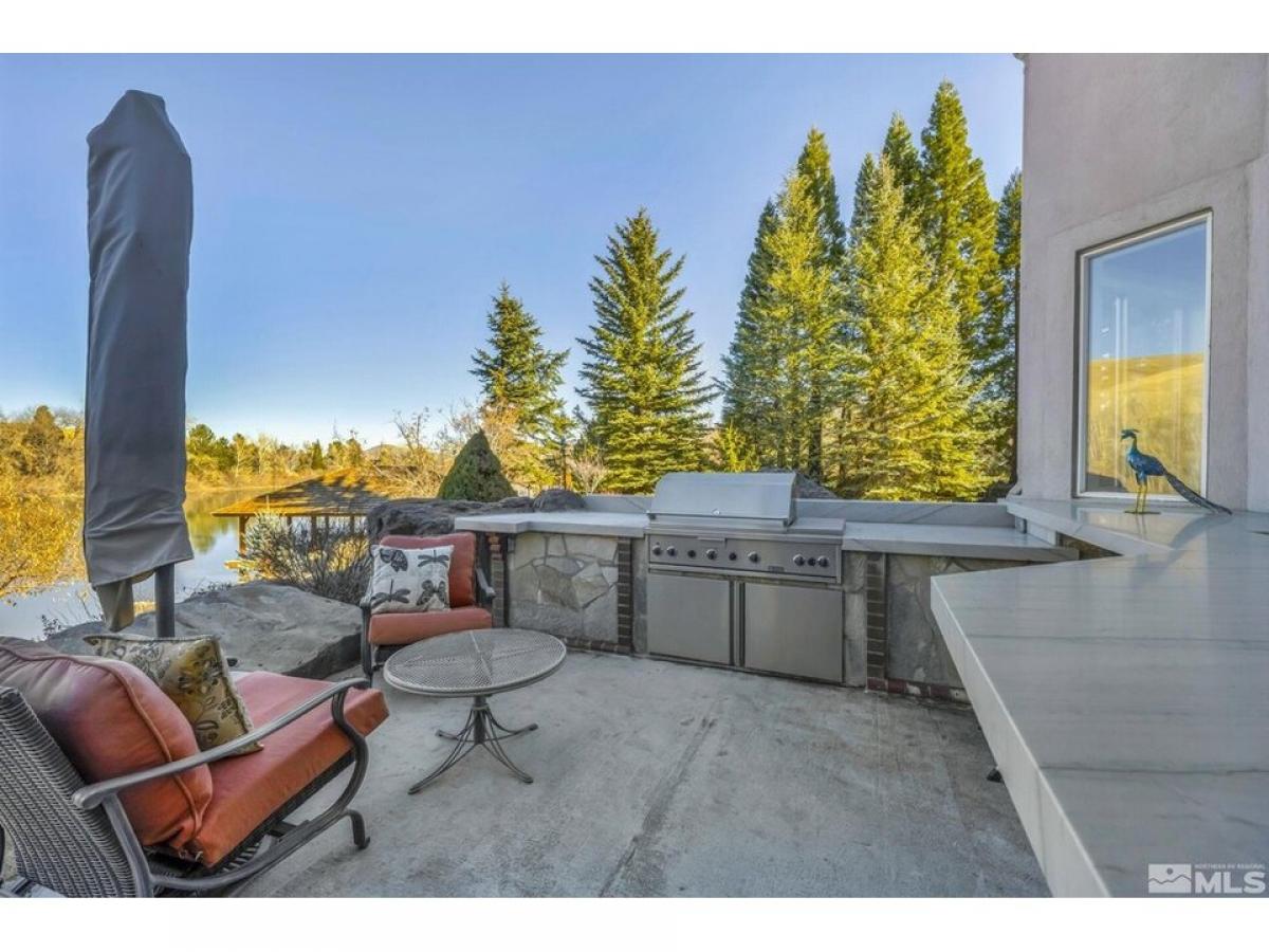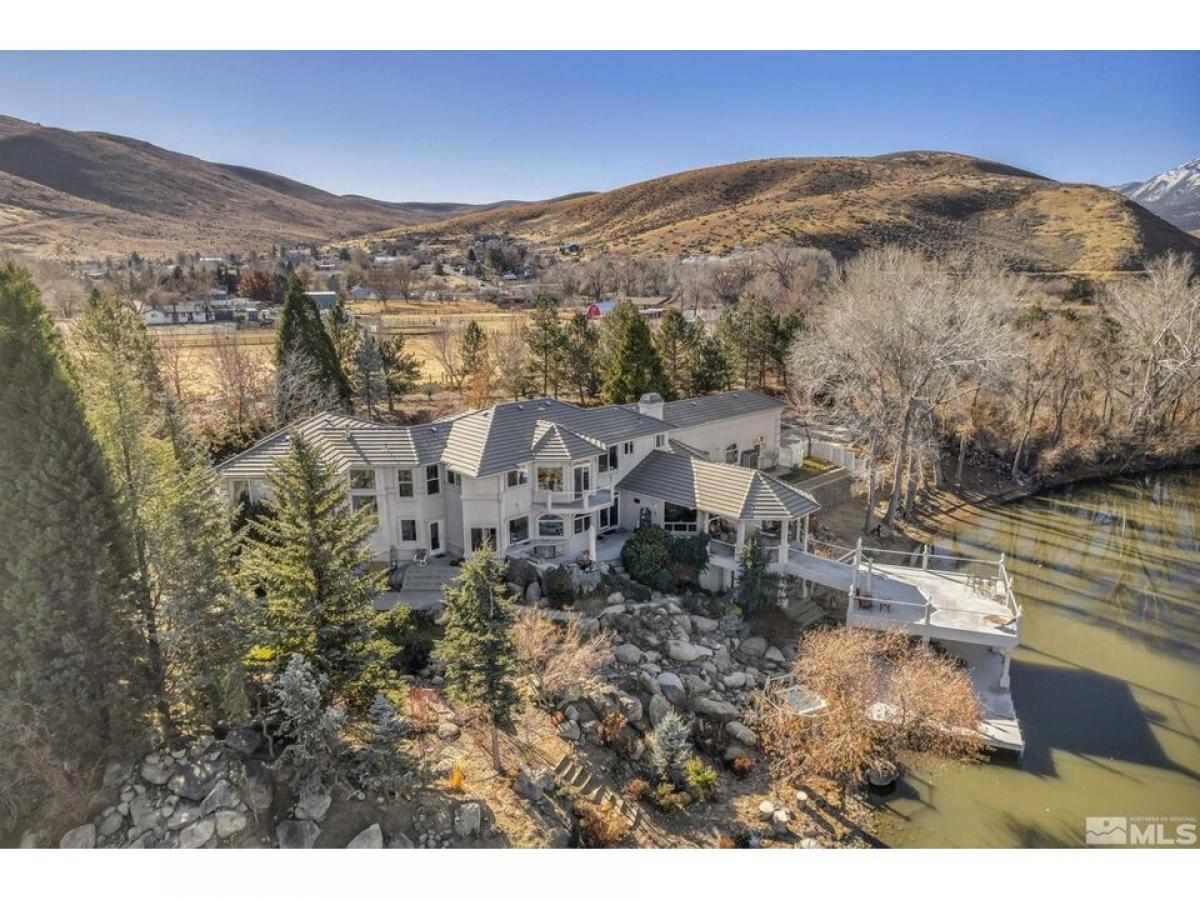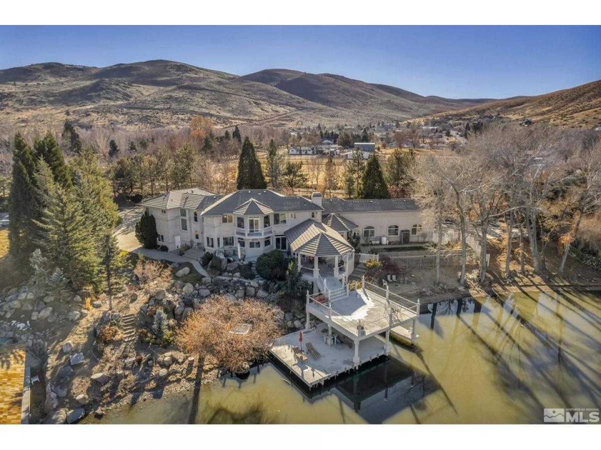 Custom waterfront home on private water ski lake with a dock, boat slip and boat hoist. Only 10 properties in this exclusive gated community! Beautiful built-in BBQ space overlooks mature landscaping and the lake, and allows easy access to the outdoor dining space which is attached to the dock where you can see views of Mt Rose. An upper garden includes covered and raised garden beds, grape vine arches, a variety of fruit, and a potting shed. Inside you will find stunning views all around.