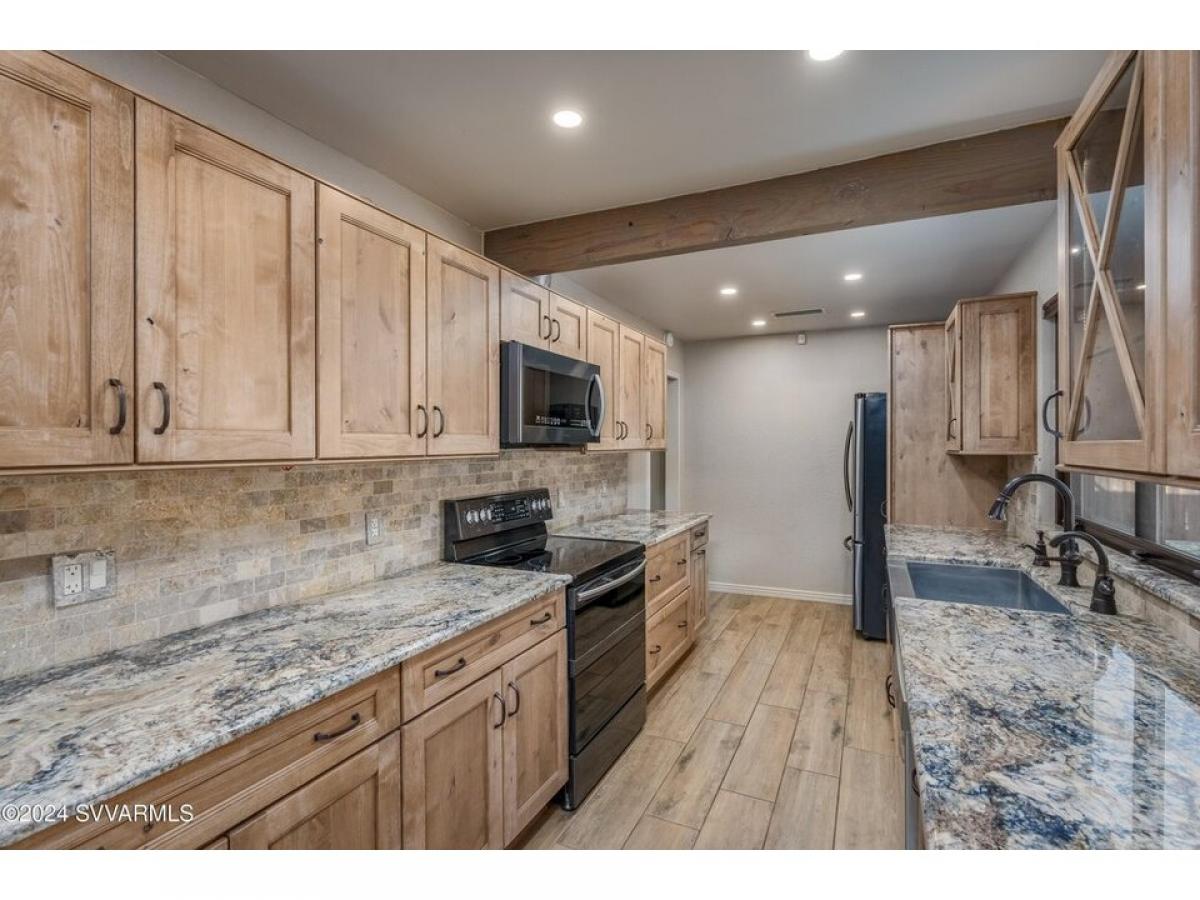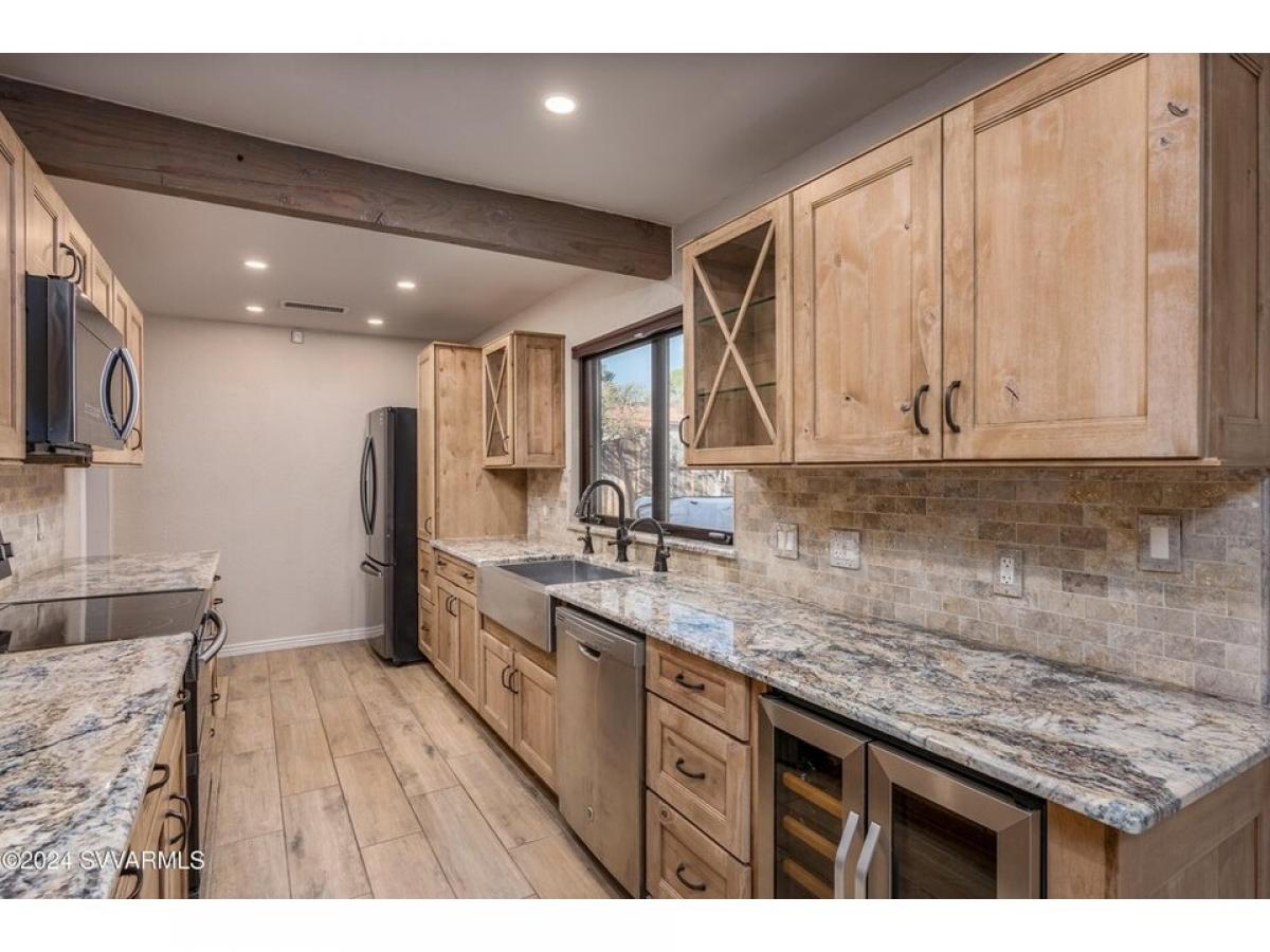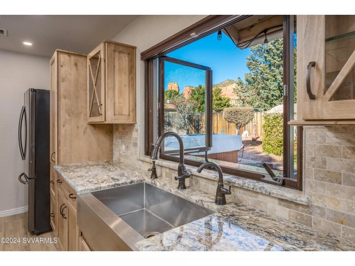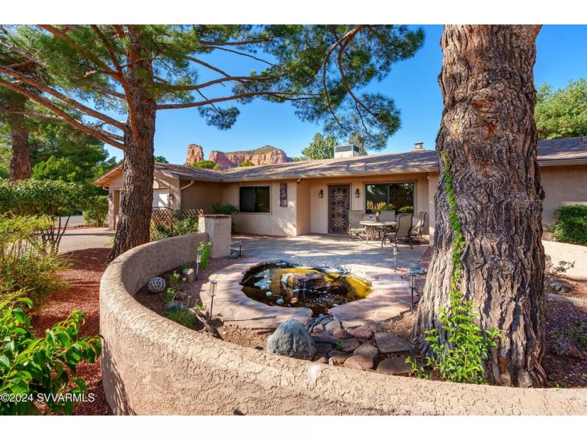 Recently remodeled 2 bedroom + Arizona Room Sedona home located in the quiet, low-key Village of Oak Creek complete with timeless upgrades and modern style and a new roof in 2023. Minutes from national forest trails, golf courses, restaurants and stores, this ideal home is in impeccable condition and features incredible outdoor space, including a large front courtyard with pond, to enjoy Sedona#039;s four mild seasons. The fully remodeled modern kitchen features stainless appliances, top notch granite countertops, modern cabinetry, farmhouse sink and serving window to outdoor entertaining area. A dual split primary bedroom floorplan is an ideal layout for guest privacy. Newly remodeled primary bath and hall bath are among the many features of this home.