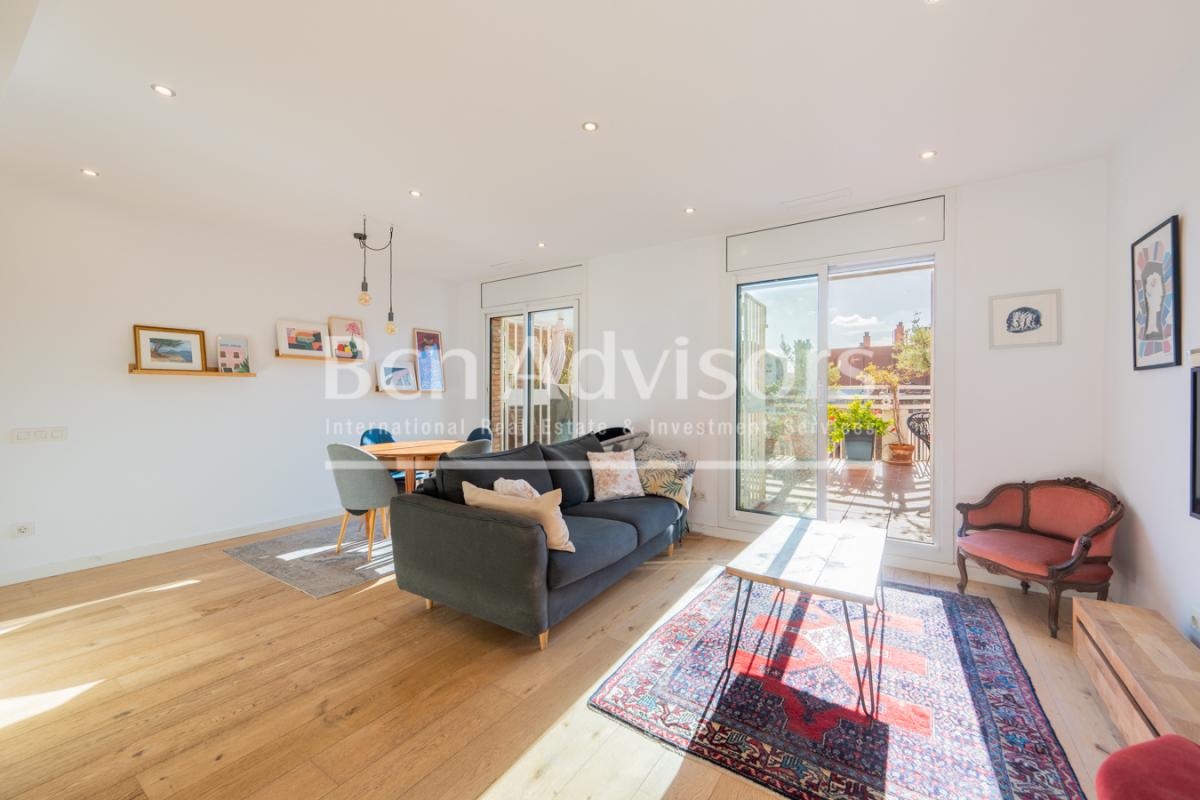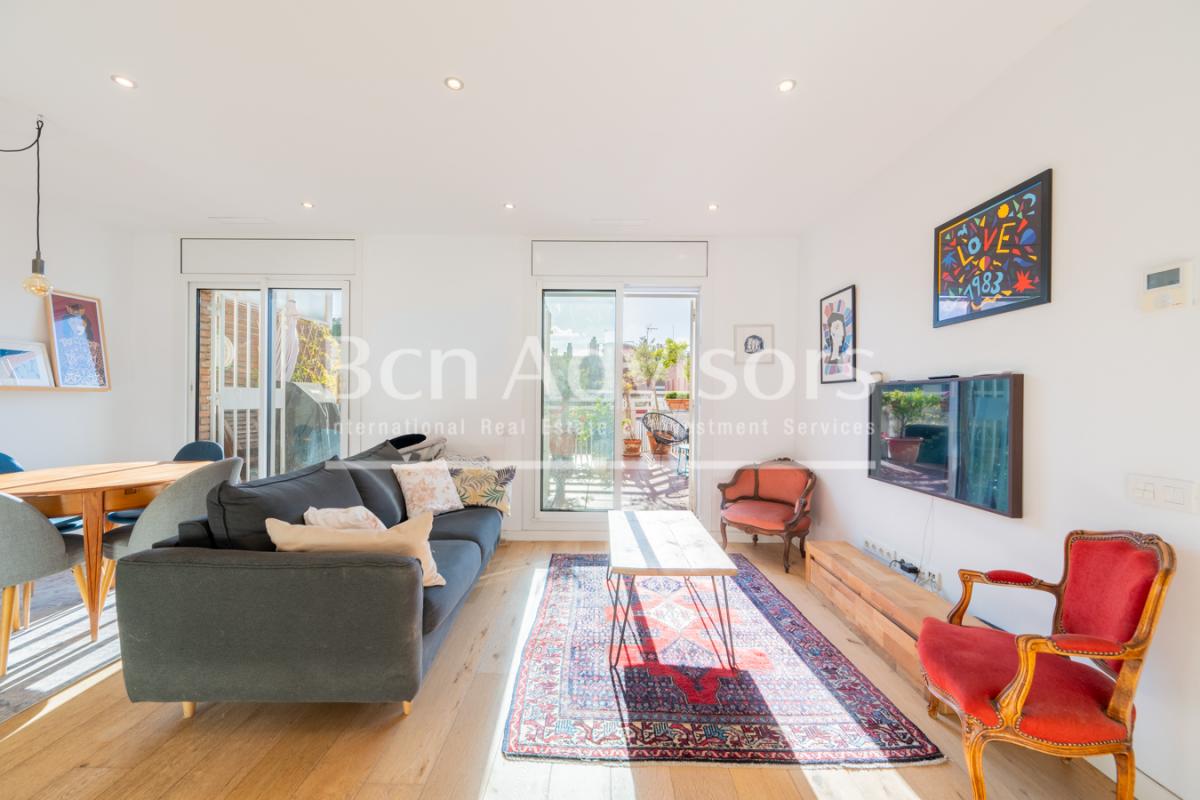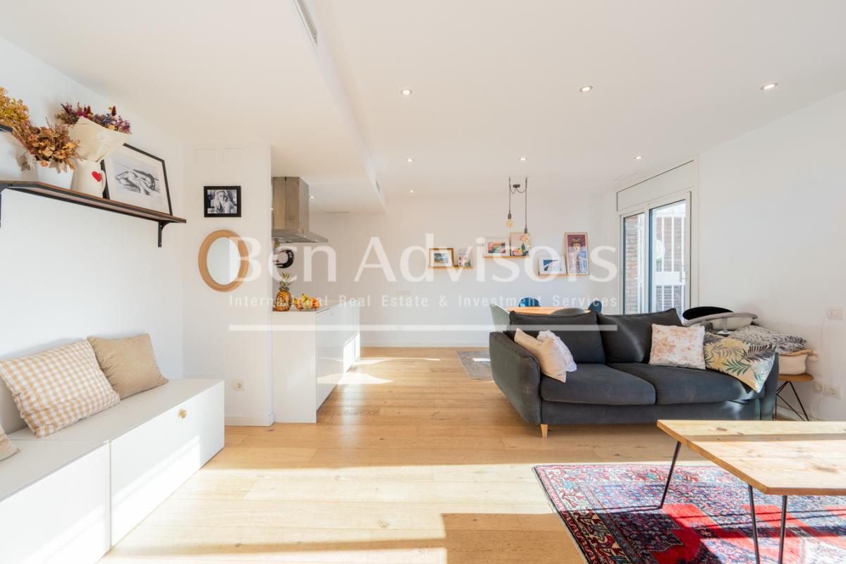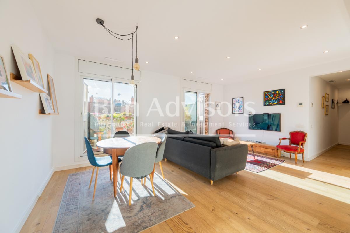 This penthouse with 100 built interior sqm and a 24 sqm terrace off the living room enjoys an enviable location, just a few steps from Avenida Diagonal, Paseo Sant Joan and the Gracia neighbourhood. It's one of the few opportunities on the market to enjoy a penthouse in Eixample's right side, surrounded by all the amenities you need in your daily life.The penthouse is on the ninth floor of a building with two lifts and offers amazing views of the entire city, the sea and the mountains. The living-dining room with open kitchen is extremely bright, creating a wonderful feeling. It has direct access to the terrace, with an excellent south-facing orientation that guarantees plenty of sun throughout the day. It's the perfect place to meet up with friends and family, eat, have a drink or simply relax and enjoy Barcelona's pleasant Mediterranean weather.