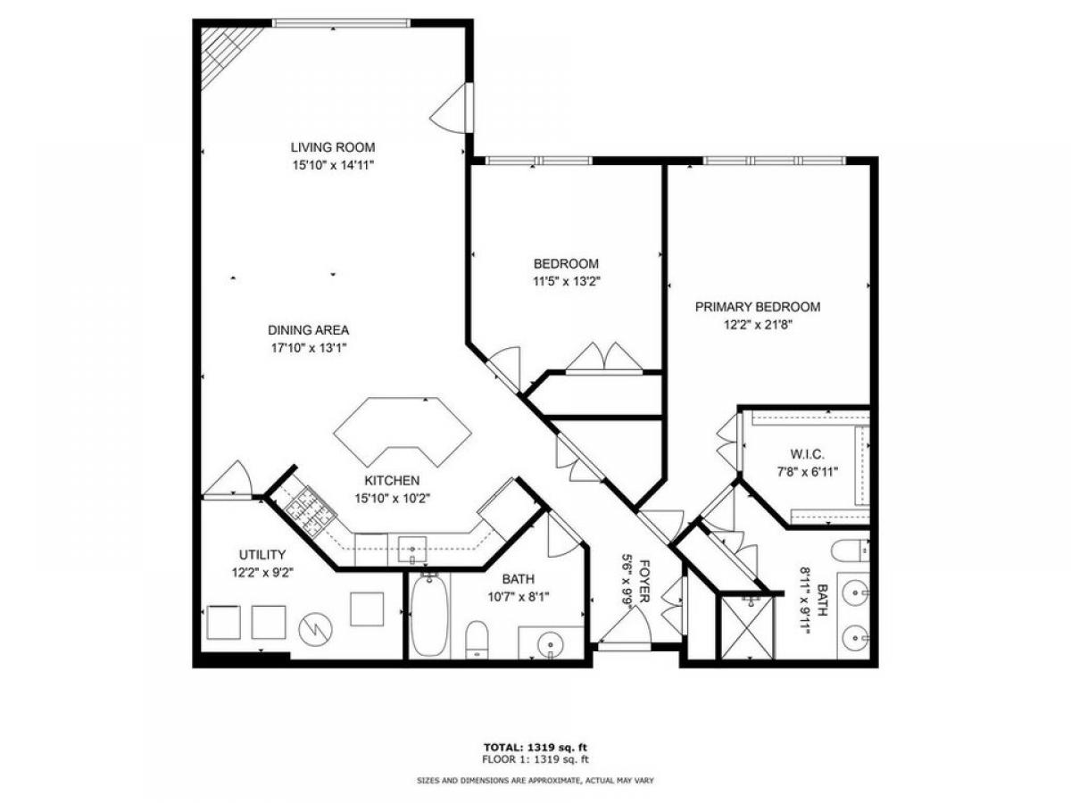 Come see this garden style/ one-level condo just one mile walk to downtown Portsmouth! Features include two bedrooms, two baths, open living area, and separate utility room w/laundry. The primary bedroom has a walk-in closet and en-suite bath. Garage parking and storage underground. The building includes buzz-in secure entry, elevator to garage, well established and professionally maintained association.