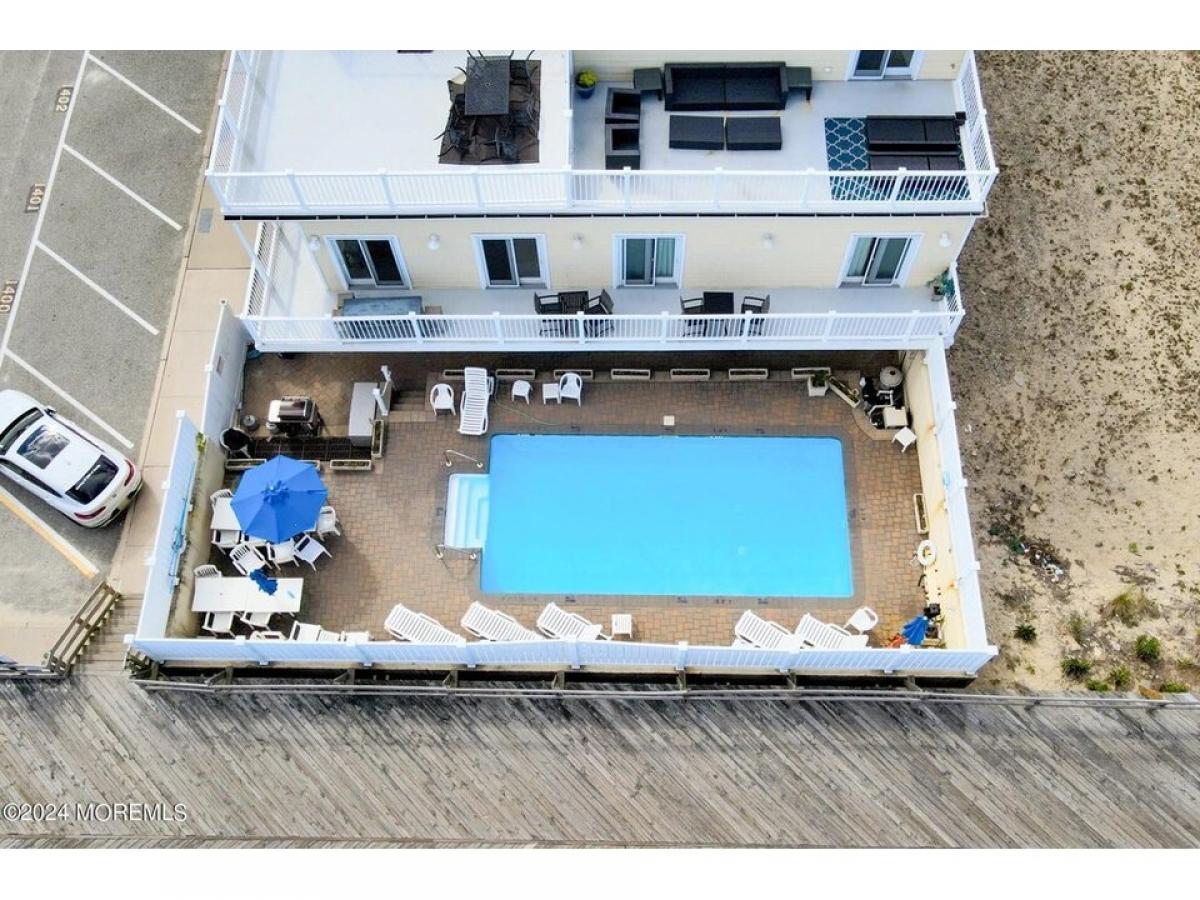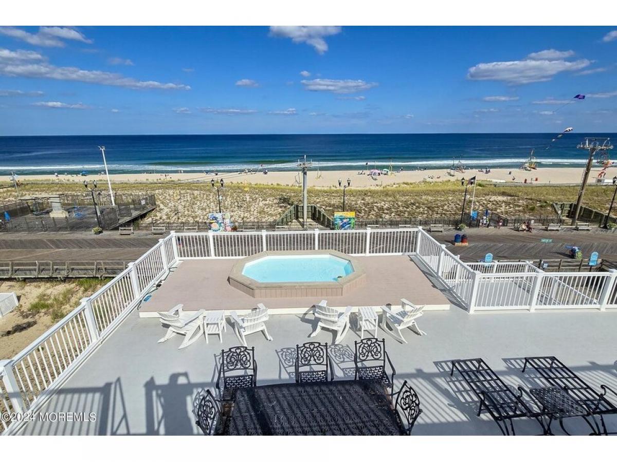 Definitely, out of the ordinary, this Penthouse is extraordinary! The oversized windows and many sliders offer unparalleled ocean views from every room and bay views from the rooftop deck. A modern and chic kitchen with a center island and high-end appliances is a lovely gathering space to eat, drink, and be merry. The spacious master bedroom suite offers an equally spacious walk-in closet, ensuite bathroom with stone walls, jetted tub, walk-in shower, and double sinks. Three more roomy bedrooms plus another exceptional bath and a half are beautiful. Last, but certainly not least, is the approximately 2,500 sq ft deck with a plunge pool for all your shore fun. Also, new dual HVAC, new decks, railings,roof, washer, dryer, amp; water heater. bath floors heated. Private PH elevator from garage.