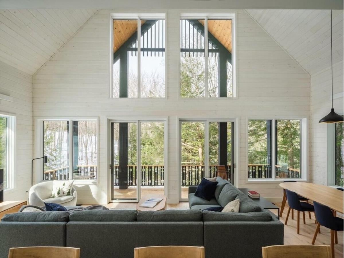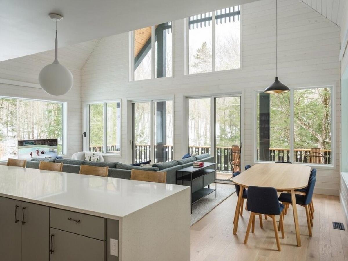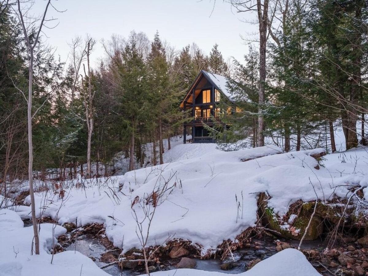 Nestled along a forest ravine known as Bear Valley, a contemporary family ski retreat on the gentle slopes of Titus Mountain Ski Center. This cedar-clad, ski-in/ski-out residence features elevated living spaces with expansive forest views through large windows, inspired by COOKFOX Architects#039; sustainable approach of blending architecture with natural landscapes. Clad in blackened cedar, the home#039;s design combines Adirondack lodge-inspired details with a modern profile. Wooden slats on the ski rack, entry porch, and balcony railings are etched with ski trail markings, while clear-coated cedar brightens eaves and porticos. Inside, lightly stained cedar walls and ceilings in the living room and kitchen add warm wood-grain texturemdash;a modern nod to classic woodland cabins. The main entry opens into the first floor, the heart of the home. Both spacious and intimate, this cedar-clad room has a double-height pitched ceiling and large windows that reveal tranquil forest views. A central kitchen with a large island divides the area between the living room and dining space. Hallways on each side lead to the central staircase and private areas, including a powder room and two bedrooms with a shared ensuite bath.The lower ski-in/ski-out level, embedded into an incline, opens to a ski path that leads to Titus Mountain#039;s Paul#039;s Way Trail. This level is designed with winter sports in mind, featuring ample storage for gear, a bathroom, laundry, and a cozy family room. Two quiet guest rooms and a shared bath sit at the rear. The upper floor is dedicated to the light-filled primary suite, featuring an ensuite bathroom, double closets, and expansive windows looking into the treetops. Reflecting COOKFOX#039;s focus on sustainability, the home#039;s design prioritizes thermal comfort and energy efficiency. A heat recovery ventilation system maintains indoor air quality, while high-performance aluminum-clad windows maximize views and meet energy standards. Extra building lot included!