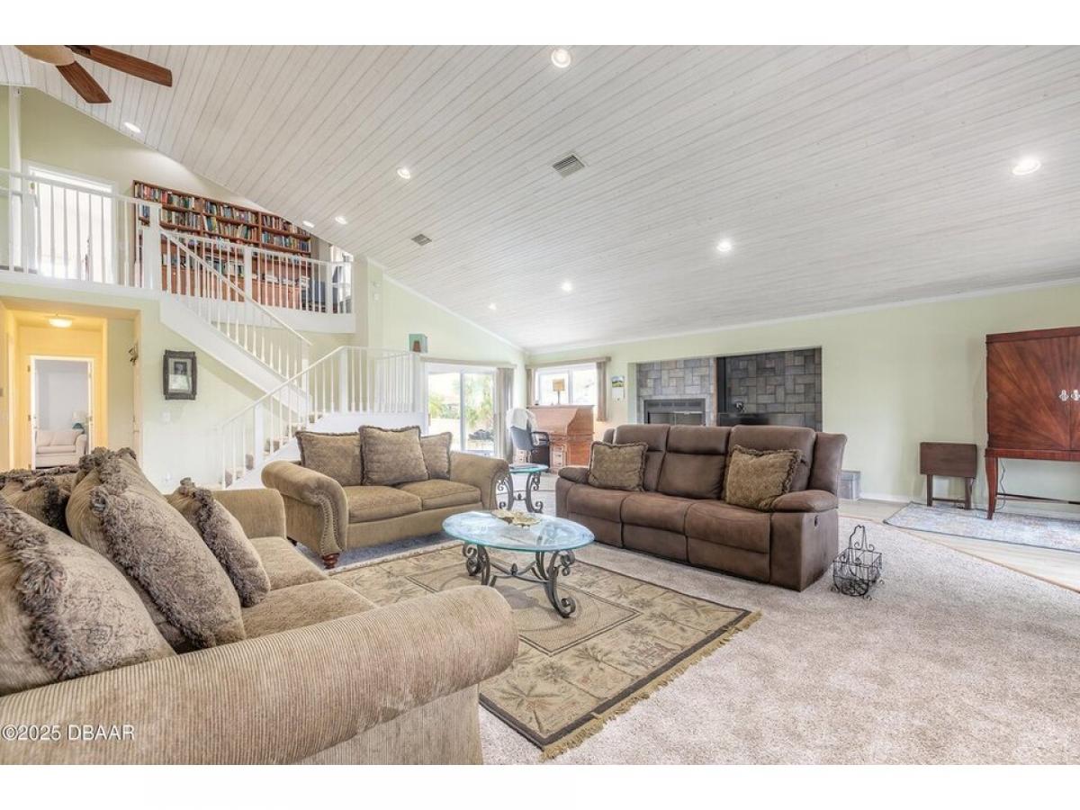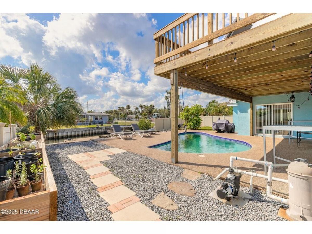 This one-of-a-kind waterfront home sits on the corner of a saltwater canal leading to the Intracoastal Waterway: Halifax River and the Atlantic Ocean. Enjoy breathtaking water views from your newly rebuilt 12#039; x 27#039; deck, overlooking the pool, canal, and Intracoastal Waterway. This property is high and dry and has never flooded, offering peace of mind in a prime location. Inside, the open-concept great room features a gas fireplace and flows seamlessly into the kitchen, making it perfect for entertaining. The spacious owner#039;s suite upstairs boasts a large bathroom, walk-in closet and direct access to the private deck just outside the suite. The loft is currently used as a library, adding charm and functionality. On the main floor, a second bedroom with its own bathroom offers convenience. That#039;s not all, the fully equipped mother-in-law suite provides versatility, with a private entrance, living area, brand-new kitchen, bathroom and bedroom, this space could serve as a one or two bedroom ADU (Accessory Dwelling Unit). French doors lead to a private brick patio, creating a peaceful retreat. For those who love their toys, this property is a car enthusiast#039;s dream, featuring an 8+ car garage with two double garage doors and three double driveways. There#039;s also legal parking for your boat, RV, or trailer behind the home facing Reef Rd, as per the City of South Daytona. A brand-new vinyl fence with gates adds privacy, and the roof is just two years old. Additional highlights include: a rebuilt dock at the canal, accommodating a 28#039; boat. new vinyl flooring, new pool pump, new plush landscaping with attention to detail, solar water heater amp; gas dryer for energy efficiency, and a freshly painted exterior. This unique waterfront property is a rare find! Whether you#039;re a boating enthusiast, looking for a multi-generational home, or need ample garage space, this home has it all. Schedule your private tour today!