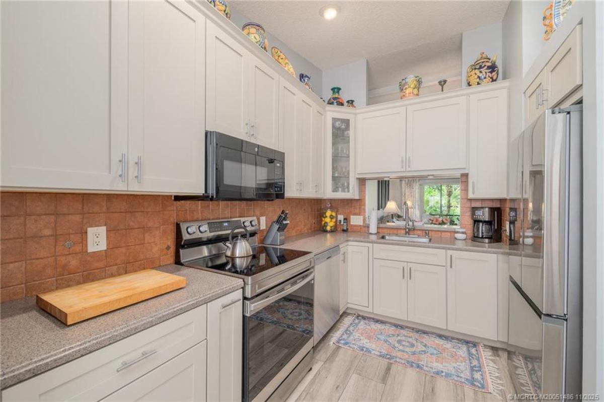 Welcome to this wеll-mаintаinеd 3‐bеd, 2-bath corner unit villа loсated in a gated community. This home offers peace of mind and a long list of updates. Inside, you'll find tile floors throughout and a thoughtfully updated interior. The kitchen was renovated in 2020 and features a new range, refrigerator, and dishwasher (2024), along with a microwave (2019). The washer and dryer (2022) and water heater and HVAC (2018) provide added convenience and efficiency. Both bathrooms were tastefully updated in 2010. Major upgrades include a new roof (2022) and new fence (2025). A new front door sconce (2025) adds a welcoming modern touch. Step outside to enjoy the beautifully landscaped backyard—a perfect retreat maintained with care by the seller. The villa backs up to a private preserve, offering added privacy. This villa is located directly across the street from community pool and spa, pickleball, and tennis courts, making it a convenient and comfortable place to call home.