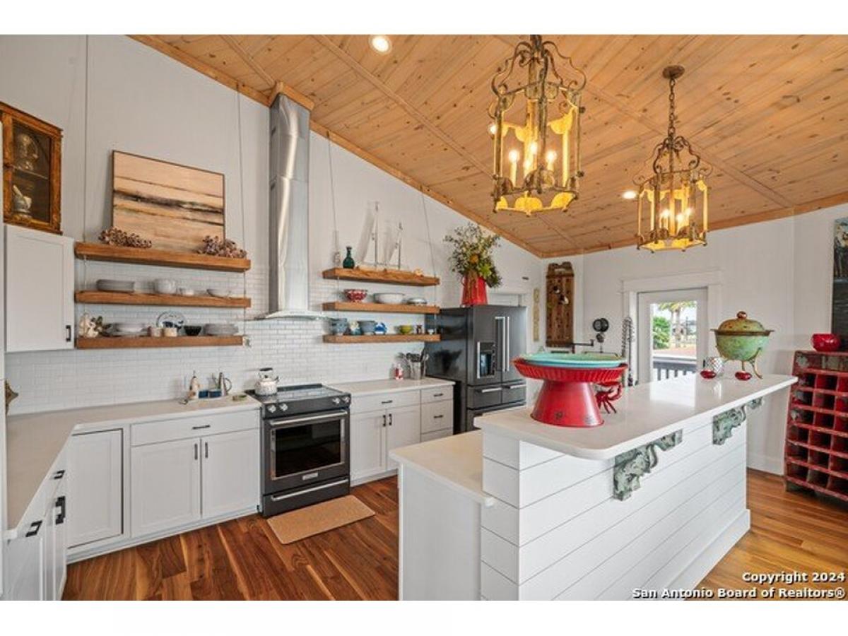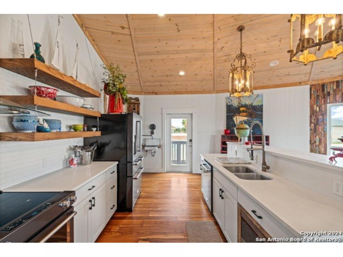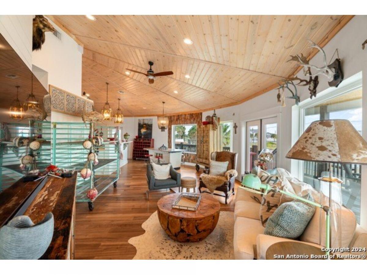 Be Mesmerized by nearly 180 Water Views from Lg Glass Panes amp; Front Porch! Step into a One-of-A-Kind Hurricane Resistant, Energy Efficient Deltec Home. Open Cell Spray Foam in Attic/Exterior Walls. LOW Utility Bills. Bahama Hurricane Shutters. Lots of Elbow Room w/ 60X100. Many Int/Ext Architectural Elements to Incl Extensive Shiplap, Specialty Barn Doors, Cottage Trim Out, Solid Core Doors, Reclaimed Wood Treatments, 12#039; Tongue #039;n Groove Ceilings, High End Designer Lighting, Upgraded Hardware. Service Ctr/2nd Kitchen Downstairs with Commercial Sink/Drainboard, Perlick Box Frig, Wine Storage. Top Line Kitchen Aid Appliances, Laminate amp; Ceramic Flooring amp; Coastal Cool Furniture amp; Decor Mostly Convey. 10X16 Metal Shed and Fenced Garden w/Superior Landscaping/Palm Trees. Abundant Parking/Entertainment/BBQ Area w/1500 SqFt of Undercarriage Bliss! 40X100 Lot to the Right Available by Same Sellers. Buy Both for RARE 100X100 Property Located in Desirable S Rockport.