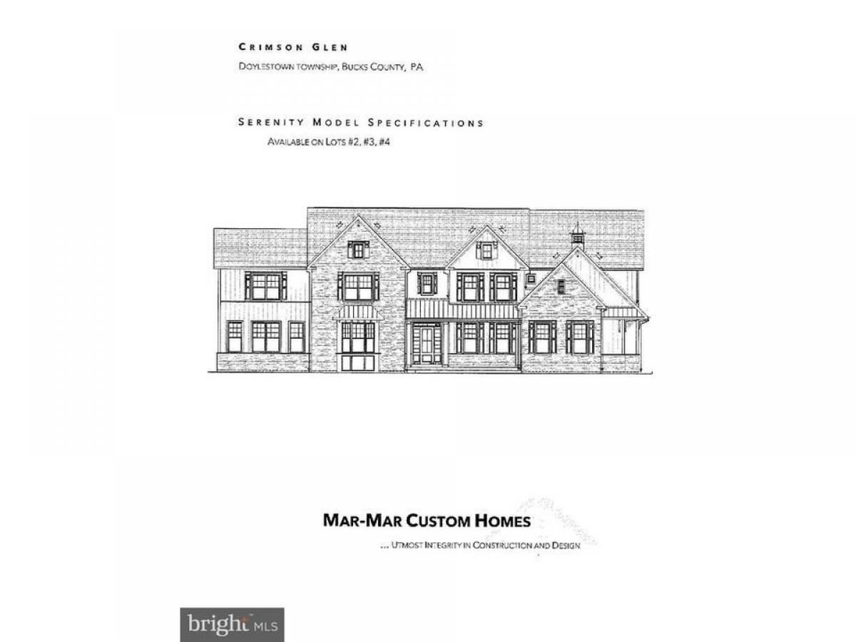 Welcome to Crimson Glen by Mar Mar Builders. Exclusive Custom Home community in Doylestown Township with 4 custom homes on lot sizes ranging from 1.46 - 2.93 Acres. Two Lots located on Pine View Drive and two lots with a private driveway entrance on Cherry Lane. Custom home with 7,365 square feet plus a finished basement that includes an additional 3,222 square feet. Tremendous attention to detail and design on all homes. Some outstanding features to note are: 4 car garage, 10#039; first floor ceiling height, 9#039; second floor ceiling height and 10#039; basement ceiling height, Spray Foam Insulation, Masonite Solid Core interior doors 1st and 2nd floor, Wolf, Bosch and Sub-Zero appliance package, Three stop elevator included, exquisite millwork package includes 9#039; baseboards, tray ceiling, coffered ceiling. Customizing available. Price shown is for Lot #5. Photos shown are an example of the workmanship from Mar Mar Builders. Call today for your private appointment