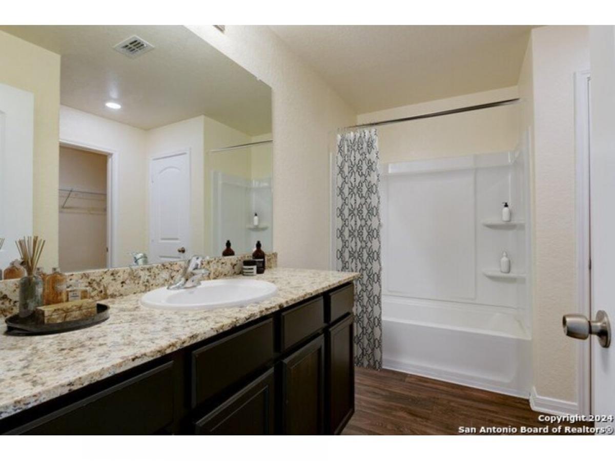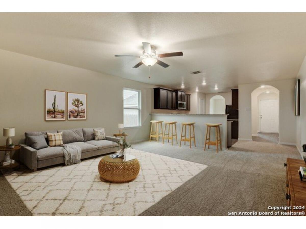 Upon entering this charming one-story home, you are immediately welcomed by a bright and open kitchen that effortlessly flows into the expansive living room, creating a warm and inviting atmosphere. The kitchen is designed for both style and functionality, it features a convenient bar top that serves as the perfect spot for casual meals or entertaining guests. The kitchen is further enhanced by stunning granite countertops and updated appliances, making it ideal for cooking and hosting gatherings. The two additional bedrooms are thoughtfully positioned and share a well-appointed bathroom, which includes a relaxing shower/tub combo for your comfort. The primary bedroom is a peaceful retreat, offering a spacious walk-in closet with ample room for all your clothing and accessories. The connected en-suite bathroom features practical storage options, adding convenience to your daily routine. This home also includes a two-car garage, providing secure parking and additional storage space. The spacious backyard offers endless possibilities for outdoor activities, gardening, or simply enjoying the fresh air. With its thoughtful design, modern upgrades, and great use of space, this home strikes the perfect balance of comfort and practicality. Please be aware some photos have been virtually staged.