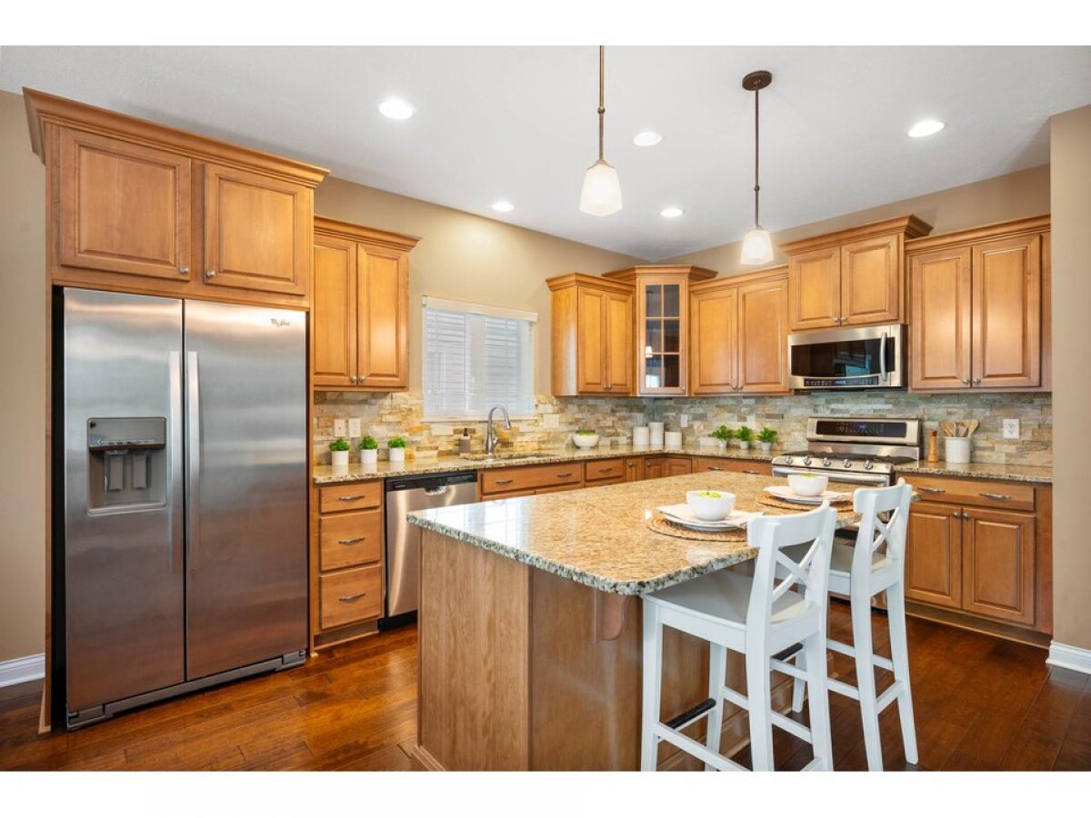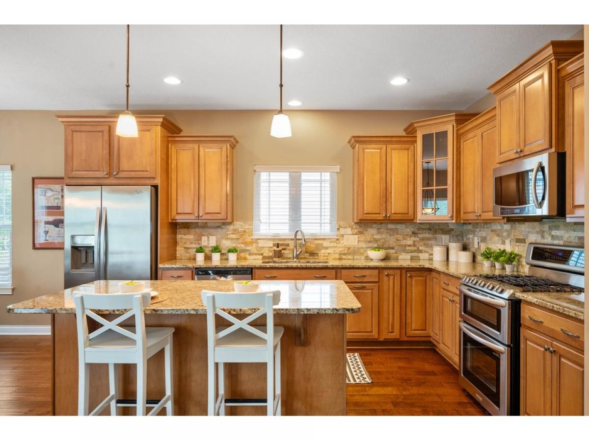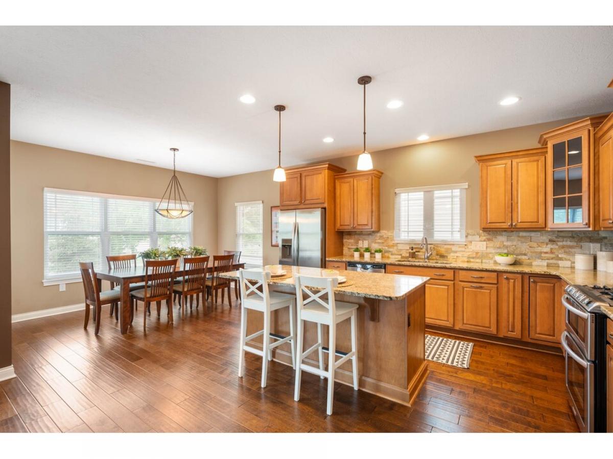 Amazing ranch in Villas at Bridgewater! 3BR and 2.5BA with 3 car garage. Main floor with open concept for entertaining. Dining room with tray ceiling and accent lights. Granite countertops and large island flow into both the living room and breakfast nook. Large primary bedroom with en suite and walk-in closet. Massive laundry room and office combo with island. 2 additional bedrooms and full bath in basement for guests. Large bar with more granite countertops and drink refrigerator. Beautiful west facing backyard with fire pit perfect for enjoying those summer nights or fall evenings. All the entertaining space you could ask for in this beautiful home.